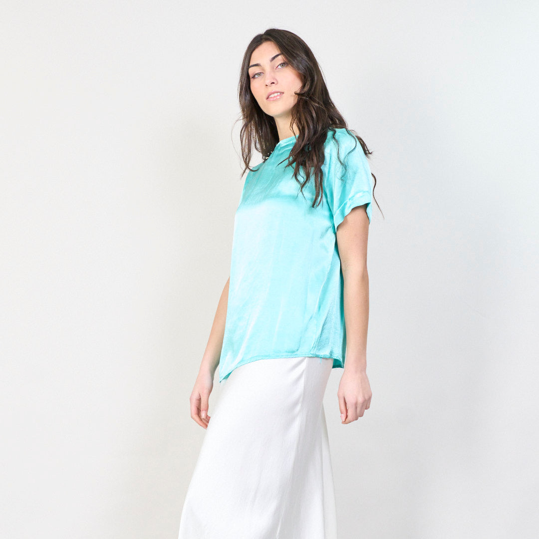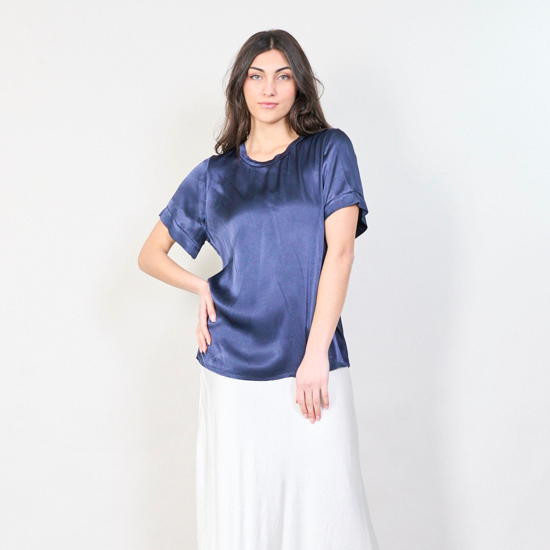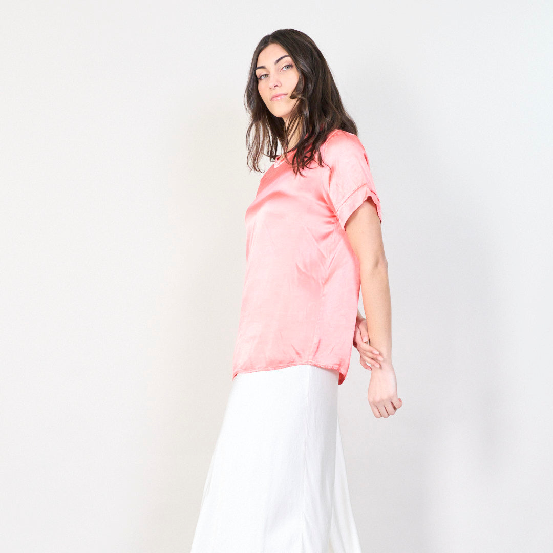 Περιστασιακή στρογγυλή λαιμό κοντό μανίκι κορυφή χονδρικής