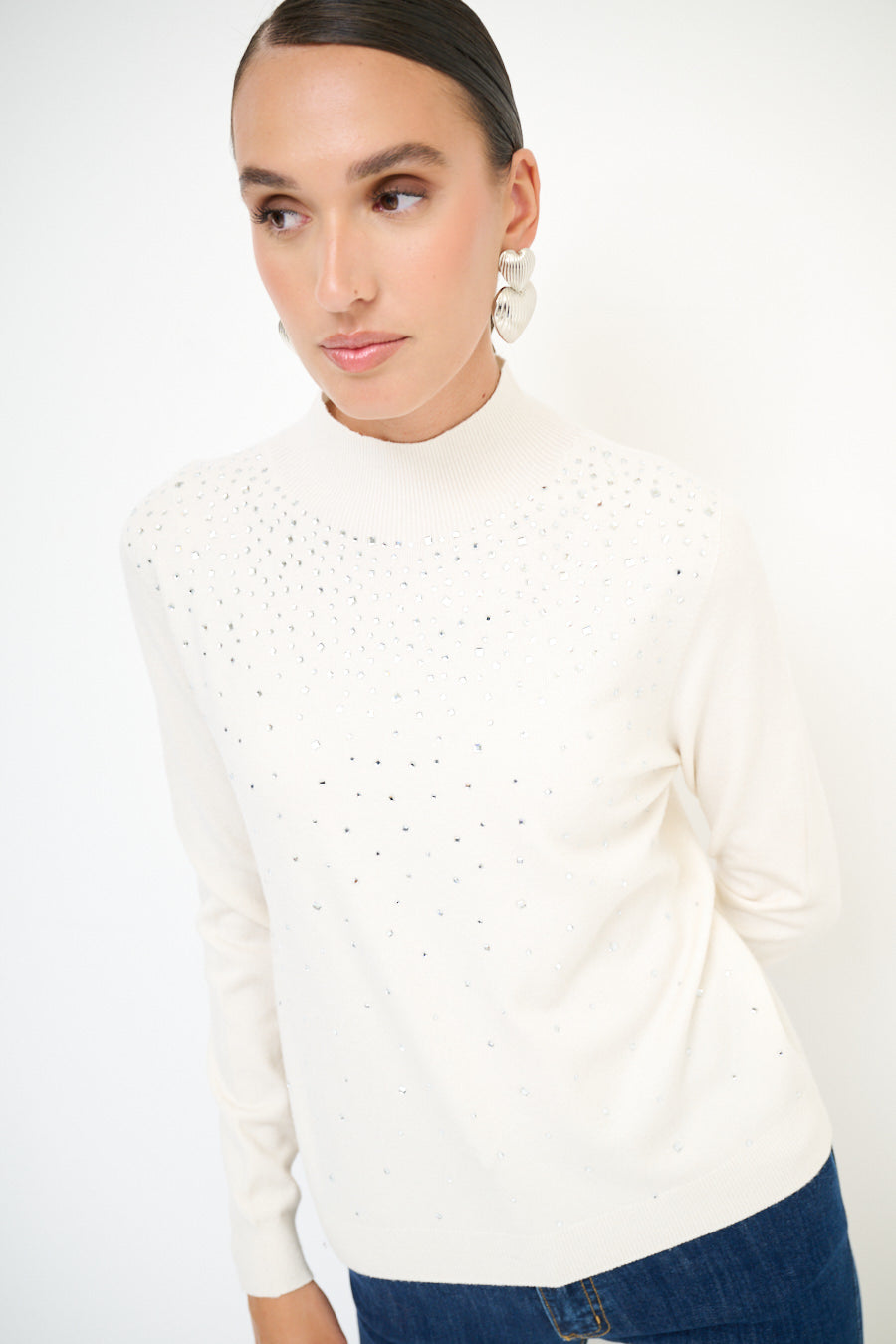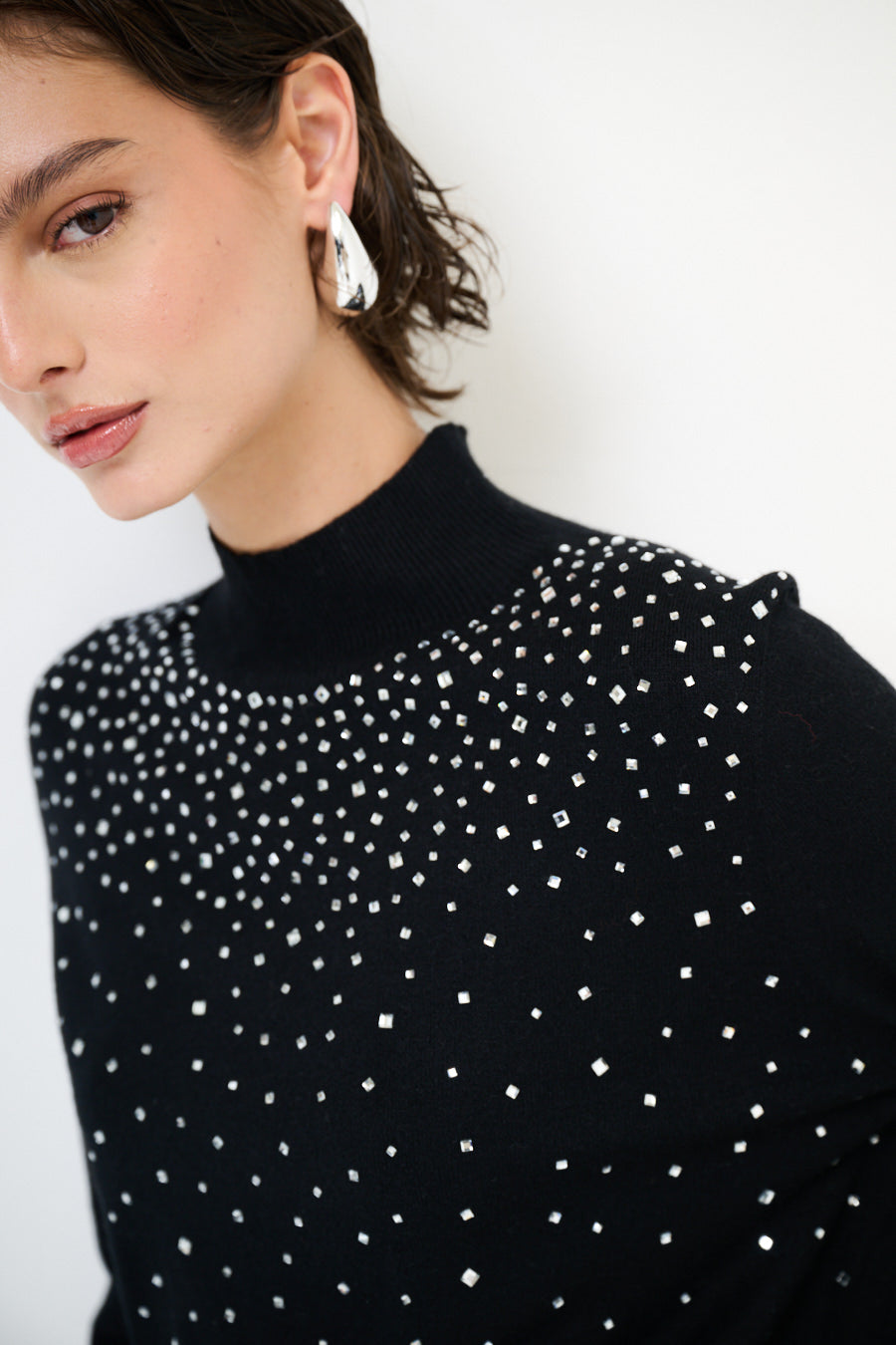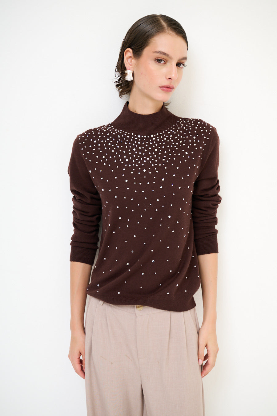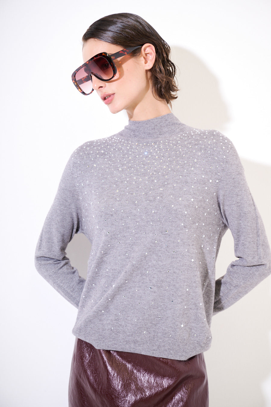 Πλέγμα πουλόβερ λαιμού με διάσπαρτα διακοσμητικά στρας