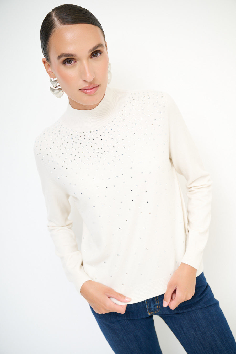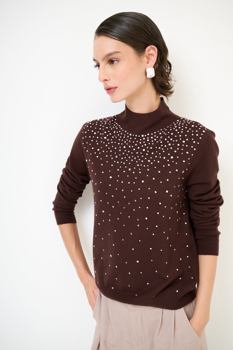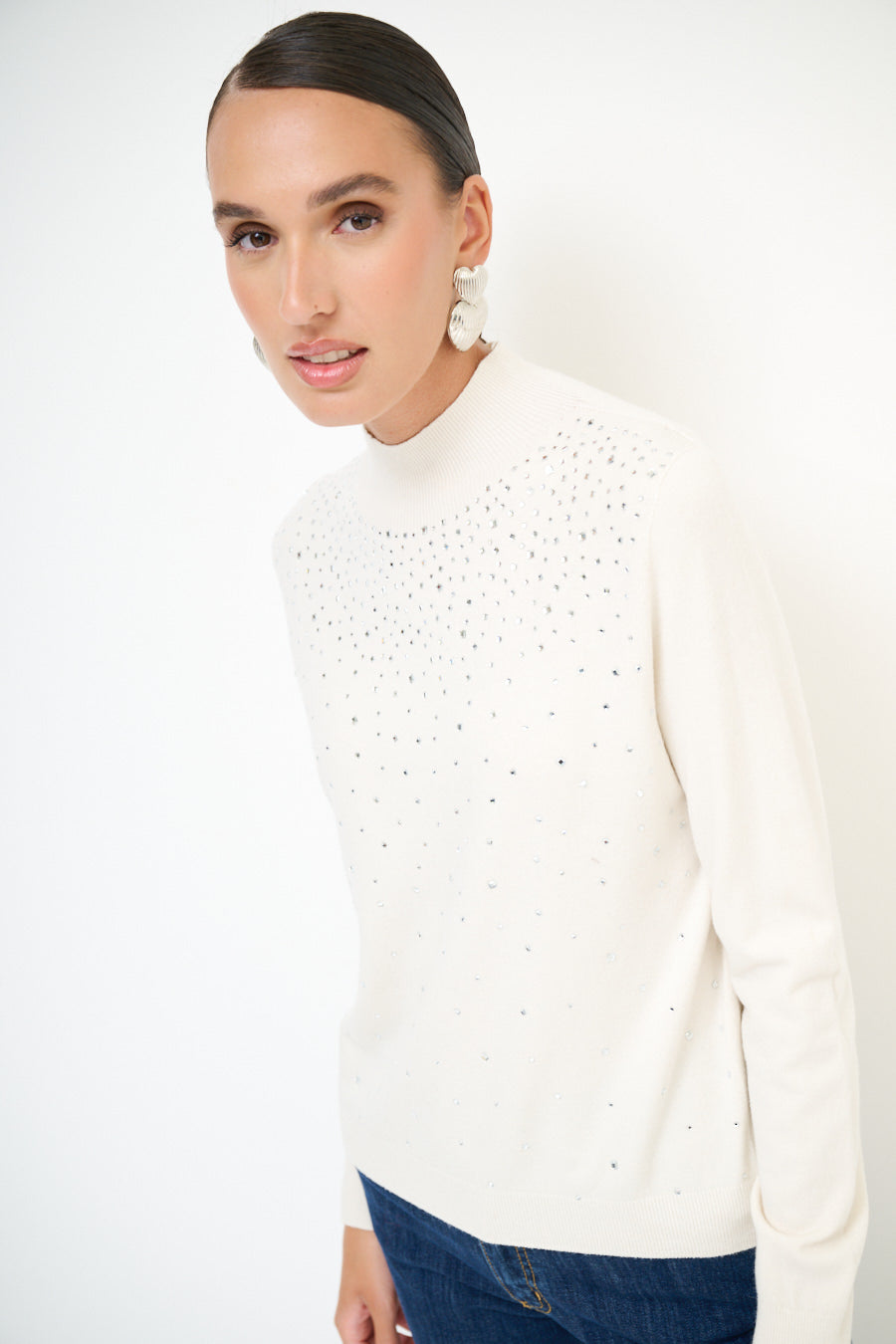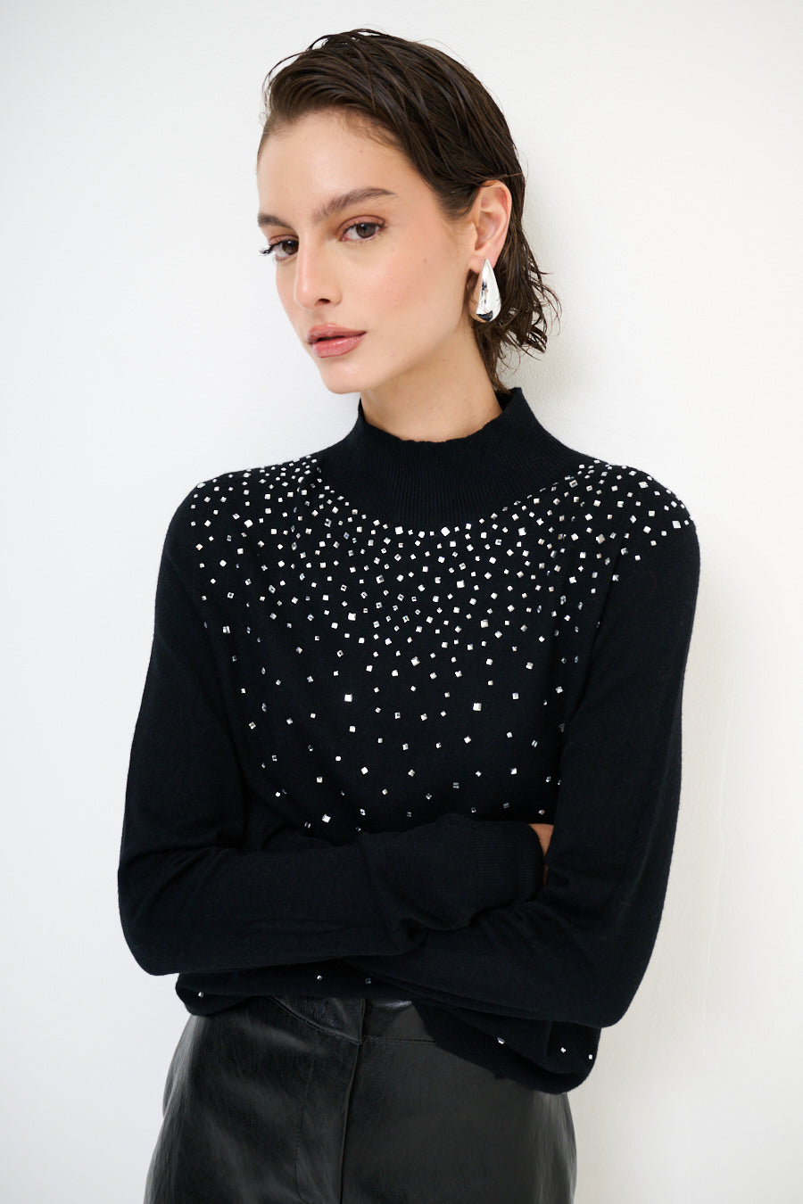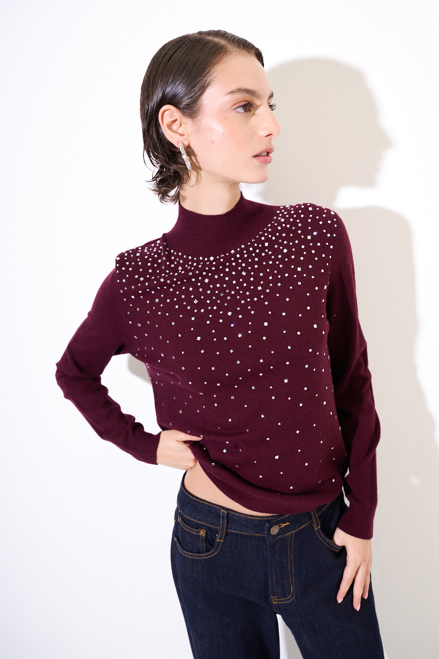 Πλέγμα πουλόβερ λαιμού με διάσπαρτα διακοσμητικά στρας