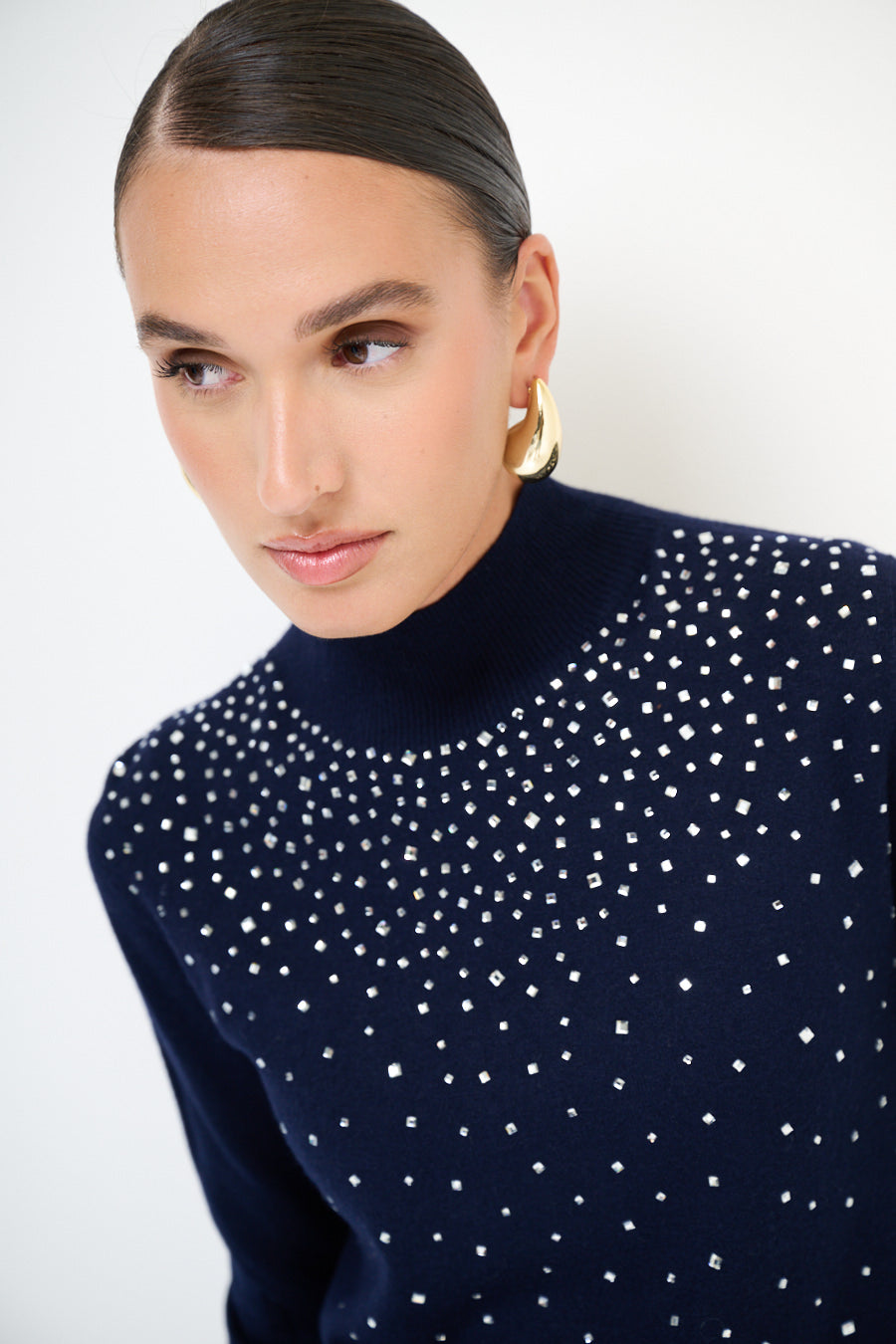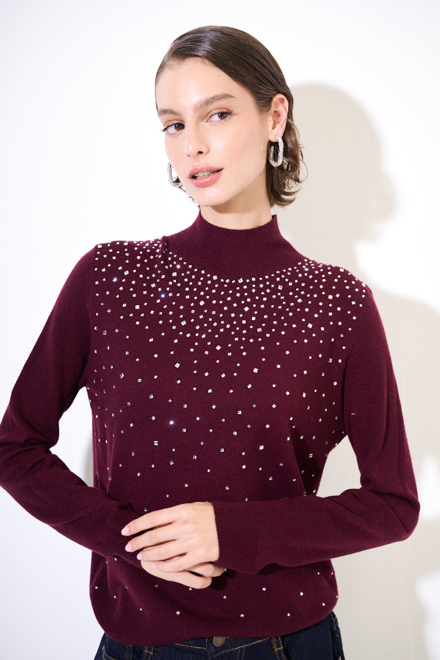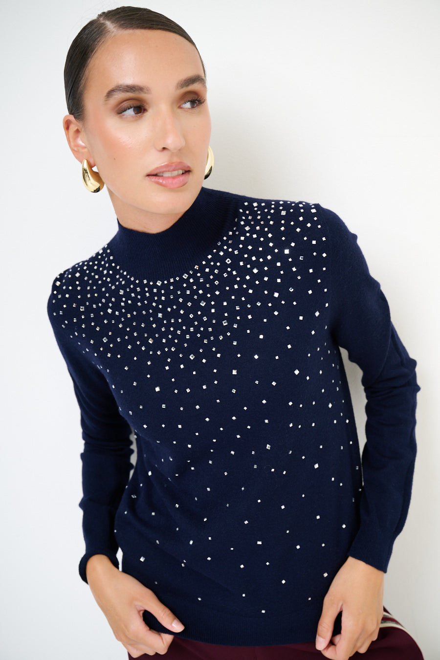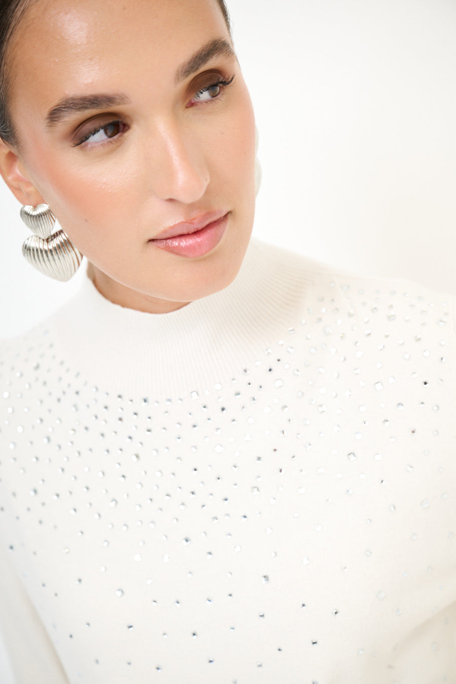 Πλέγμα πουλόβερ λαιμού με διάσπαρτα διακοσμητικά στρας