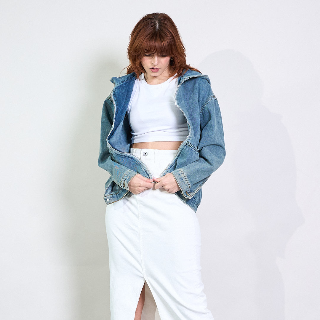 Πλυμένο φερμουάρ υπερμεγέθη σακάκι denim hoodie