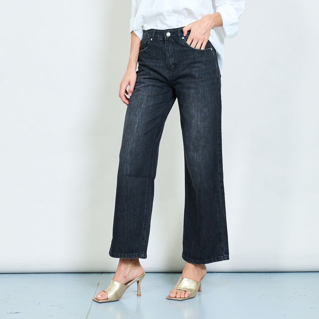 - Πλυμένο μαύρο denim αποτέλεσμα για μια vintage εμφάνιση