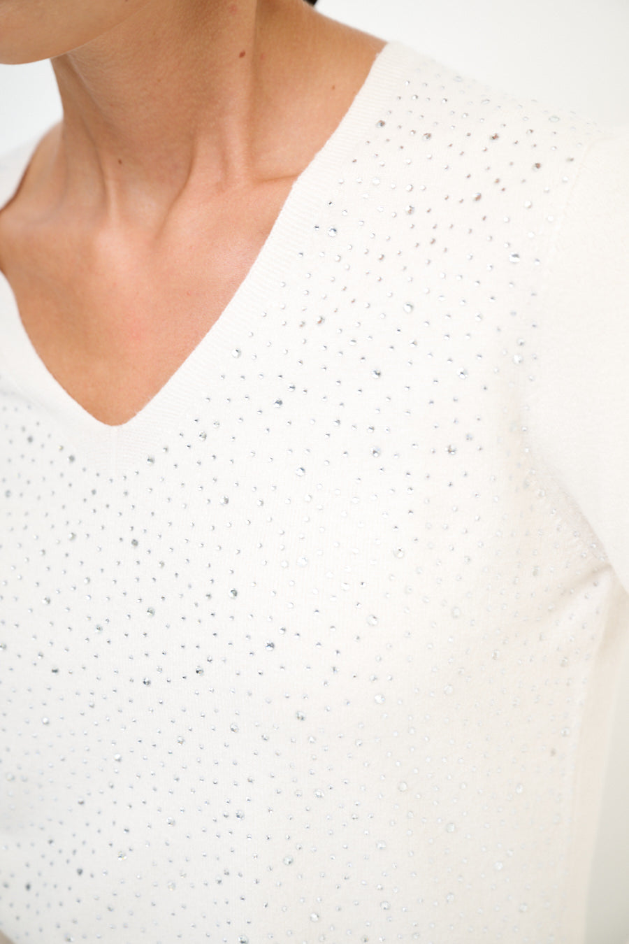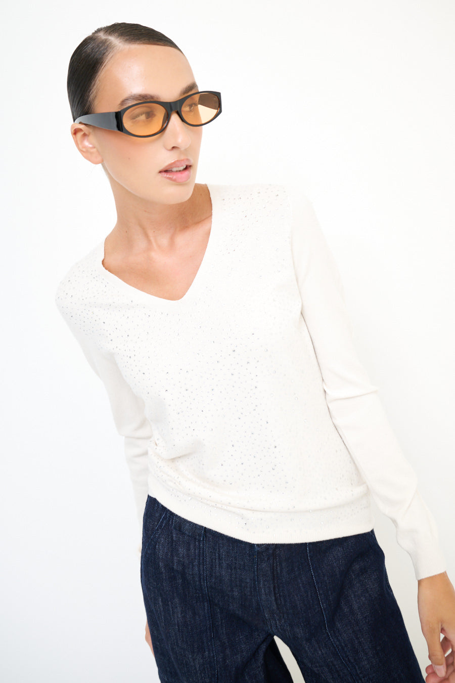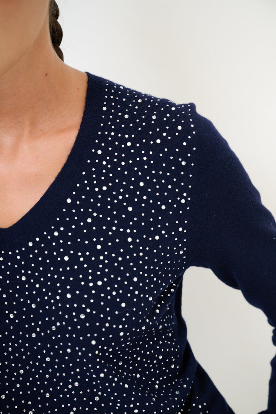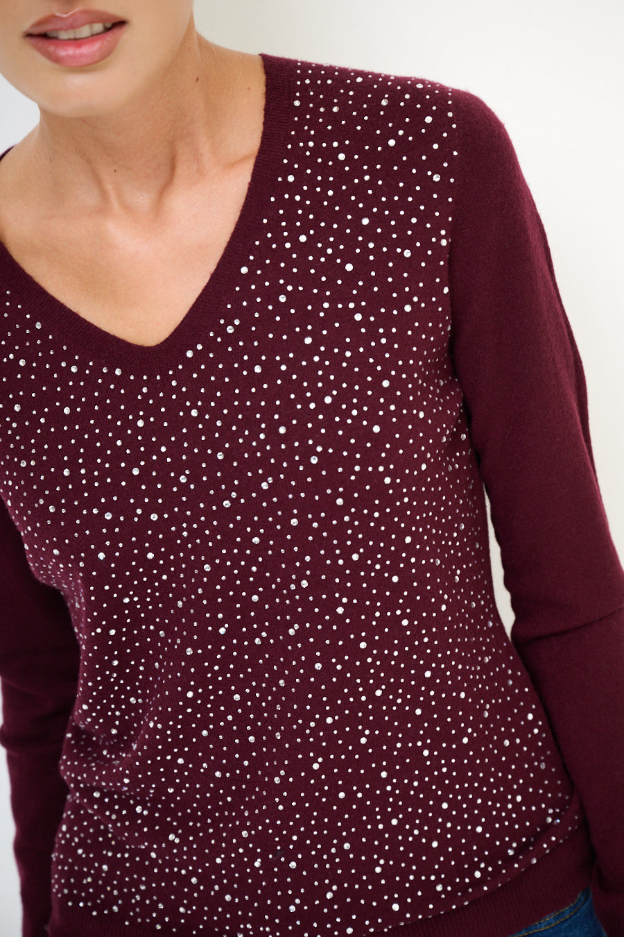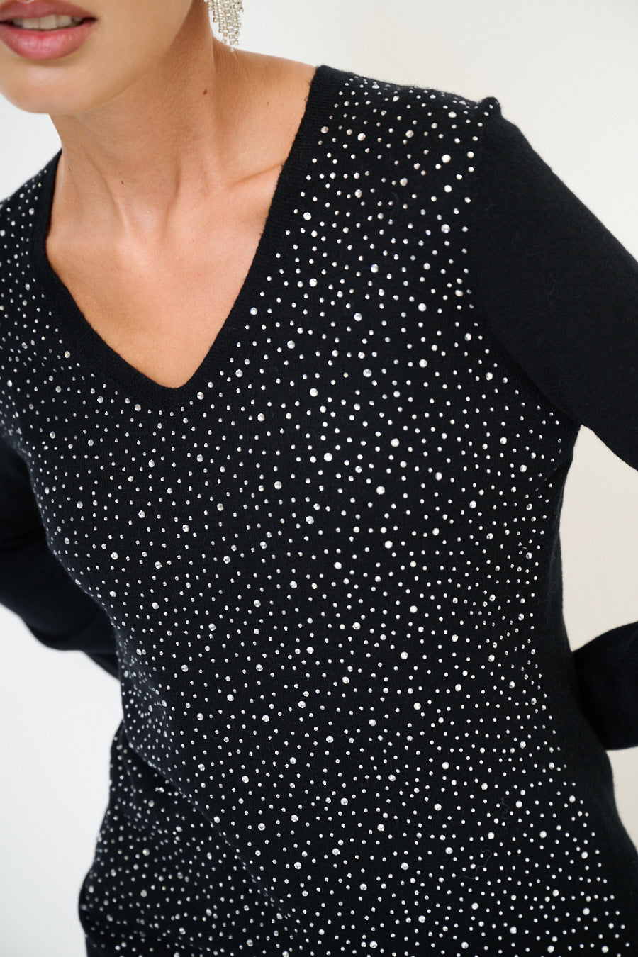 Πουλόβερ V-λαιμό με διάσπαρτη χονδρική λάμψη στρας