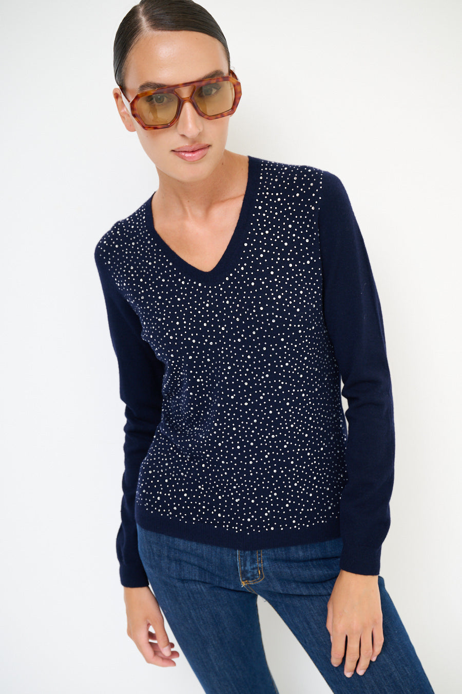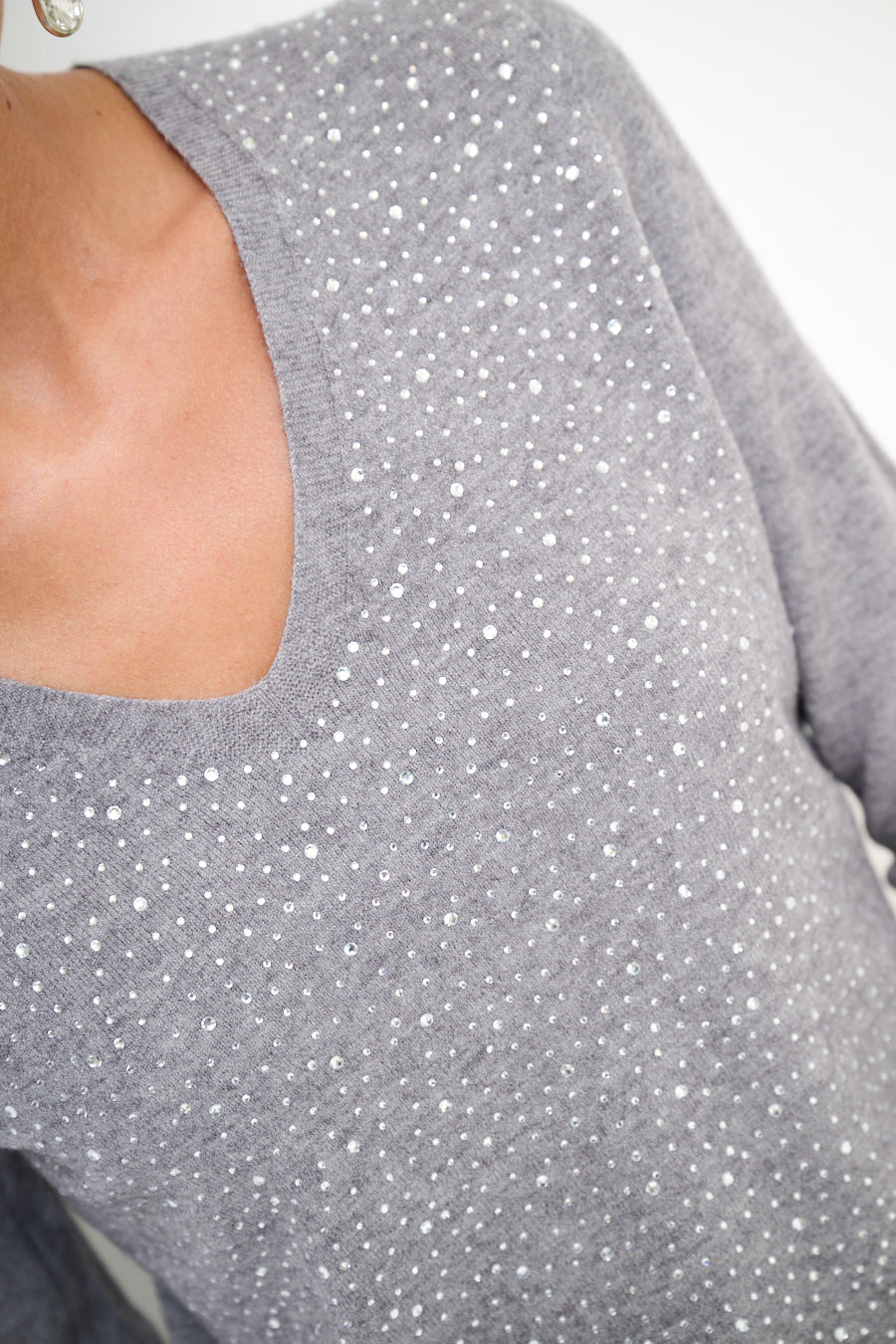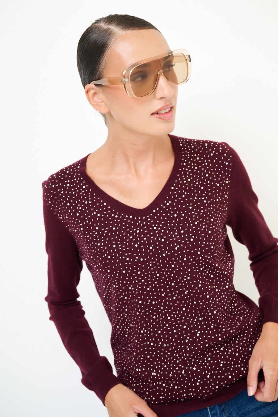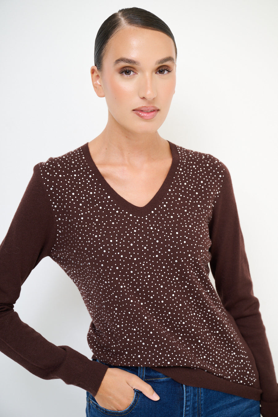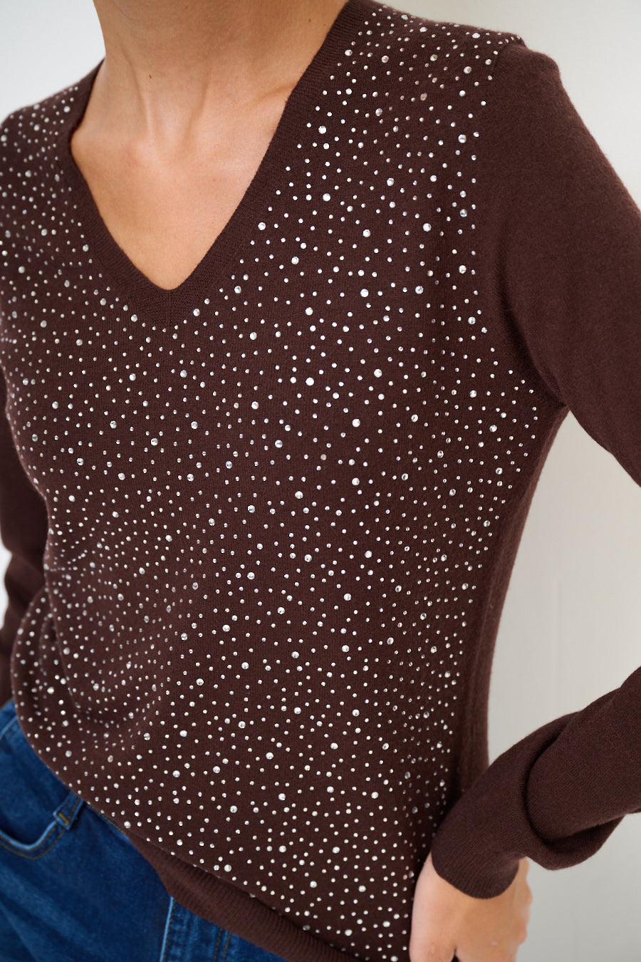 Πουλόβερ V-λαιμό με διάσπαρτη χονδρική λάμψη στρας