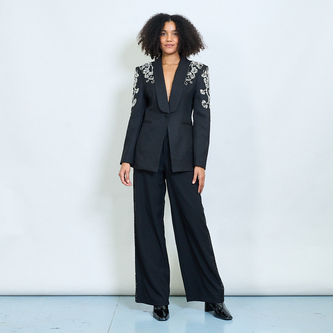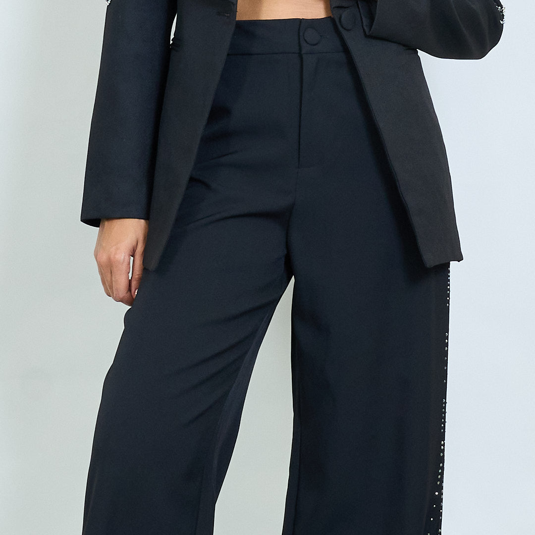 Προσαρμοσμένα παντελόνια με ευρύς πόδι με λεπτομέρειες χονδρικής πώλησης