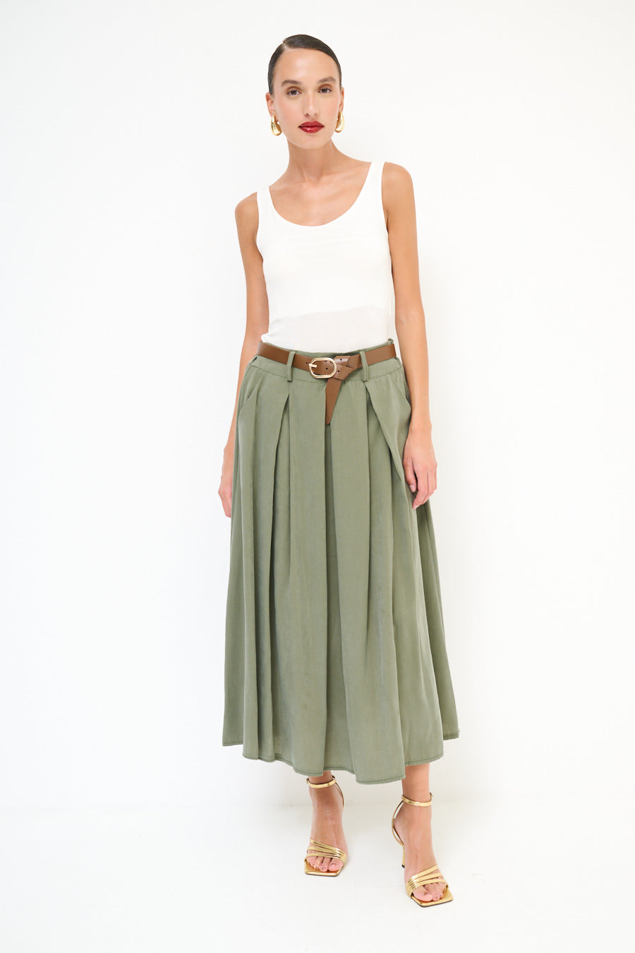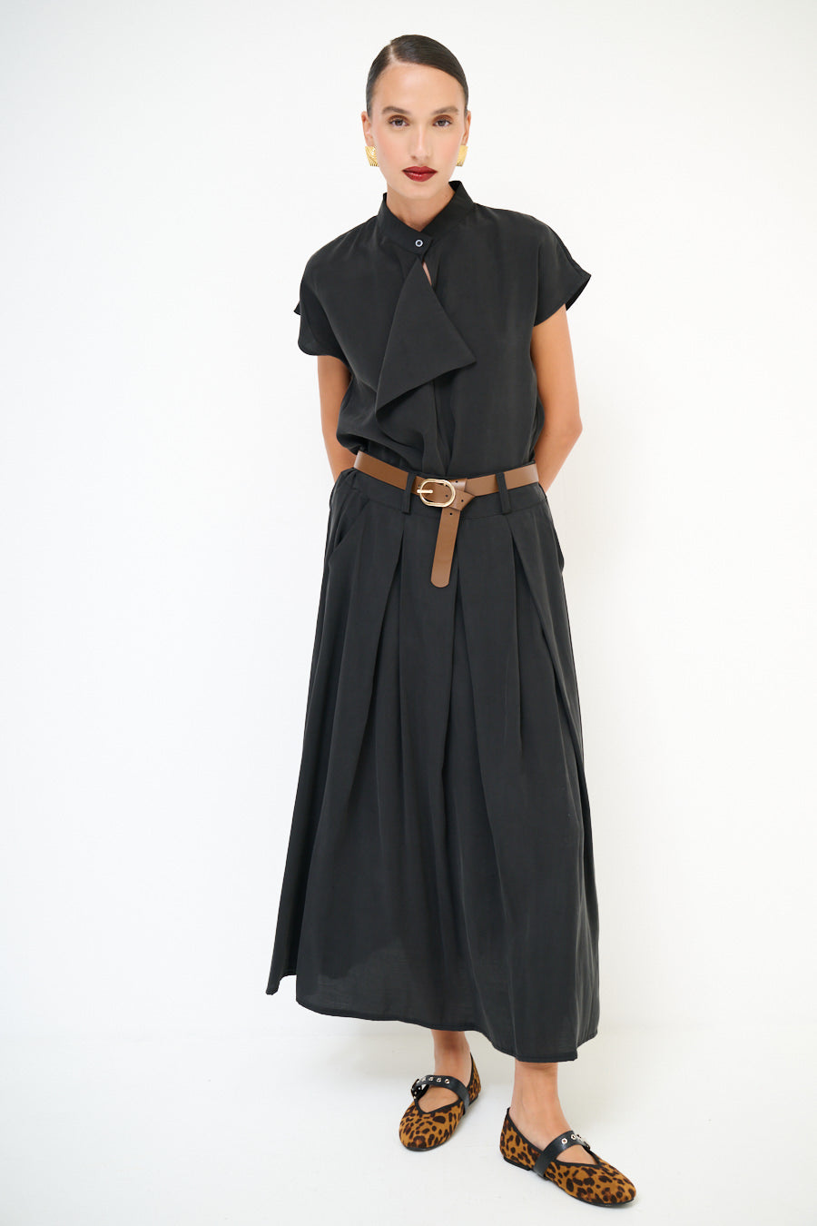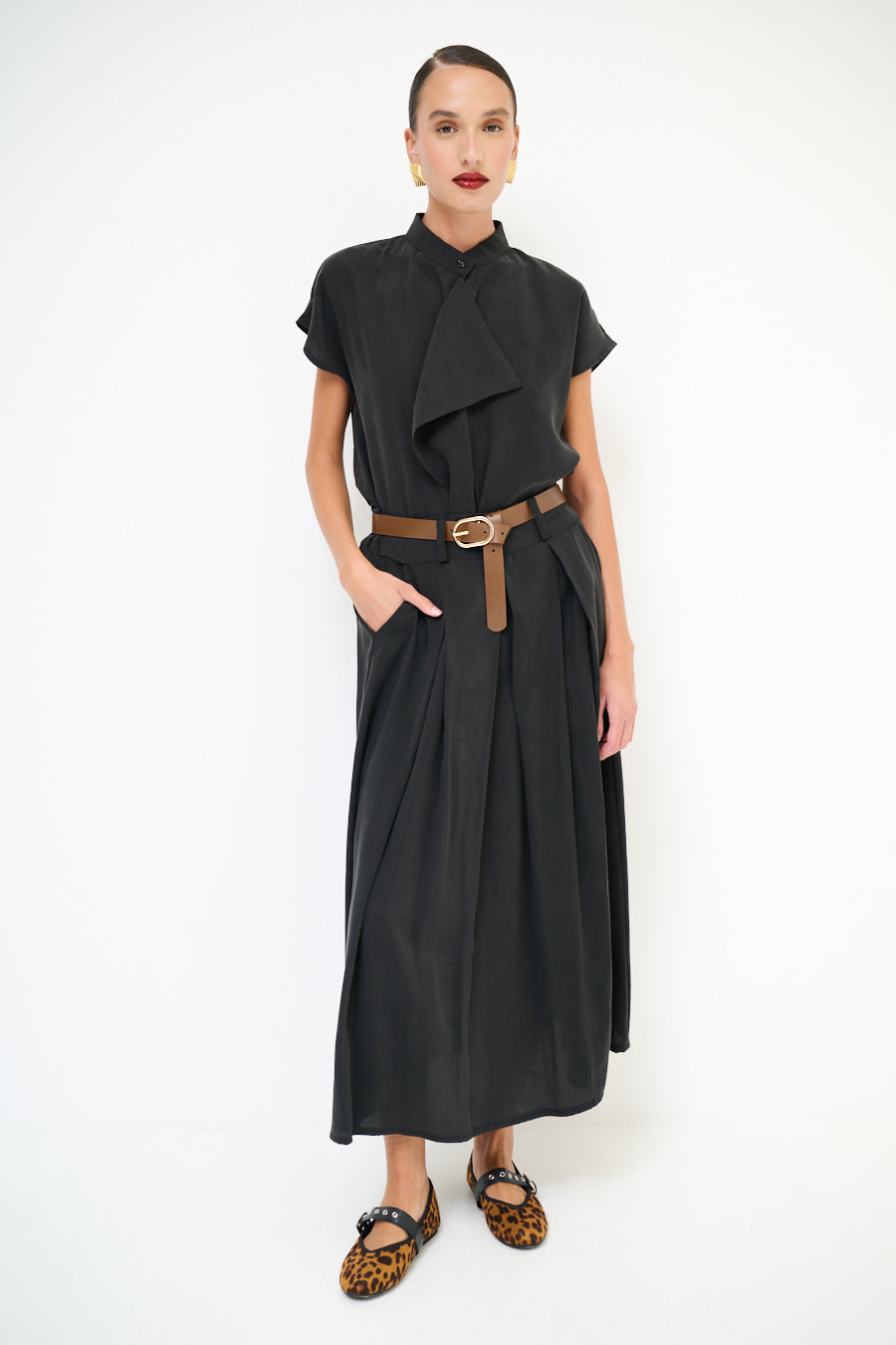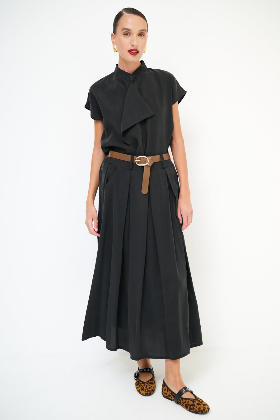 - Κομψή σιλουέτα MIDI A-Line με γενναιόδωρες πτυχές