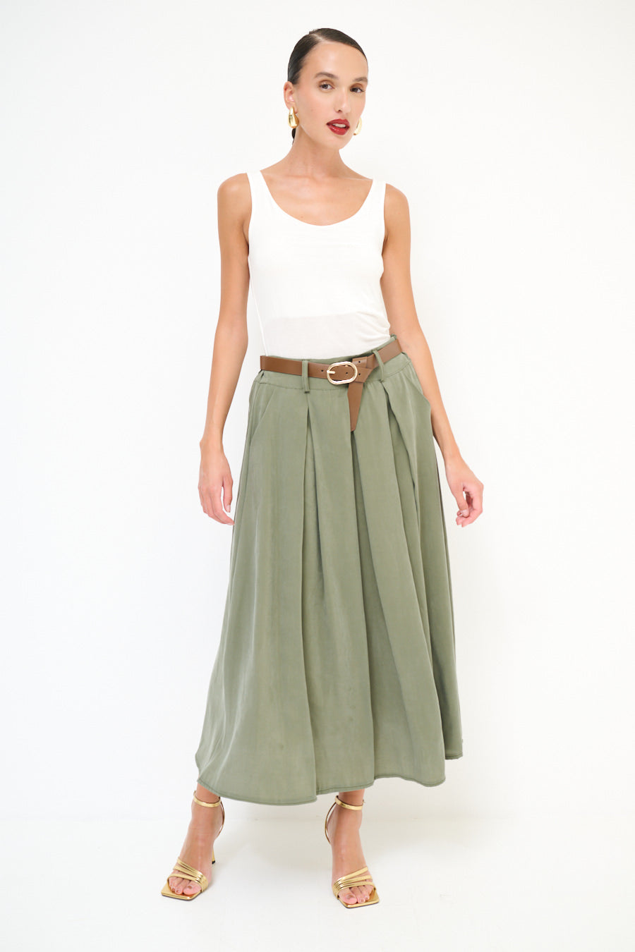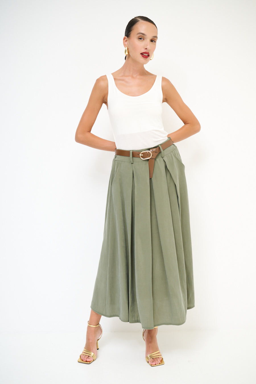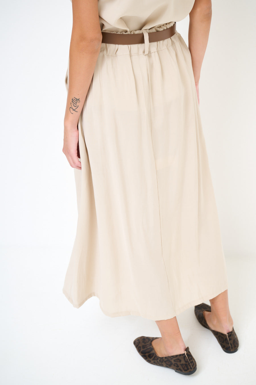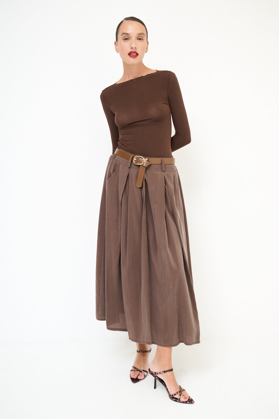 - Κομψή σιλουέτα MIDI A-Line με γενναιόδωρες πτυχές