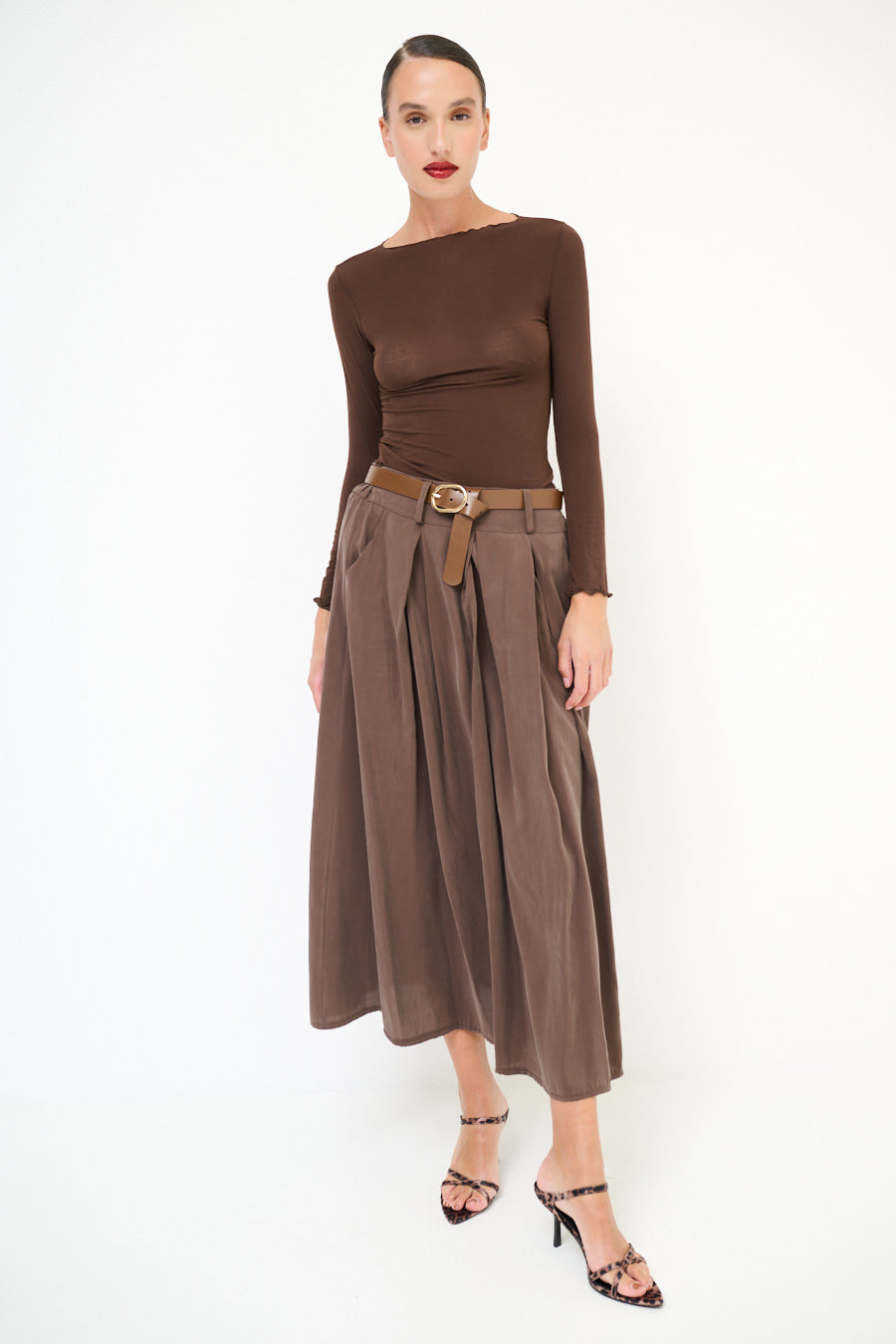 Ρέοντας MIDI φούστα με πλακόστρωτο όγκο χονδρική πώληση