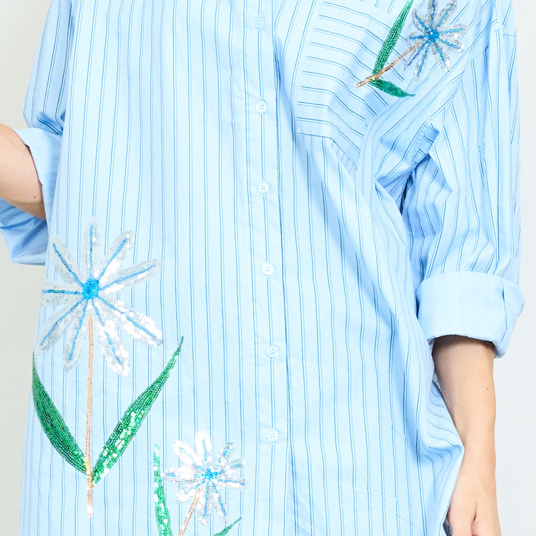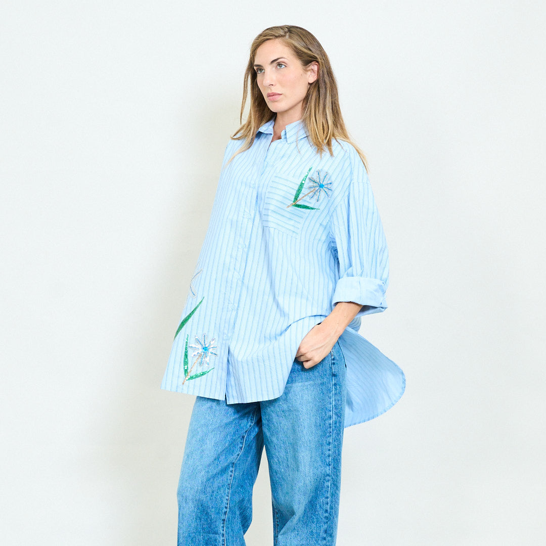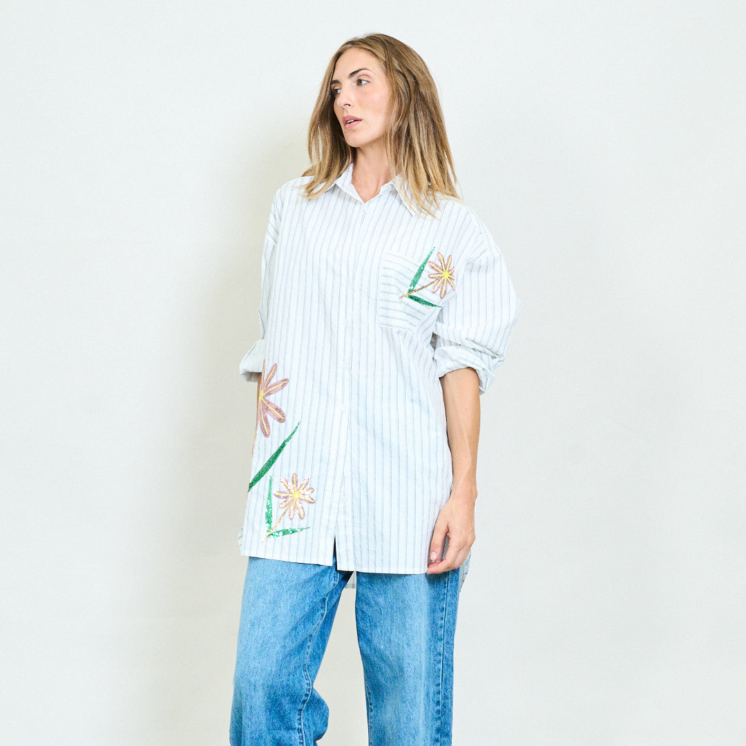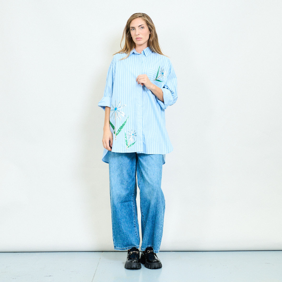 Ριγέ πουκάμισο με floral beaded κεντήματα χονδρικής