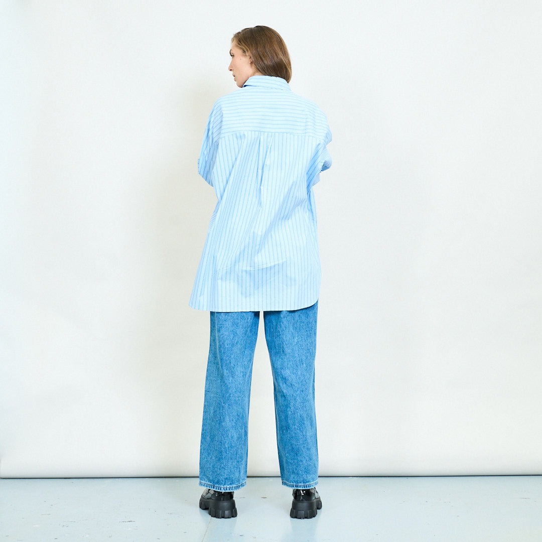 - Χαλαρό ριγέ πουκάμισο με κουμπί μπροστά
