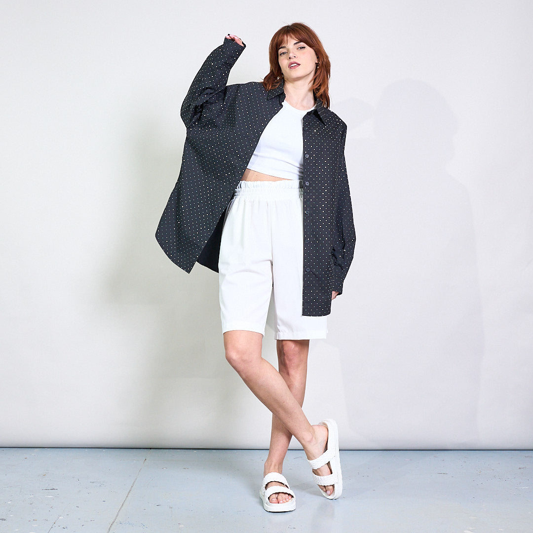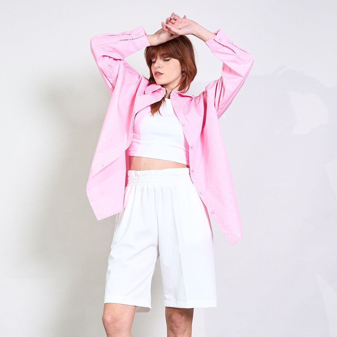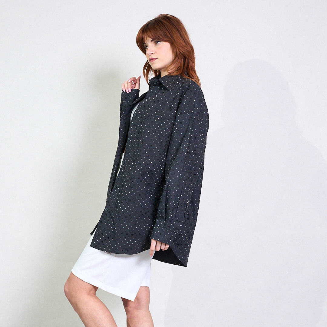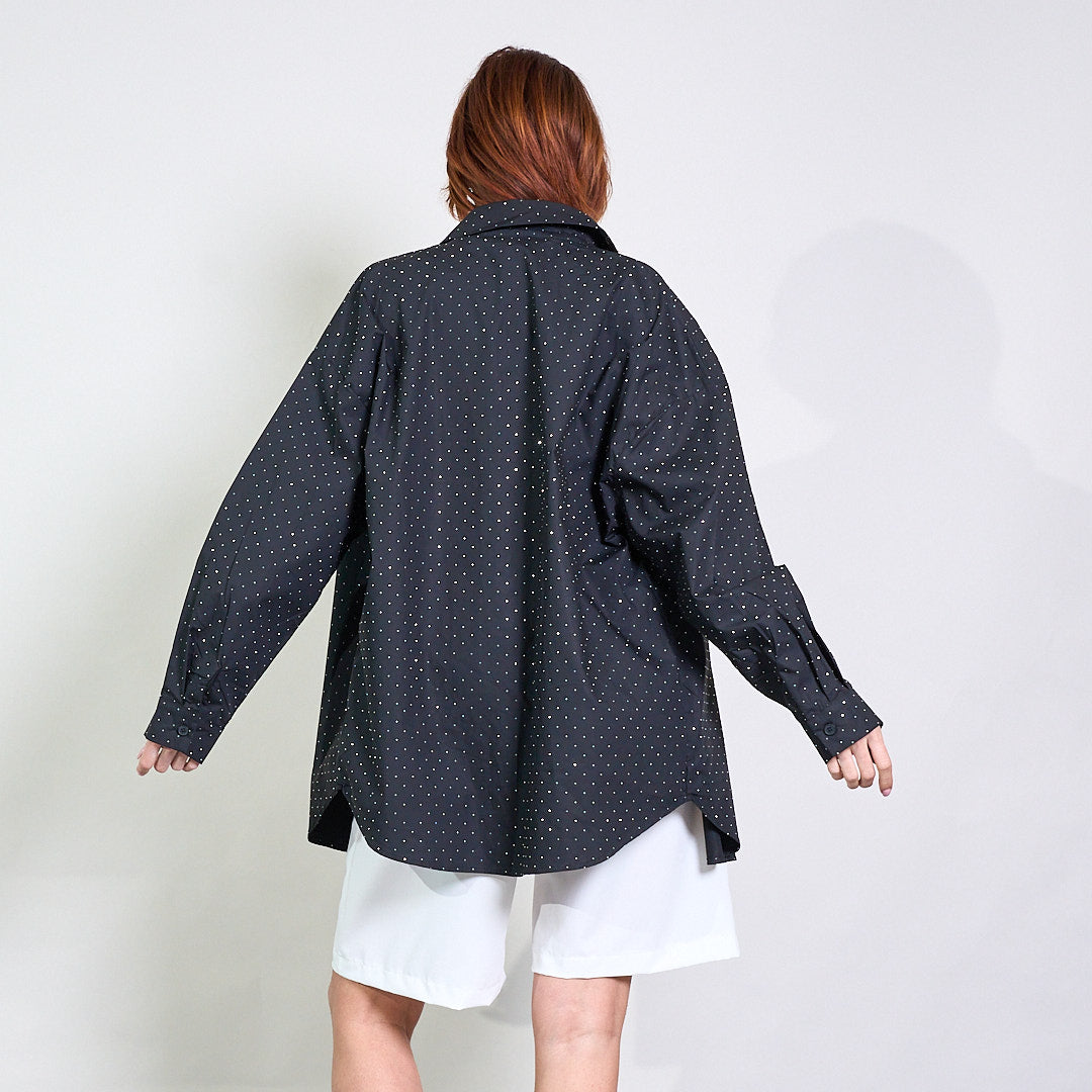 Το Mini Rhinestone διακεκομμένο υπερμεγέθη σατέν πουκάμισο Poplin