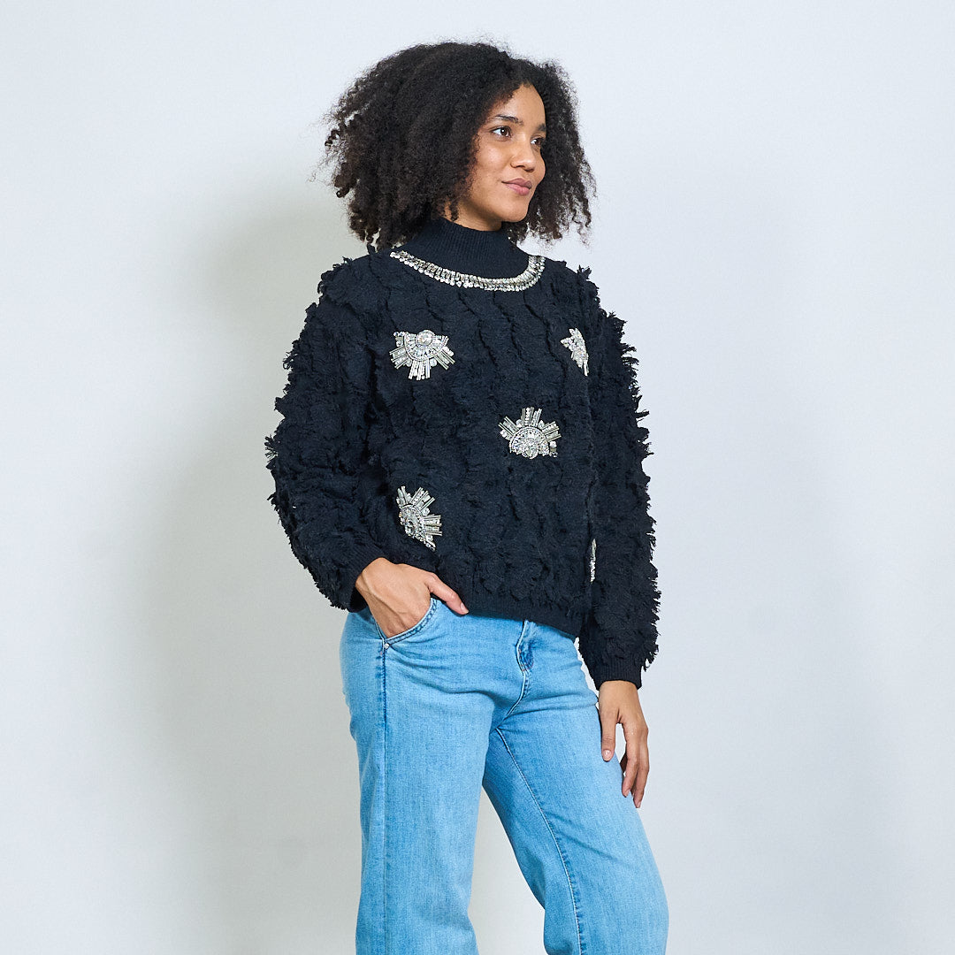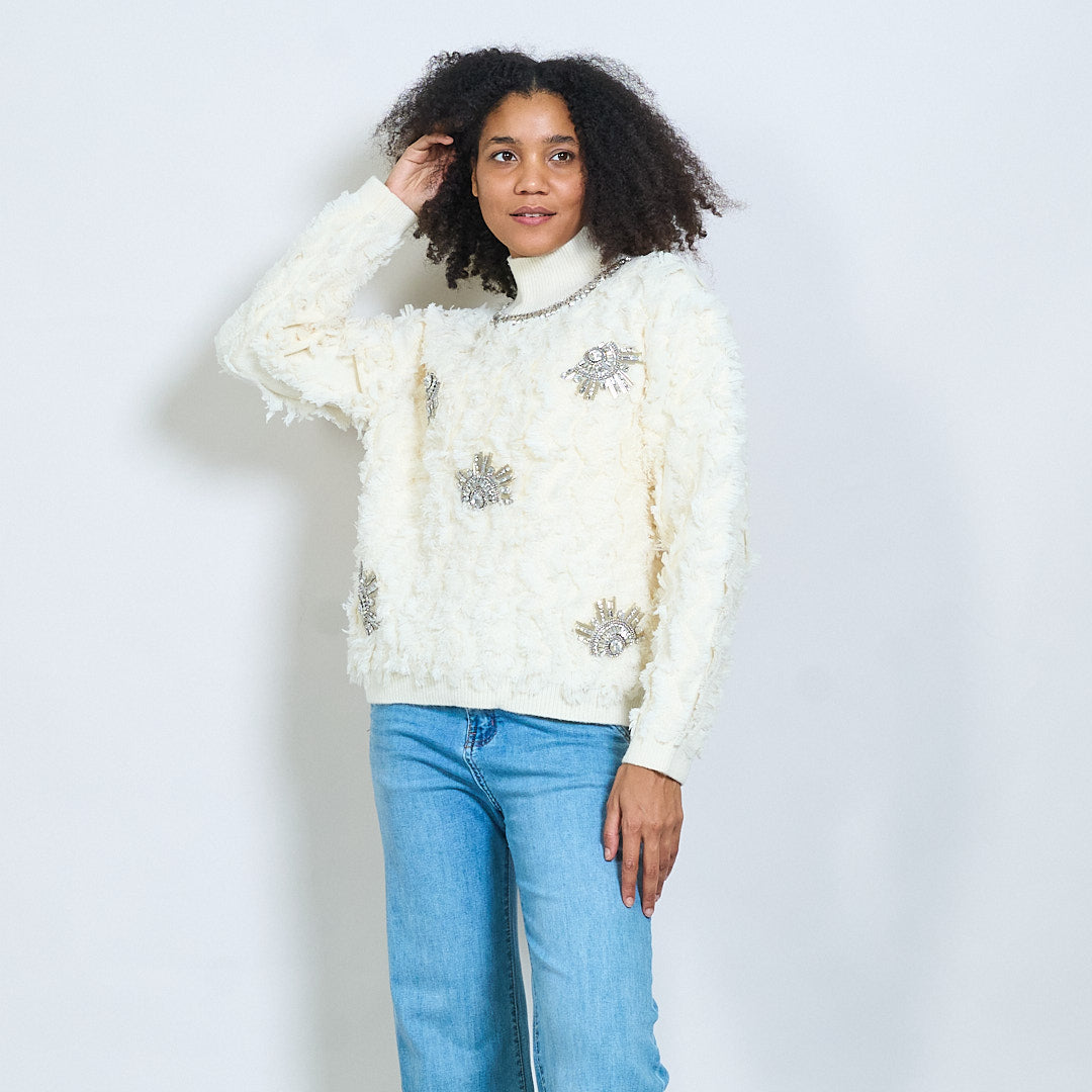 Τύση πλεκτό πουλόβερ με κρυστάλλινα διακοσμήσεις χονδρικής πώλησης