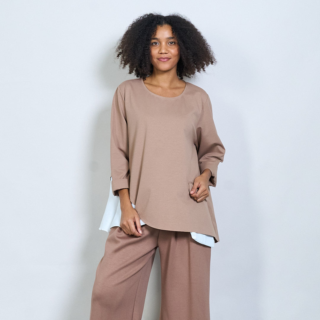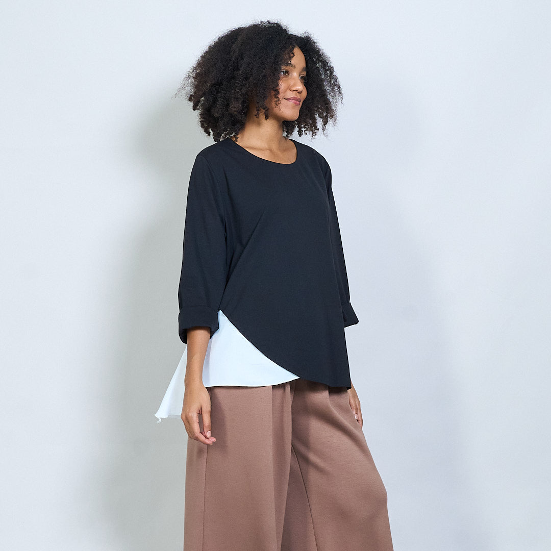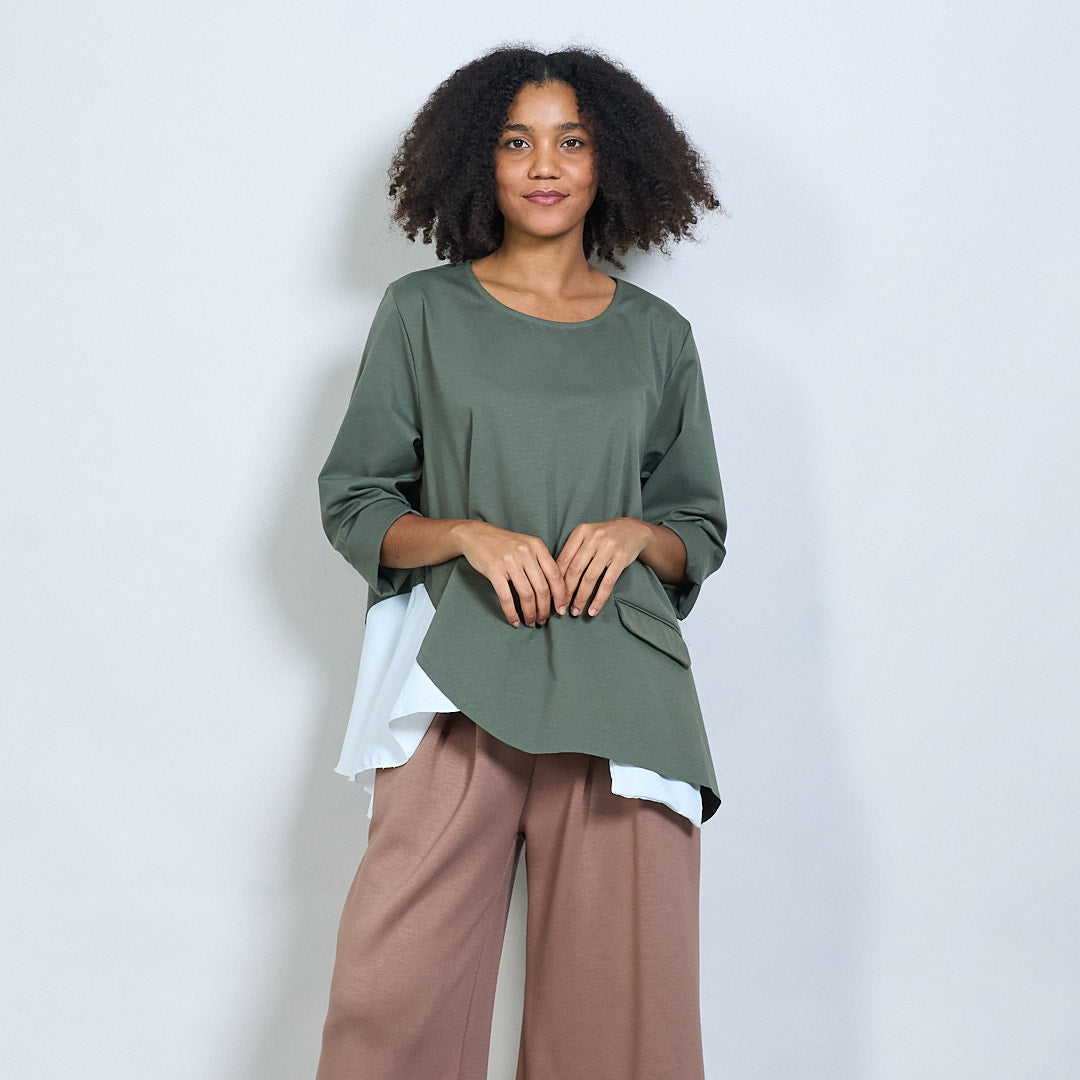 - Μεγάλη μπλούζα με ασύμμετρη λεπτομέρεια και λεπτομέρεια αντίθεσης