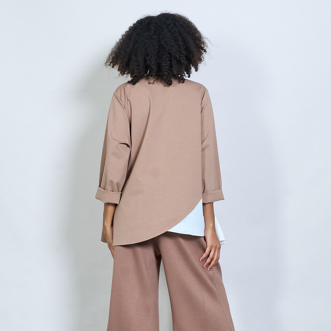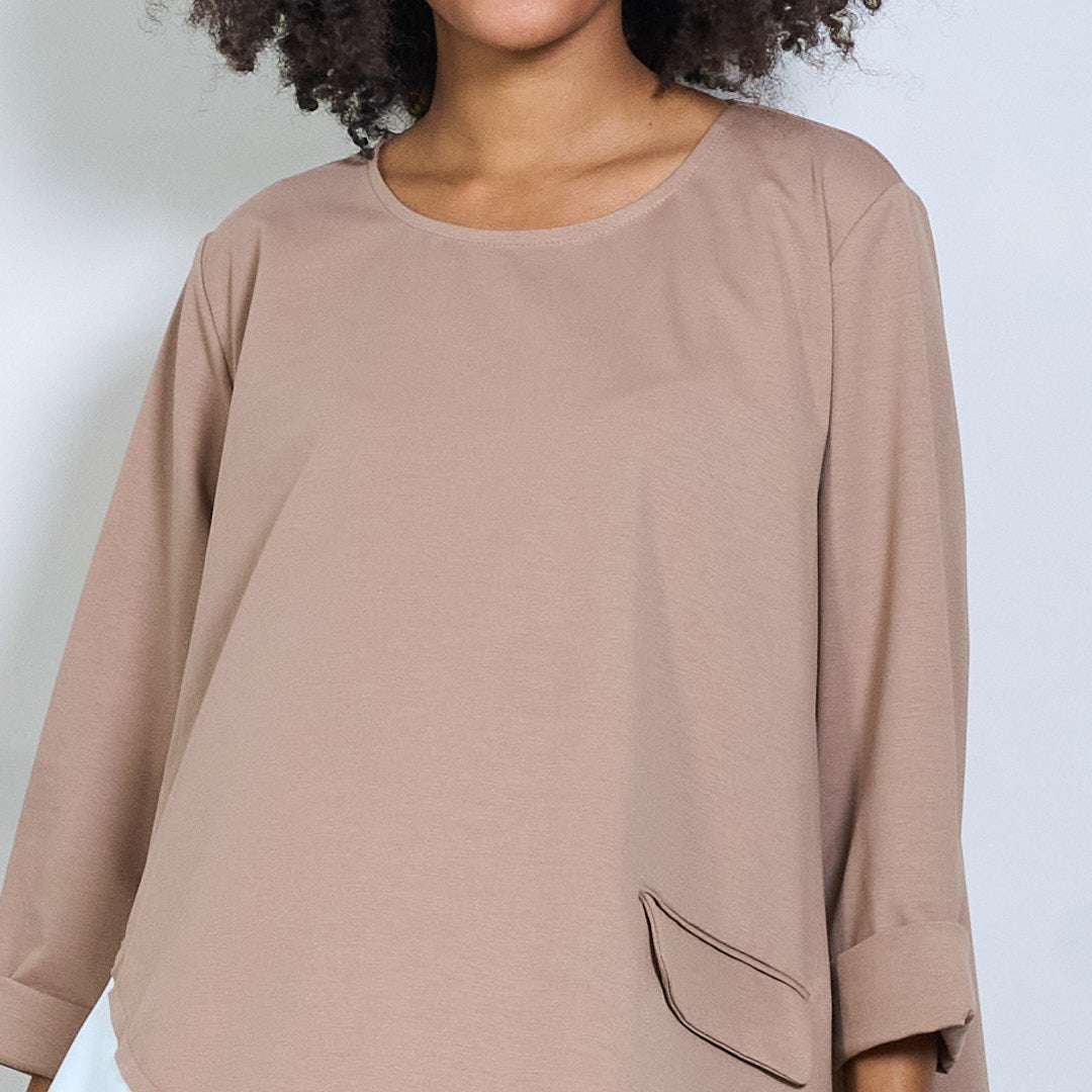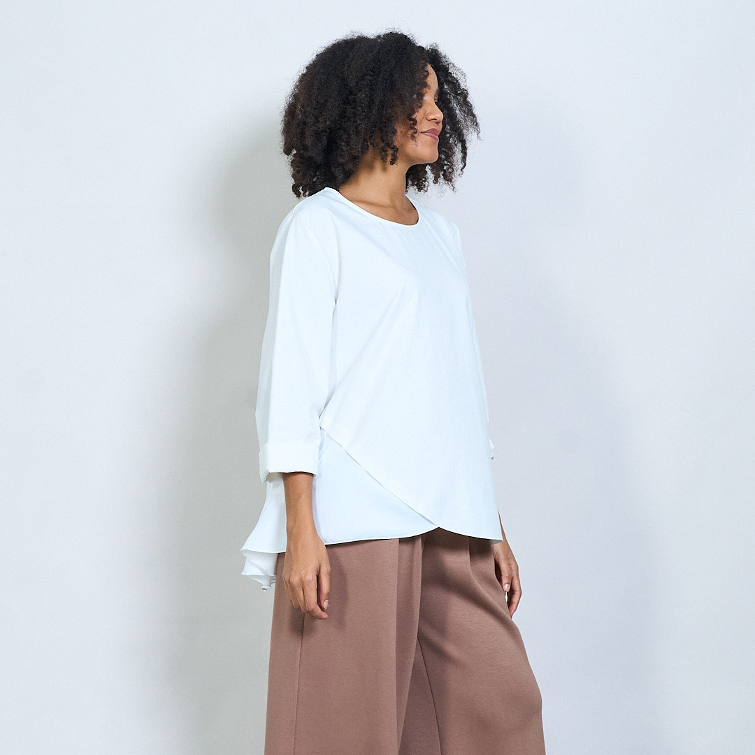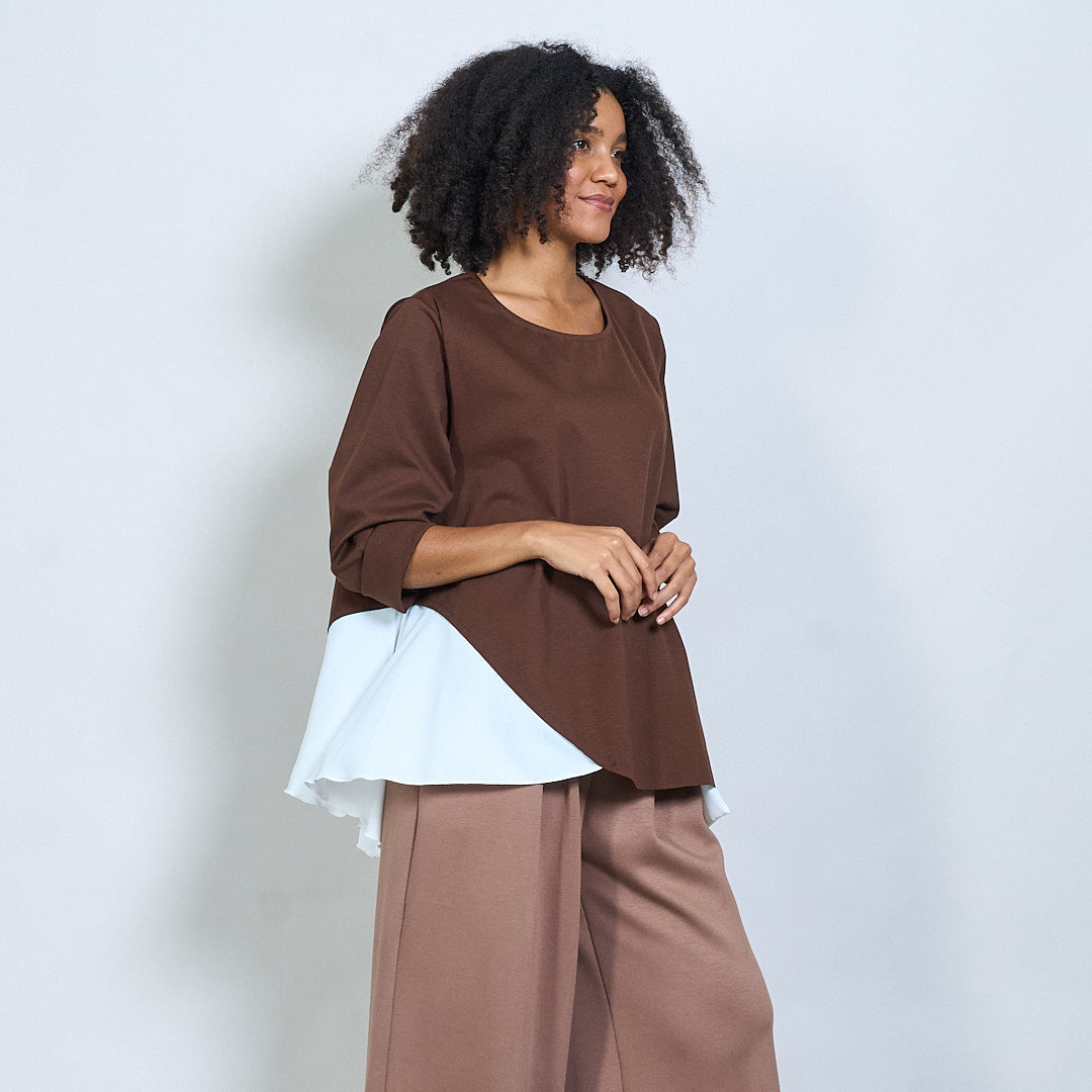 - Μεγάλη μπλούζα με ασύμμετρη λεπτομέρεια και λεπτομέρεια αντίθεσης