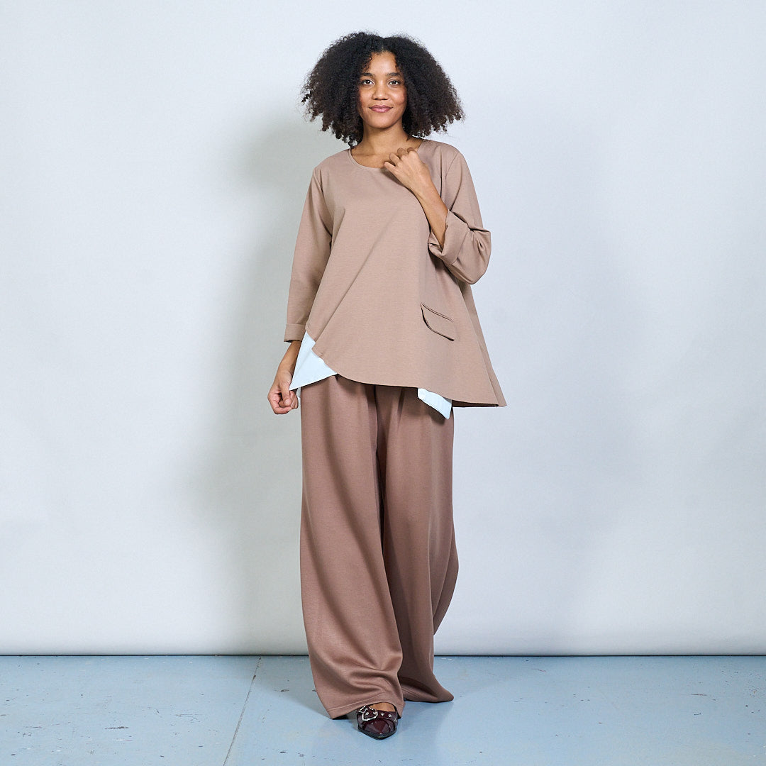 Χαλαρή μπλούζα και παντελόνια με πλάγια πόδια