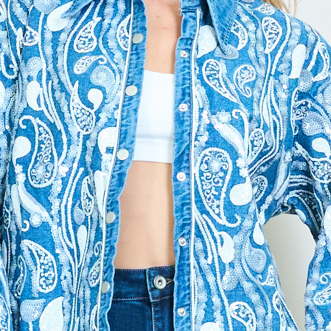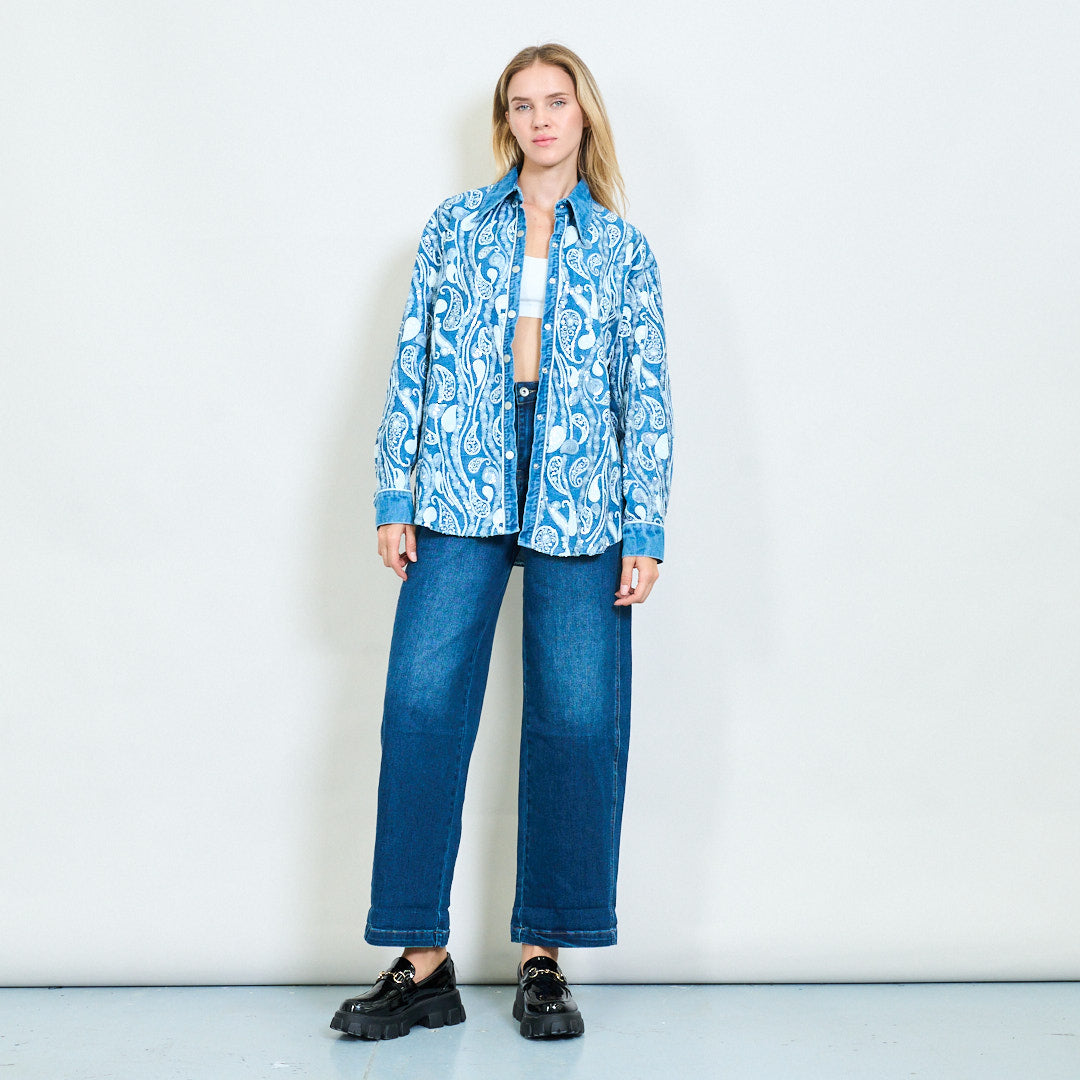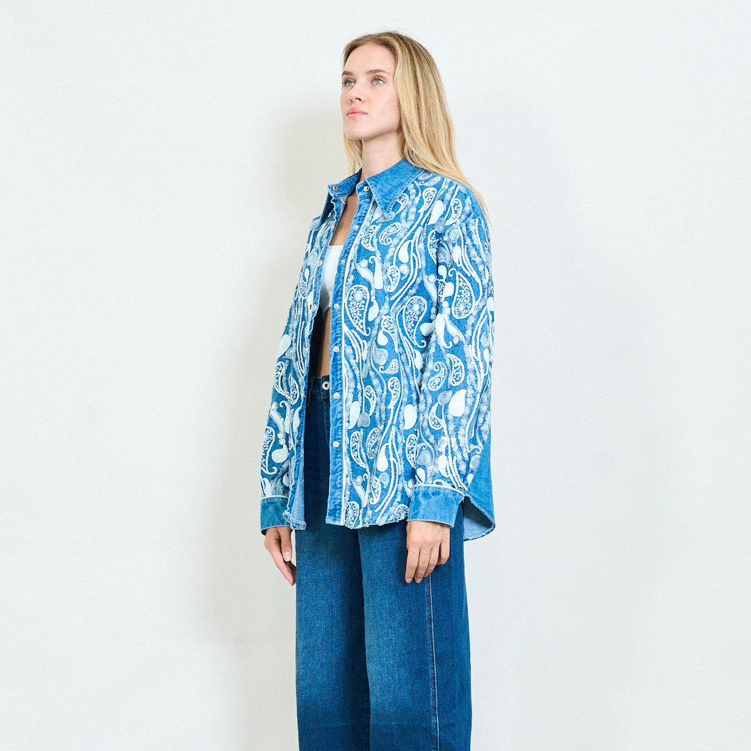 - Δήλωση Denim πουκάμισο με περίπλοκο κεντήματα Paisley