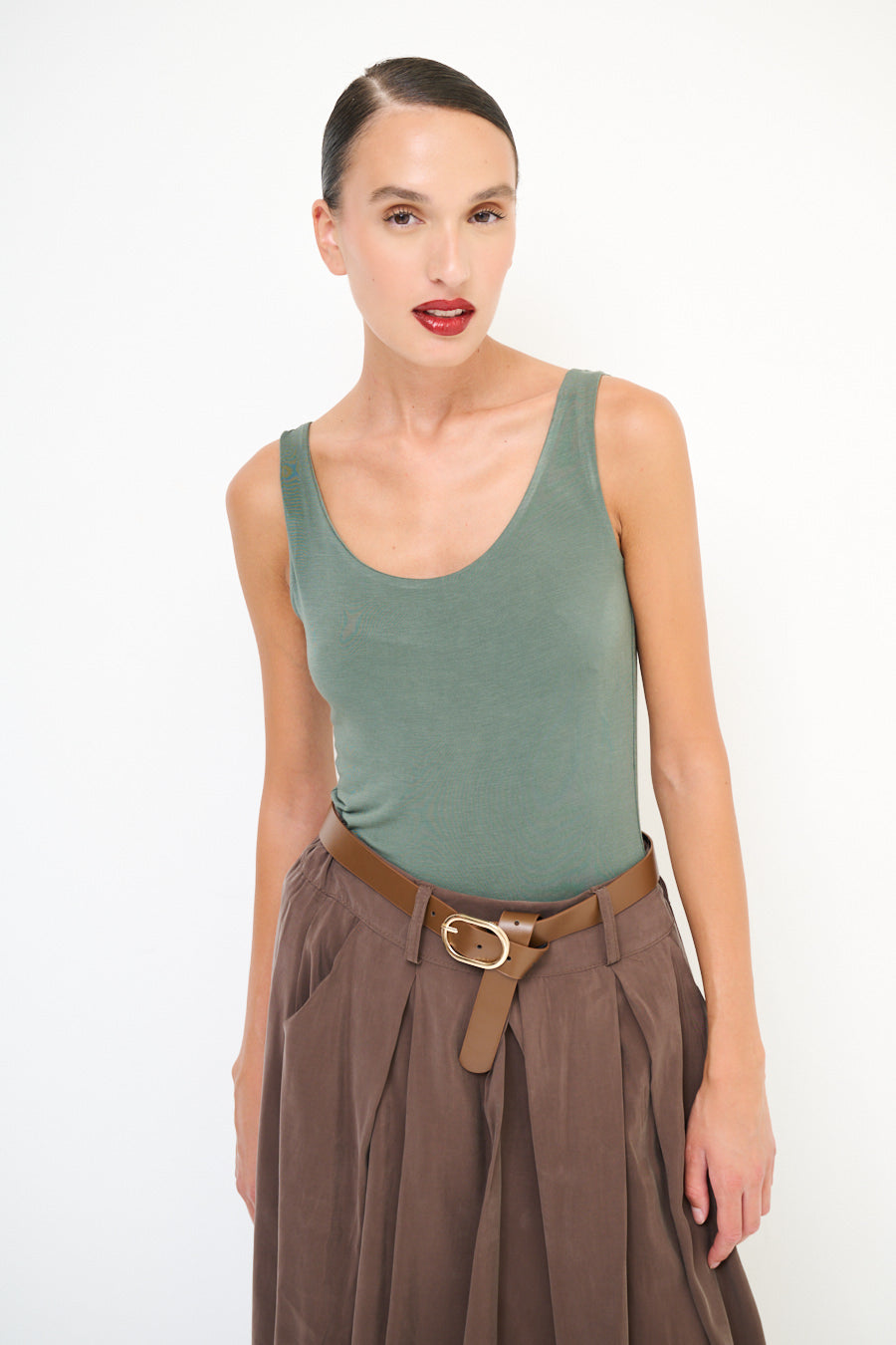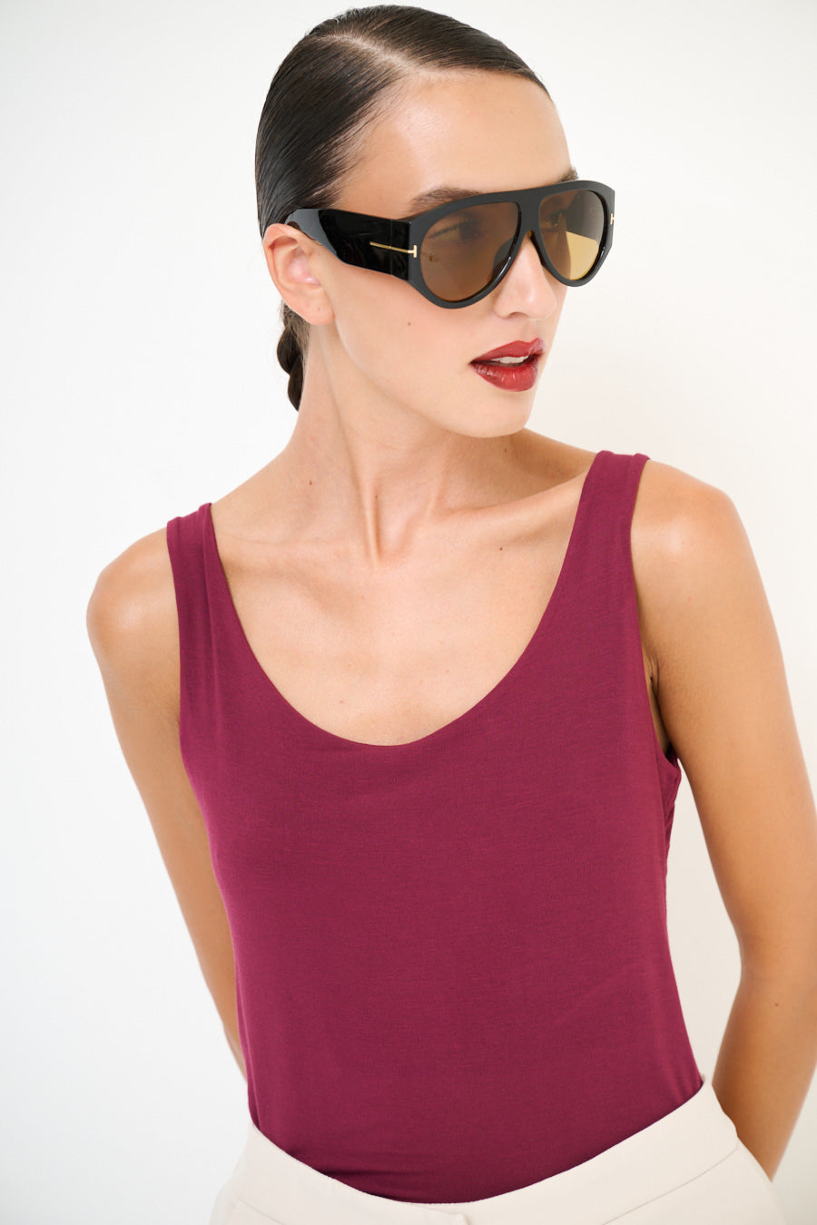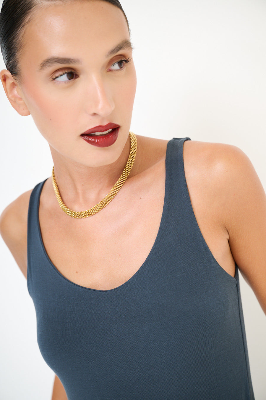 Scoop λαιμό τέντωμα αμάνικη κορυφή χονδρική πώληση