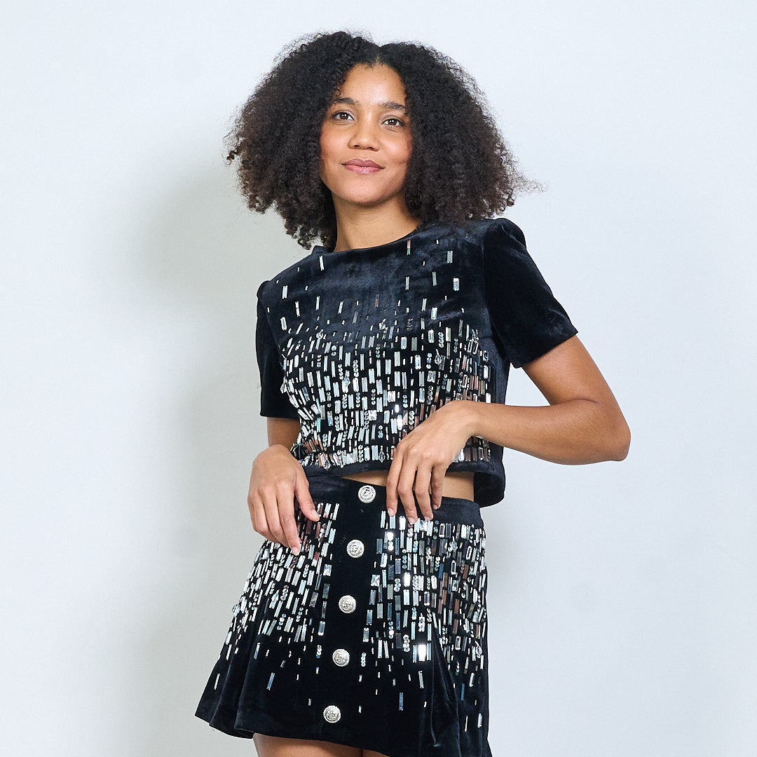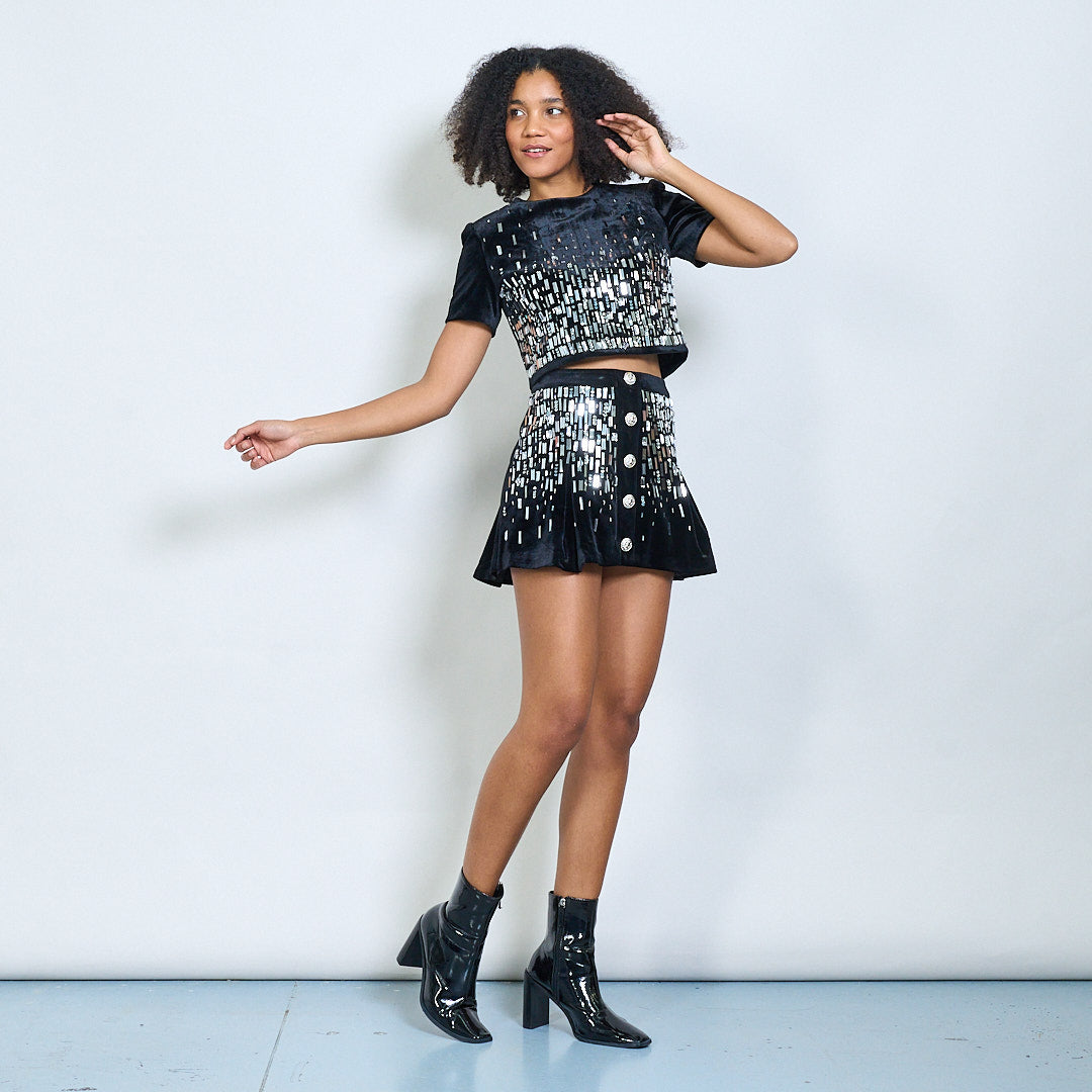 Velvet Crop Top με διακοσμήσεις Sequin χονδρικής
