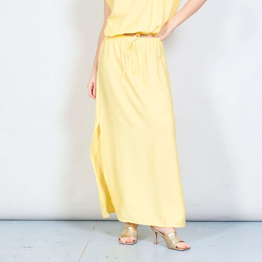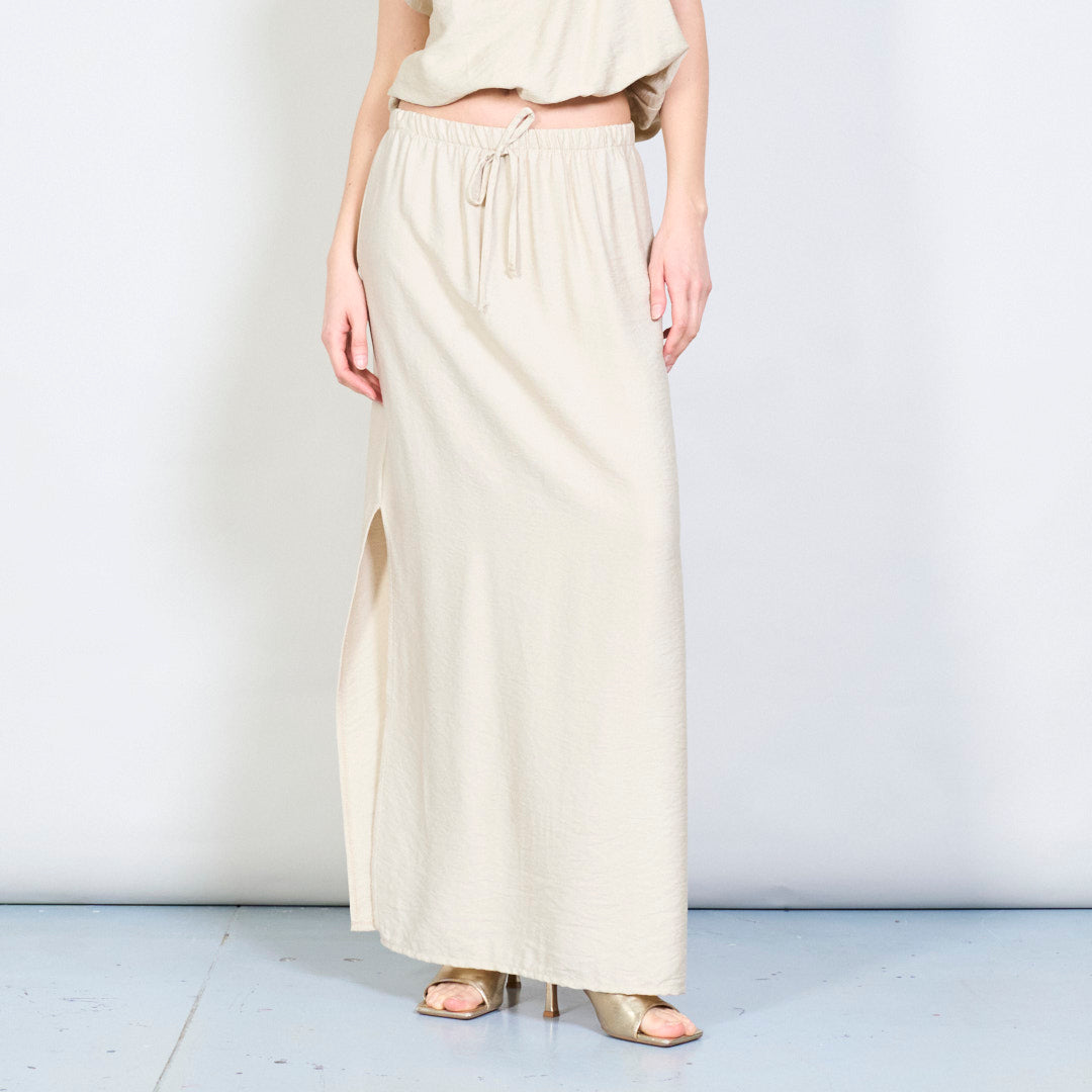MIDI φούστα με ελαστική χονδρική ζώνη μέσης