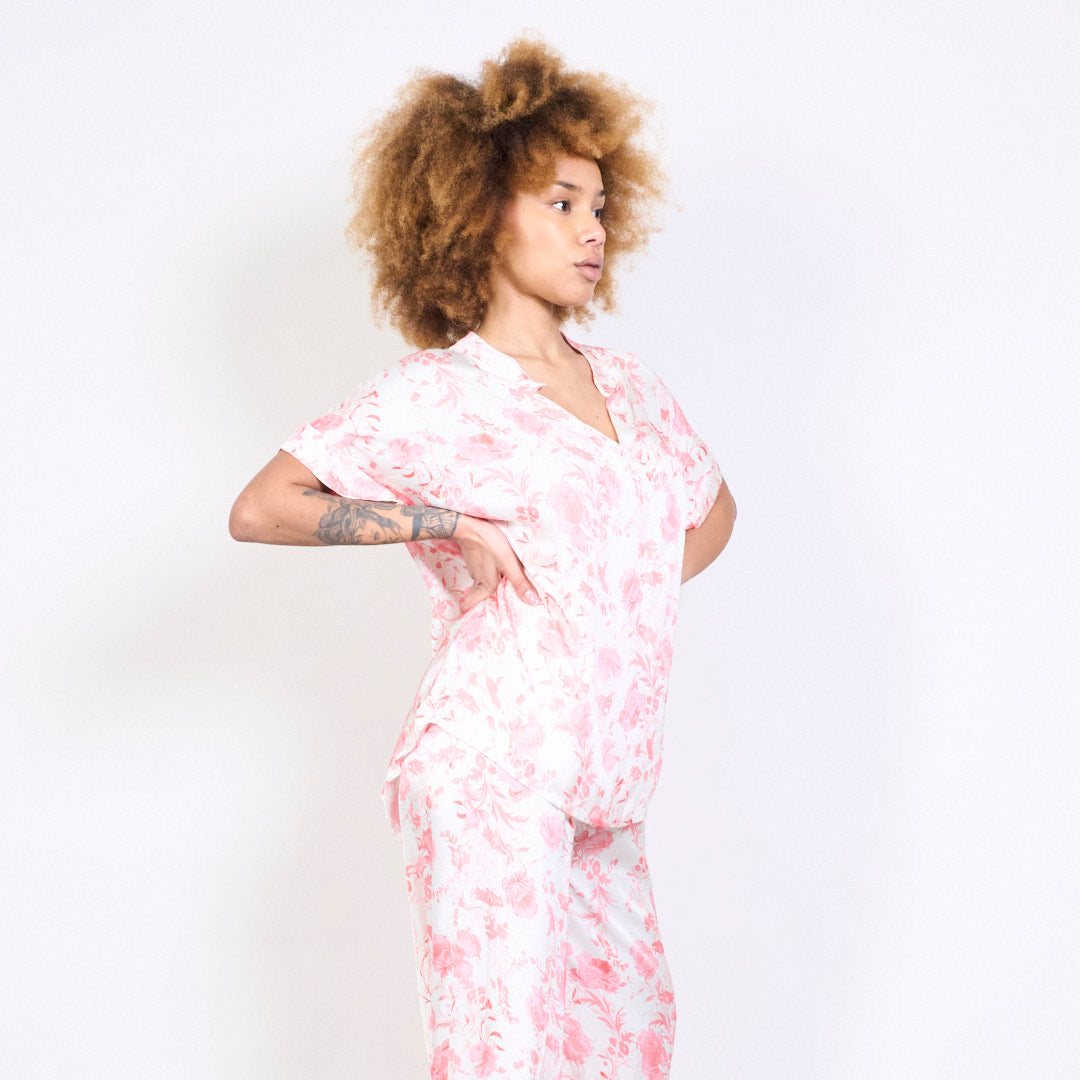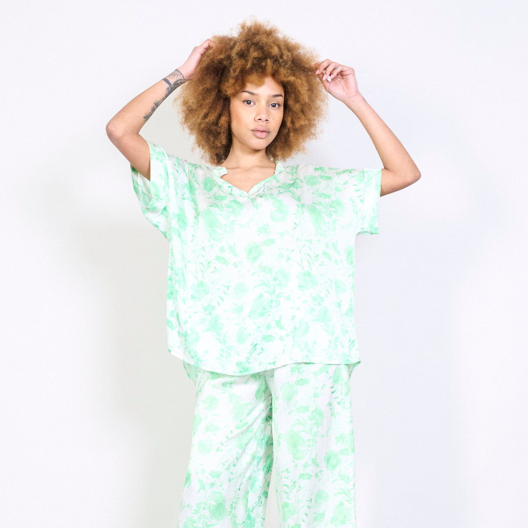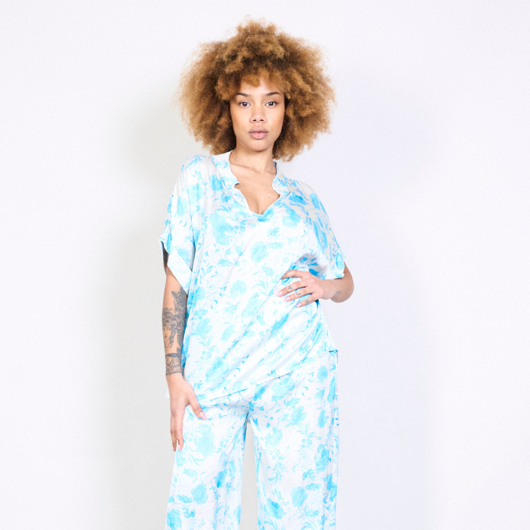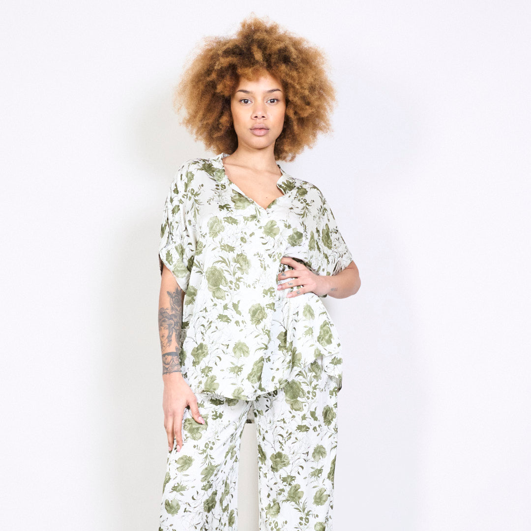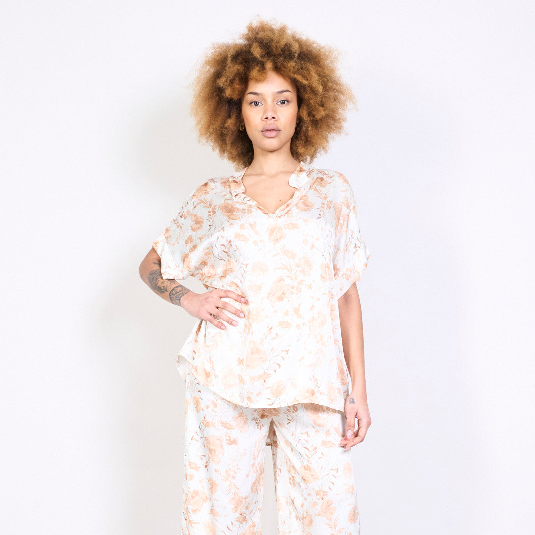 V-λαιμό floral print μπλούζα χονδρική πώληση
