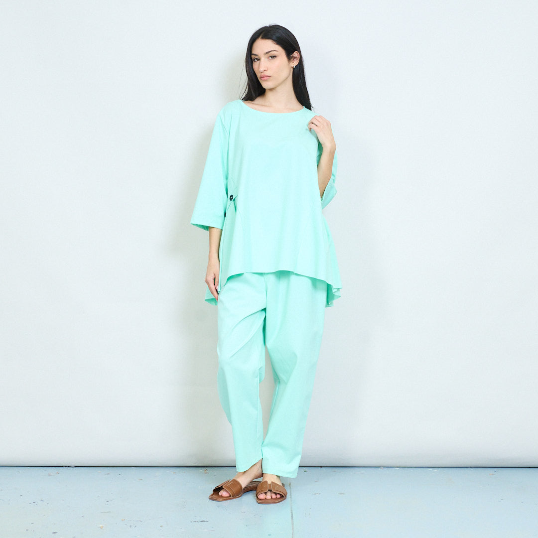 • Μαλακό ντραπέ λαιμόκοψη που δημιουργεί μια κομψή χαλαρή εμφάνιση