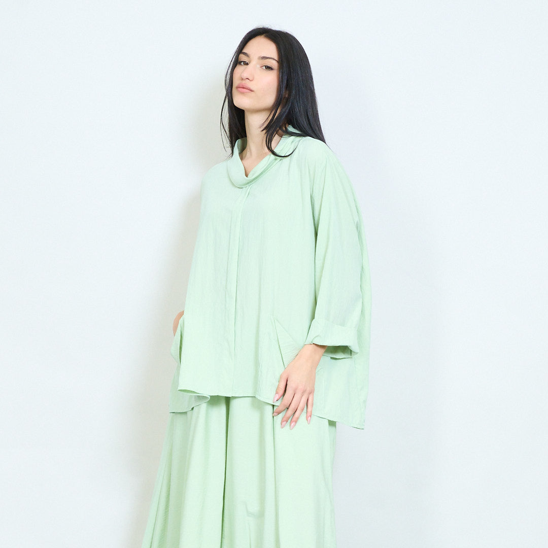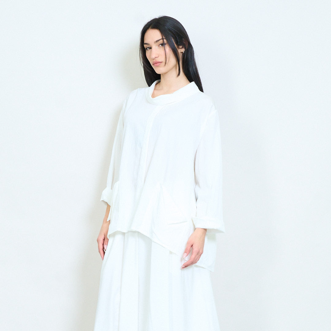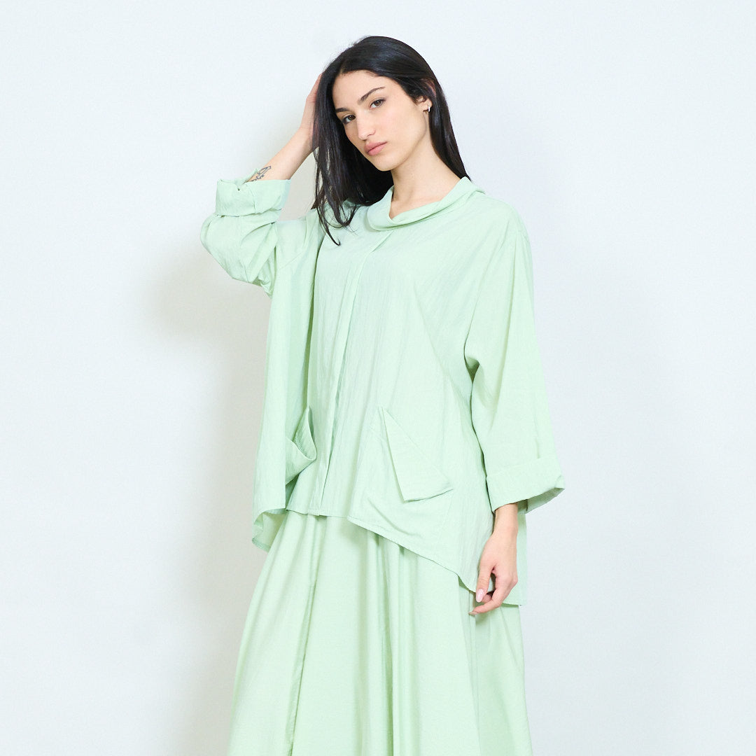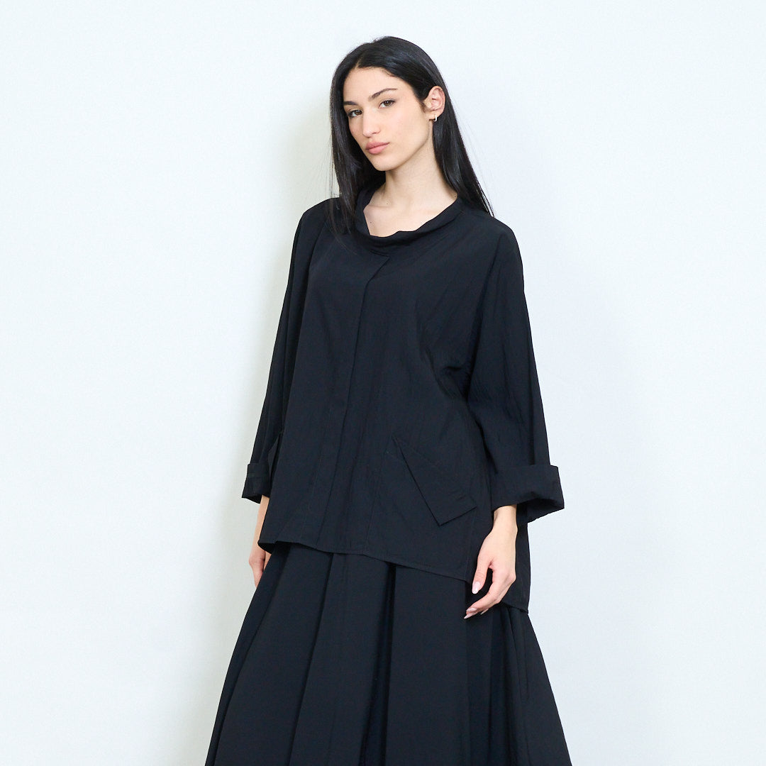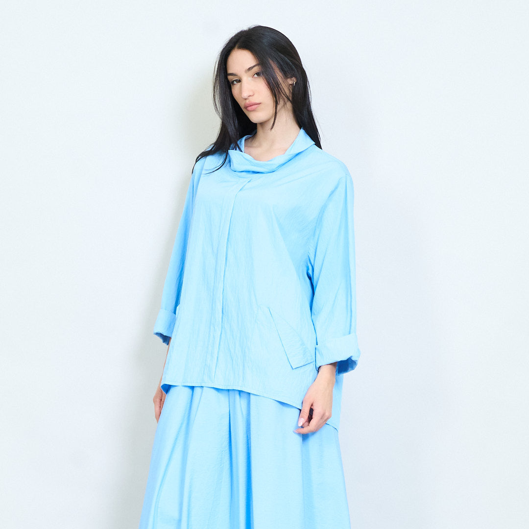 Μπλούζα ασύμμετρη τσέπη με μαλακή ντραπέ λαιμόκοψη