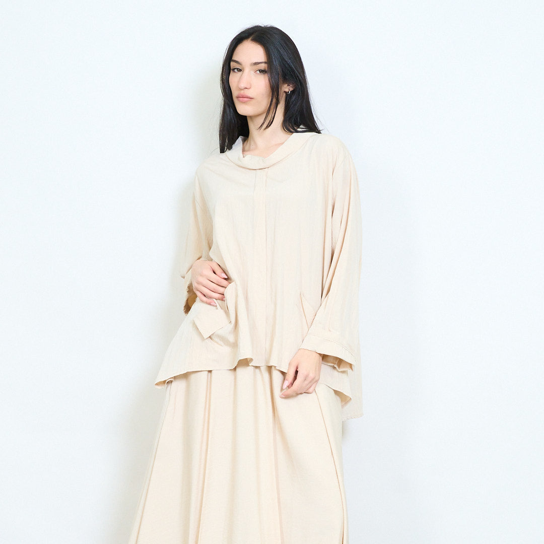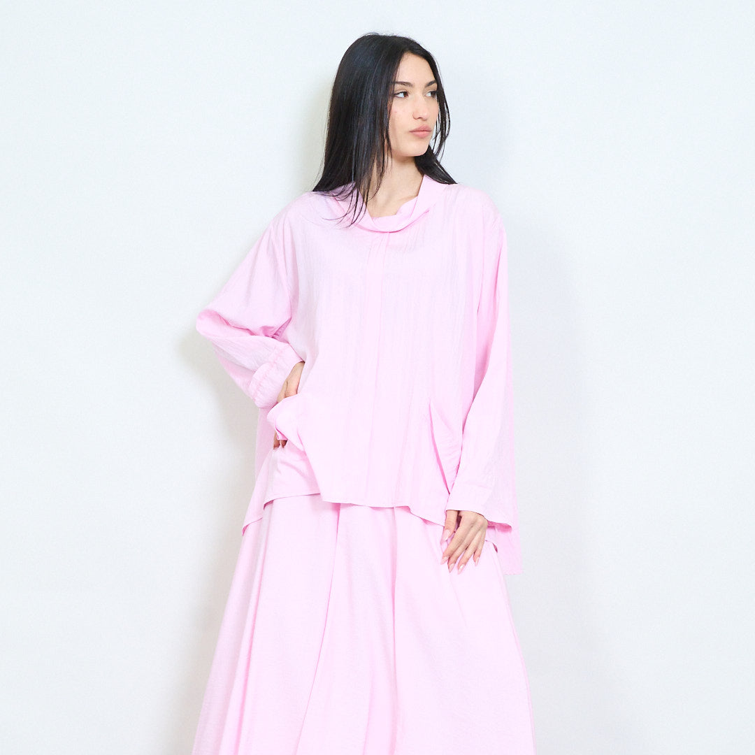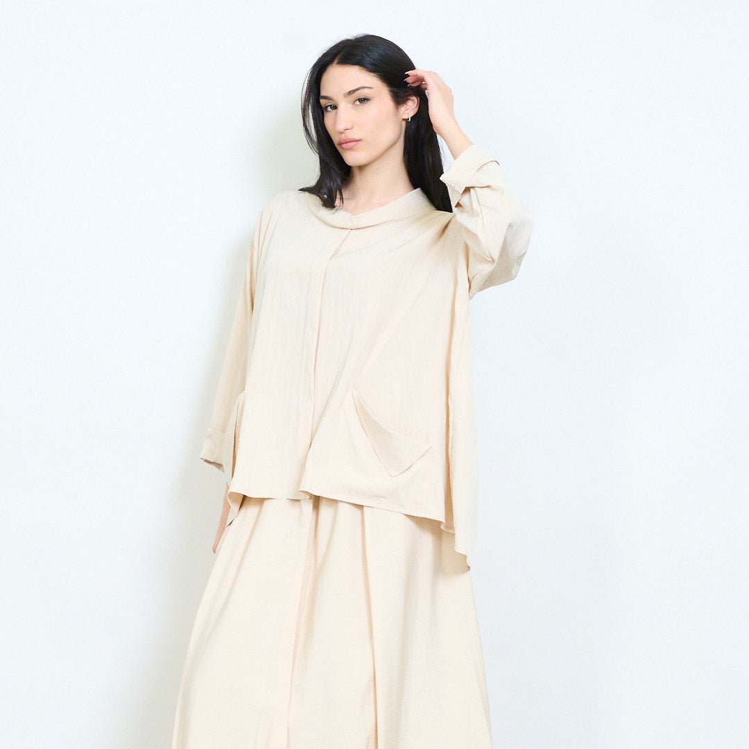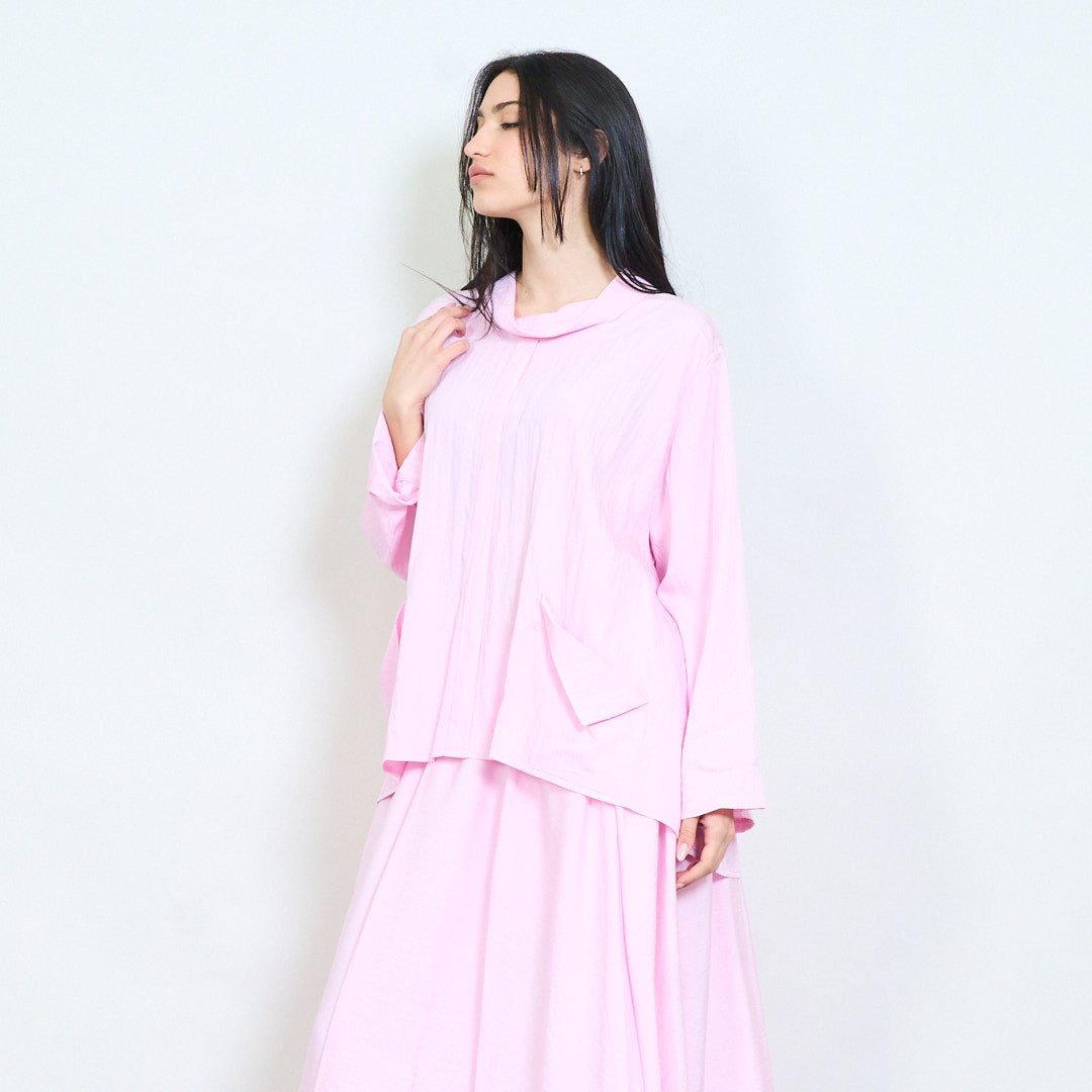 Μπλούζα ασύμμετρη τσέπη με μαλακή ντραπέ λαιμόκοψη