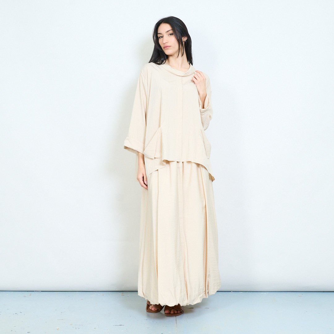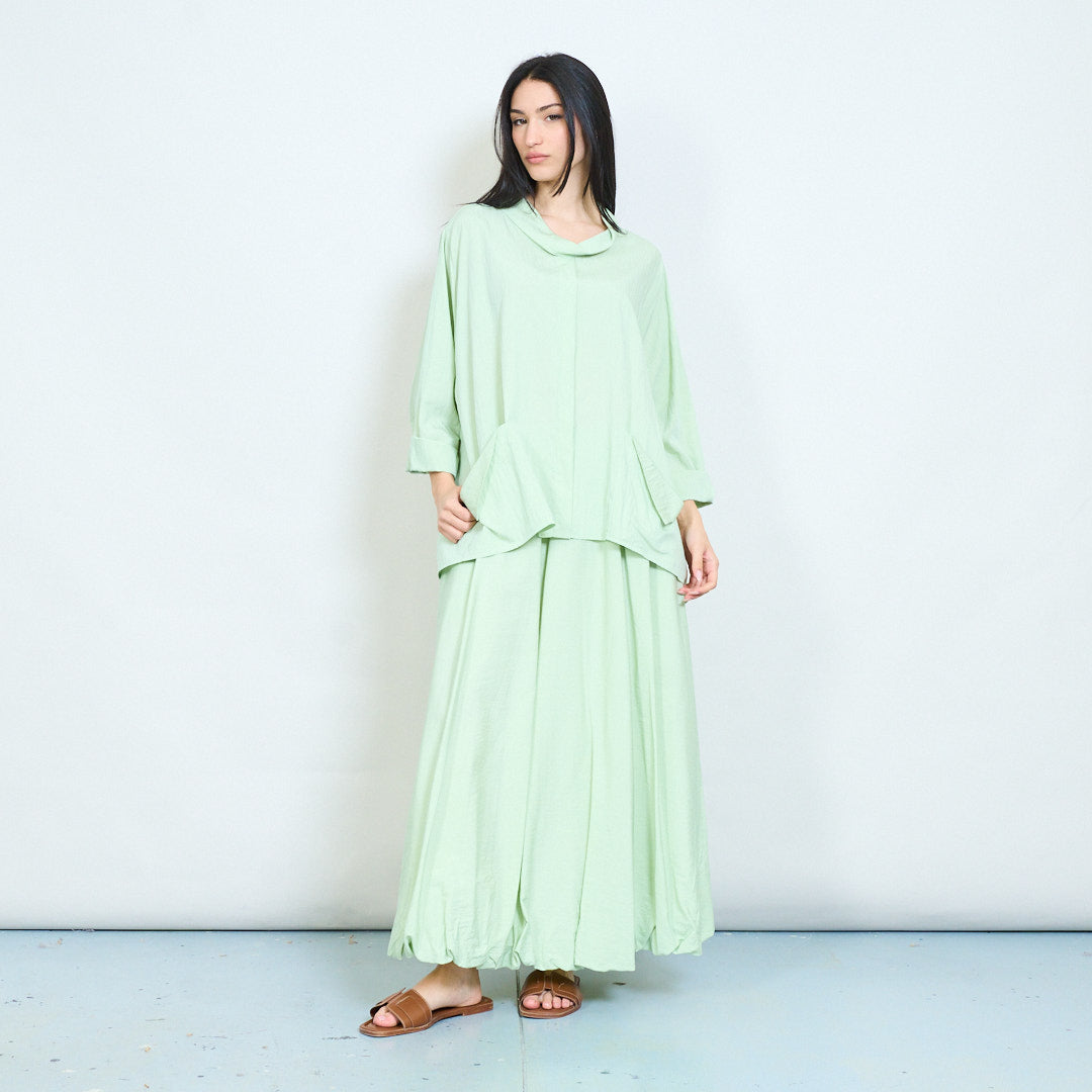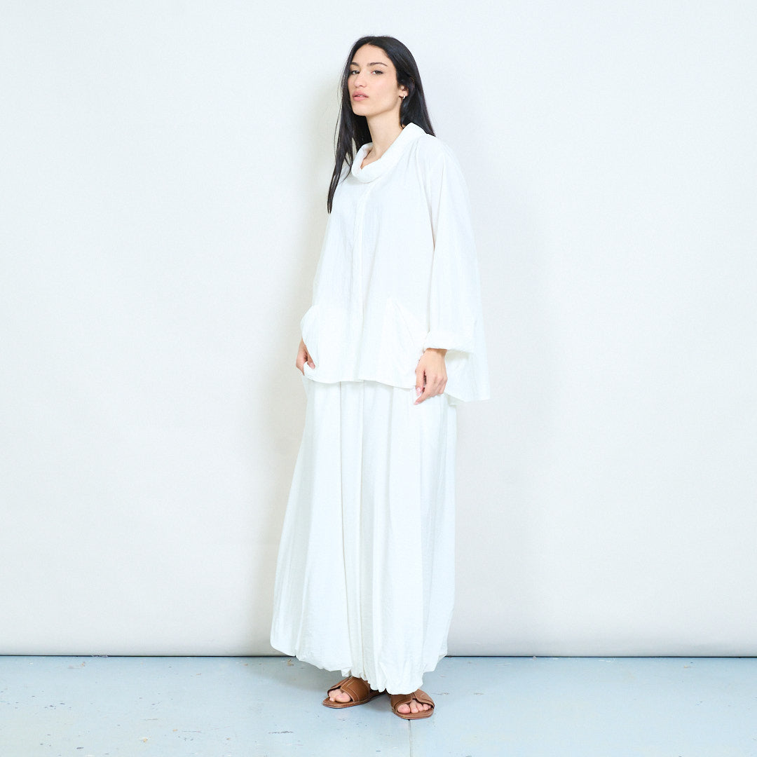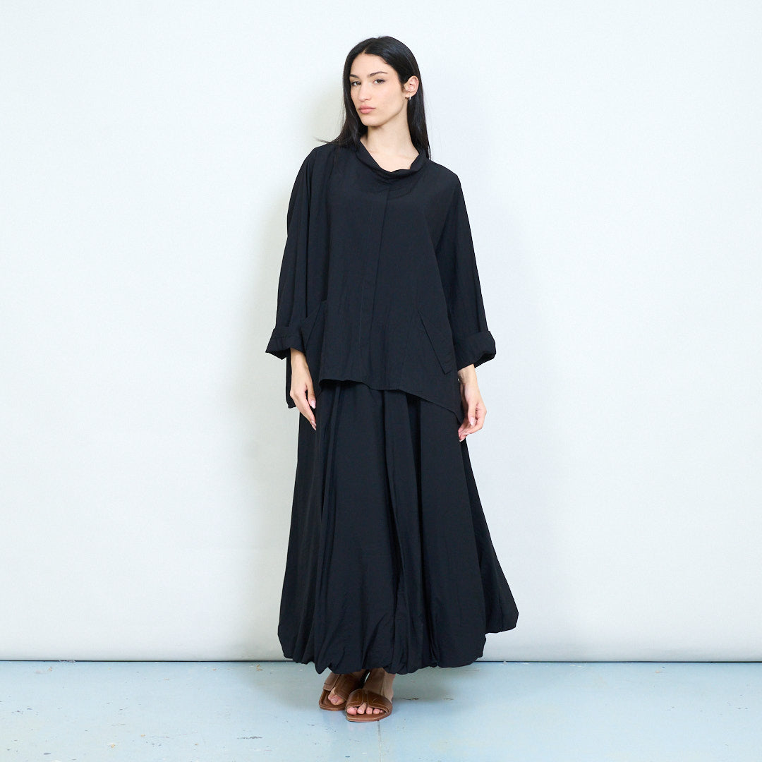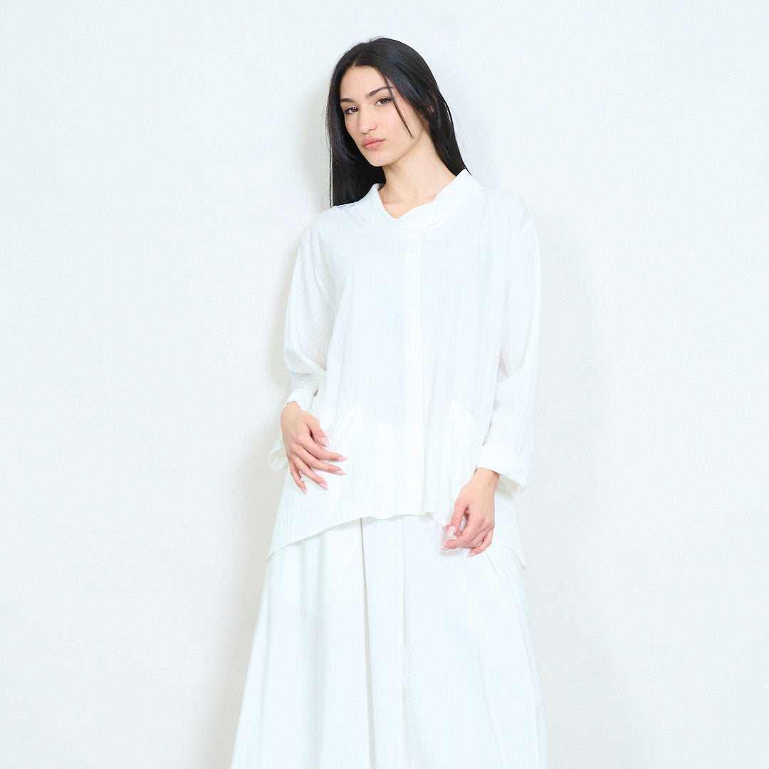 Μπλούζα ασύμμετρη τσέπη με μαλακή ντραπέ λαιμόκοψη