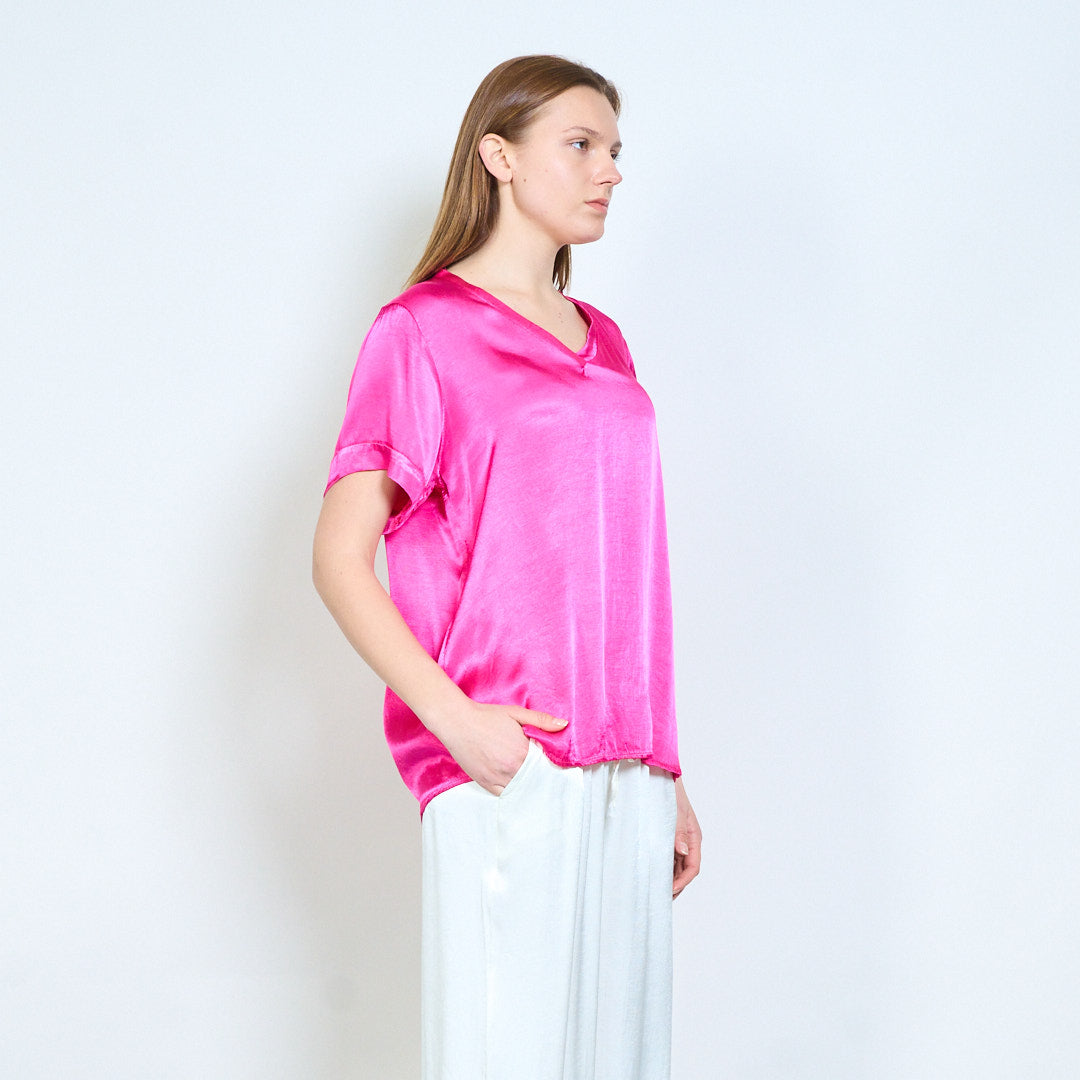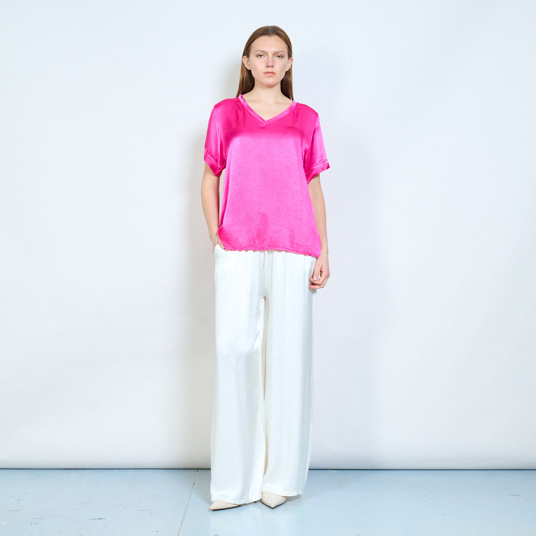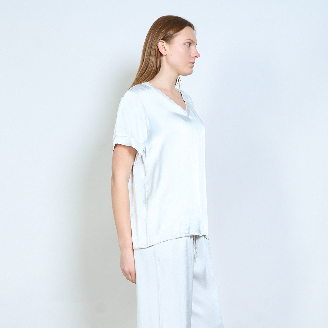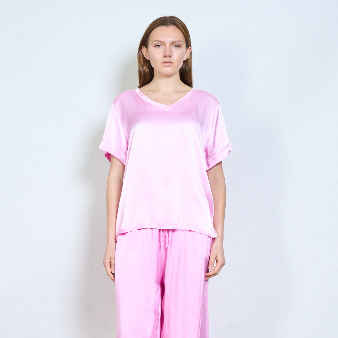Απαλή λαιμόκοψη v χαλαρό κοντομάνικο μπλουζάκι χονδρικής