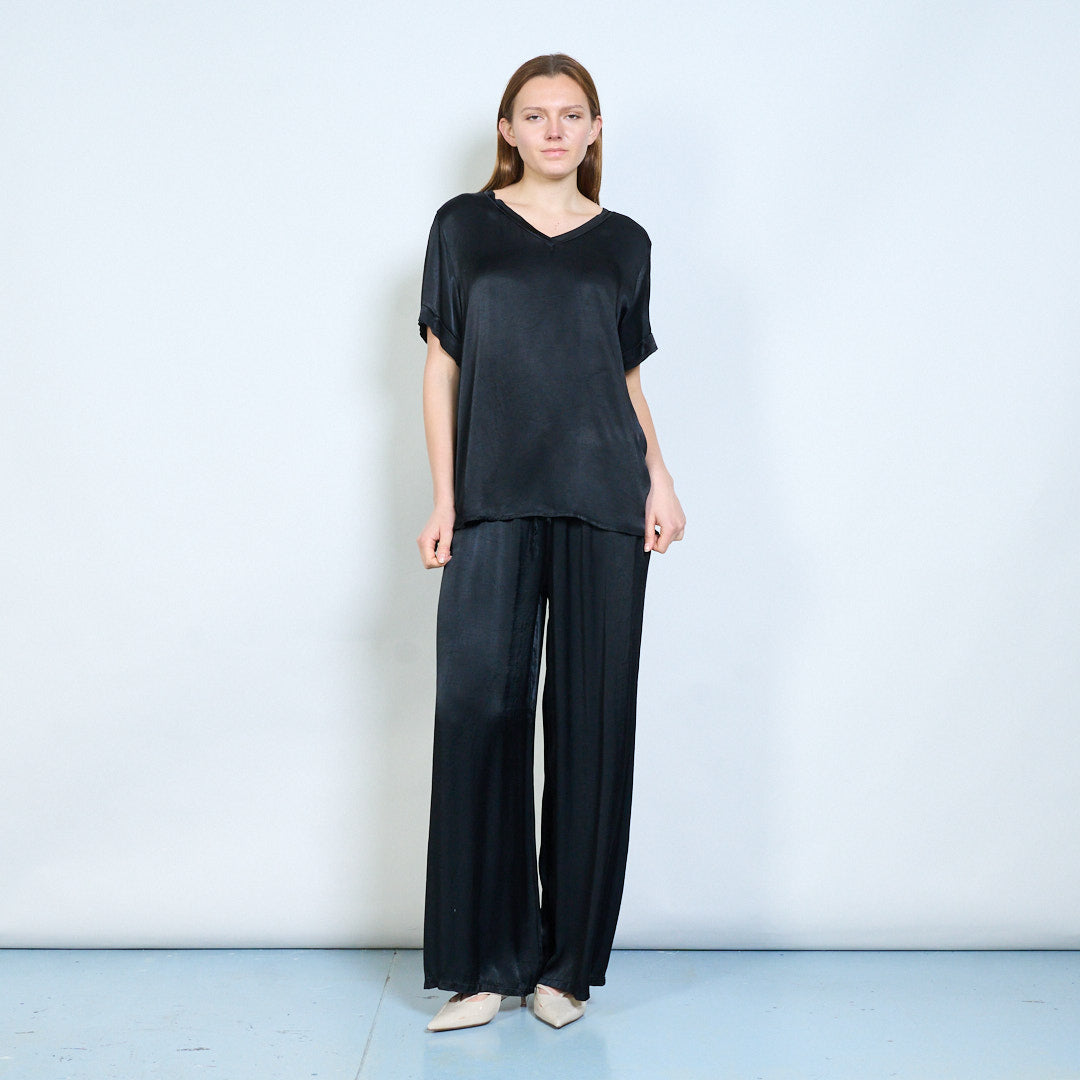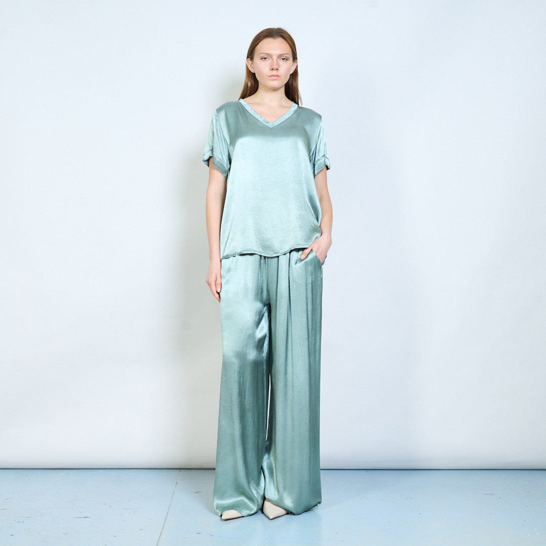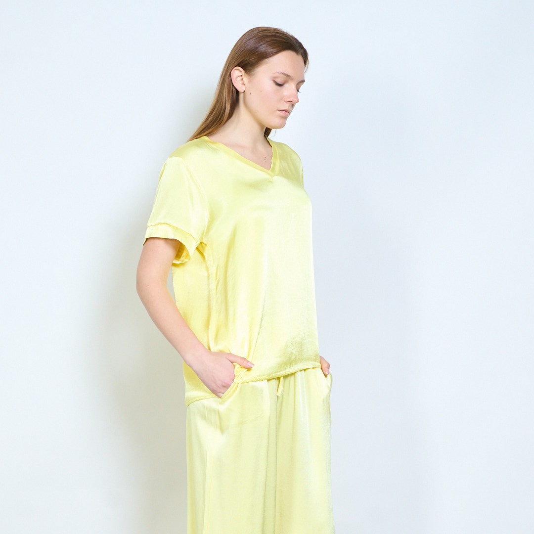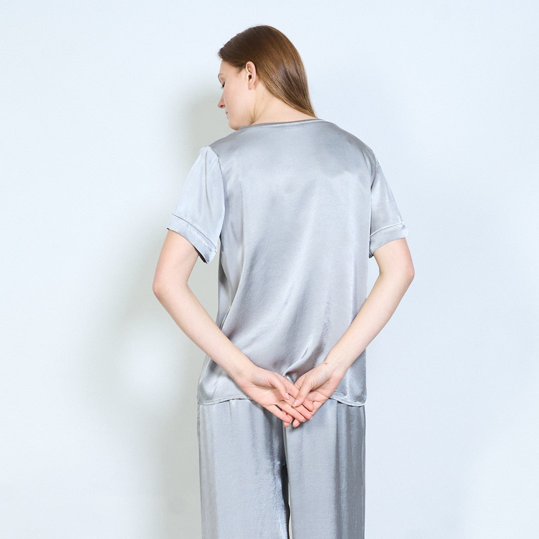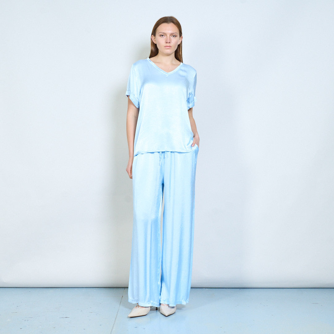 Απαλή λαιμόκοψη v χαλαρό κοντομάνικο μπλουζάκι χονδρικής
