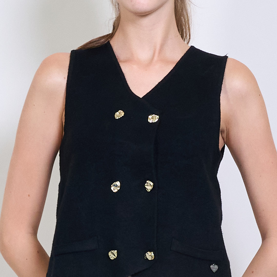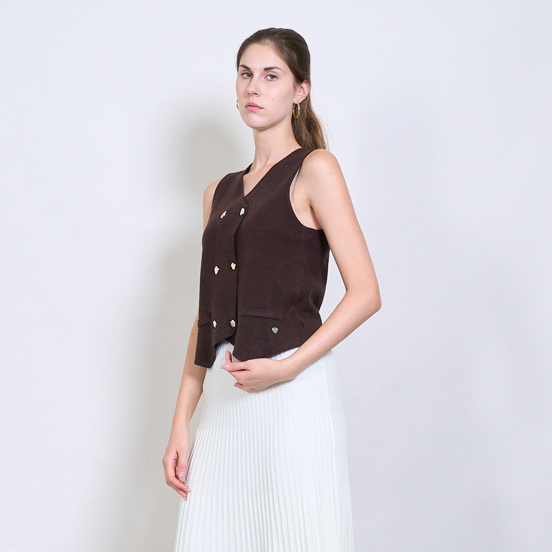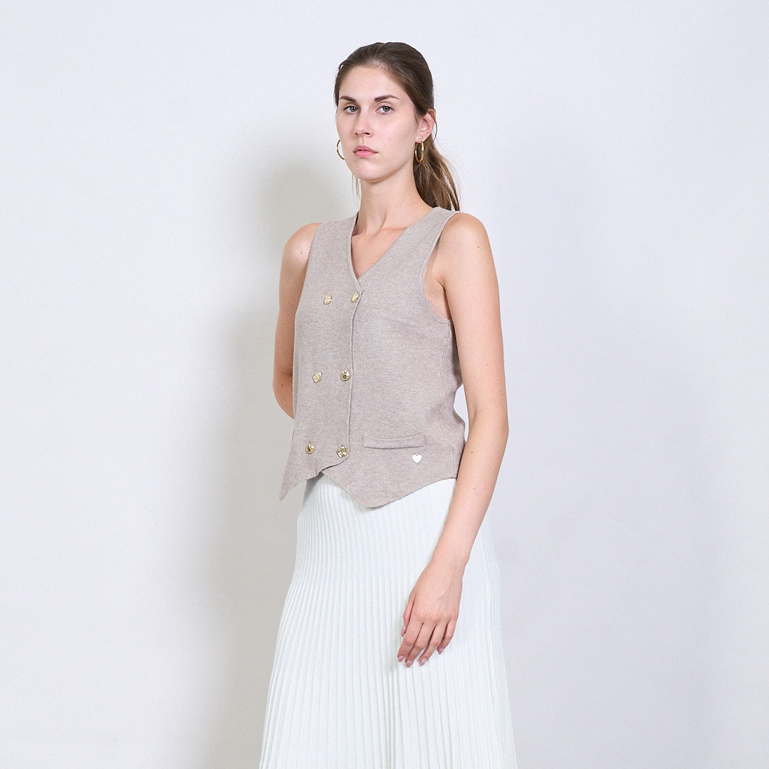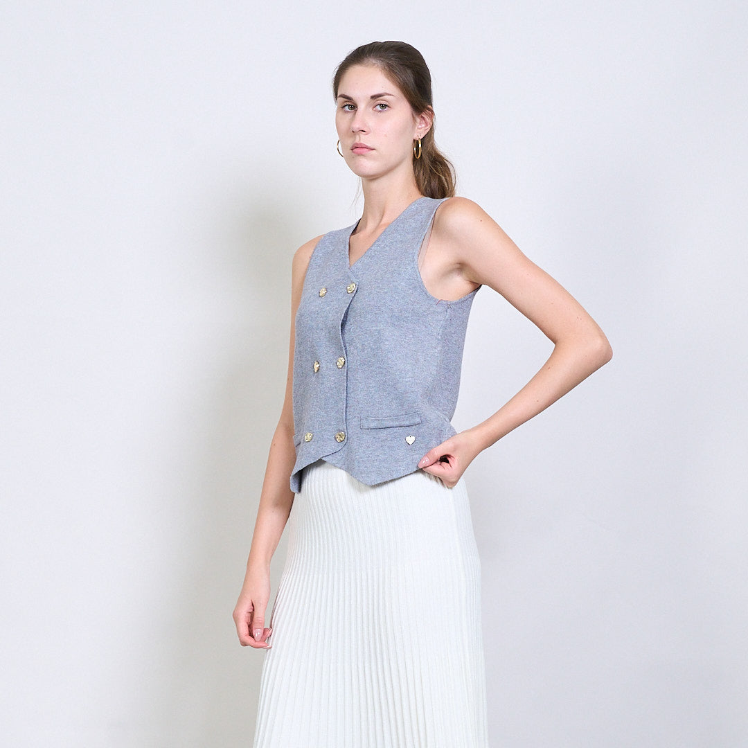 Διπλασιασμένο πλεκτό γιλέκο με χρυσά κουμπιά και μεταλλική καρδιακή ετικέτα χονδρικής