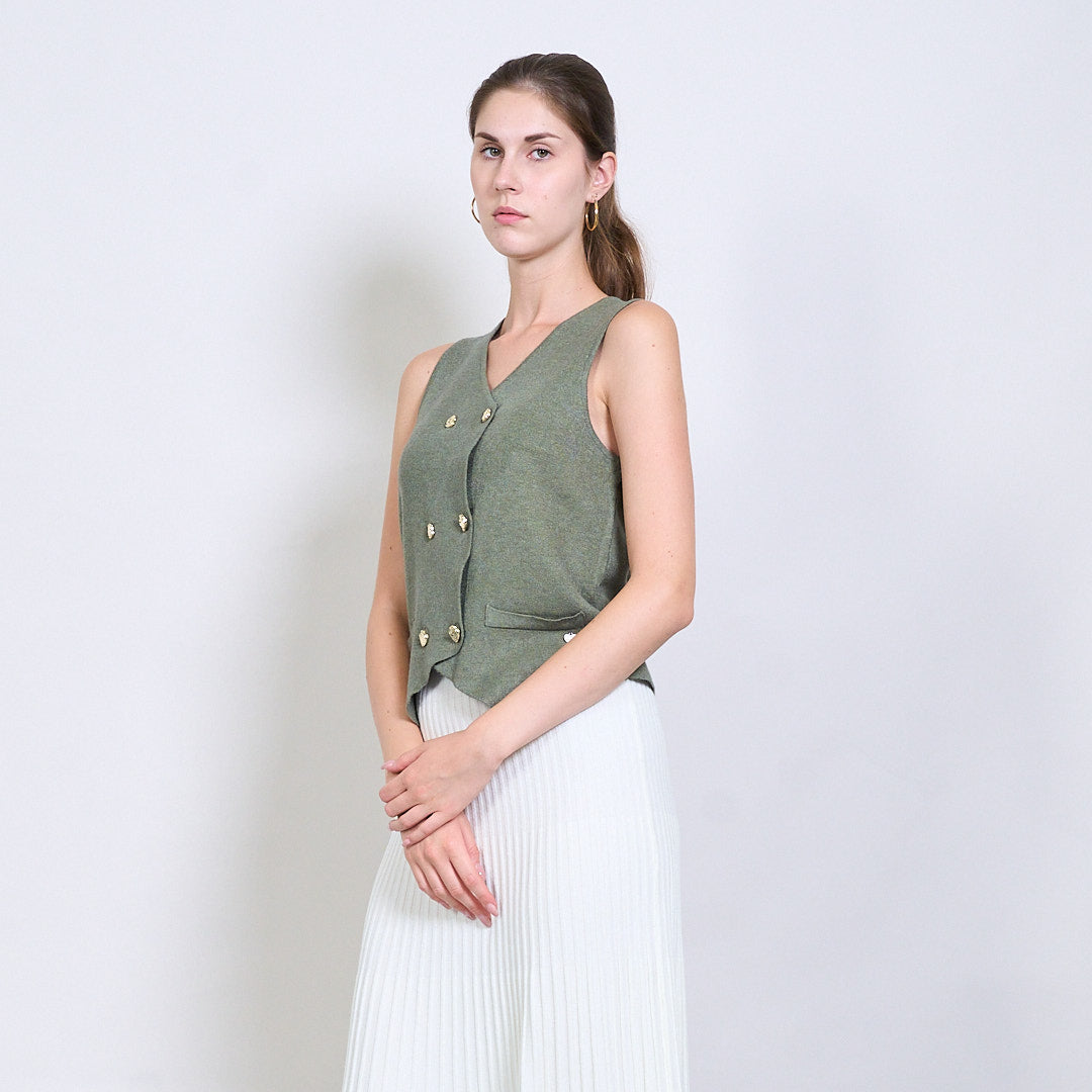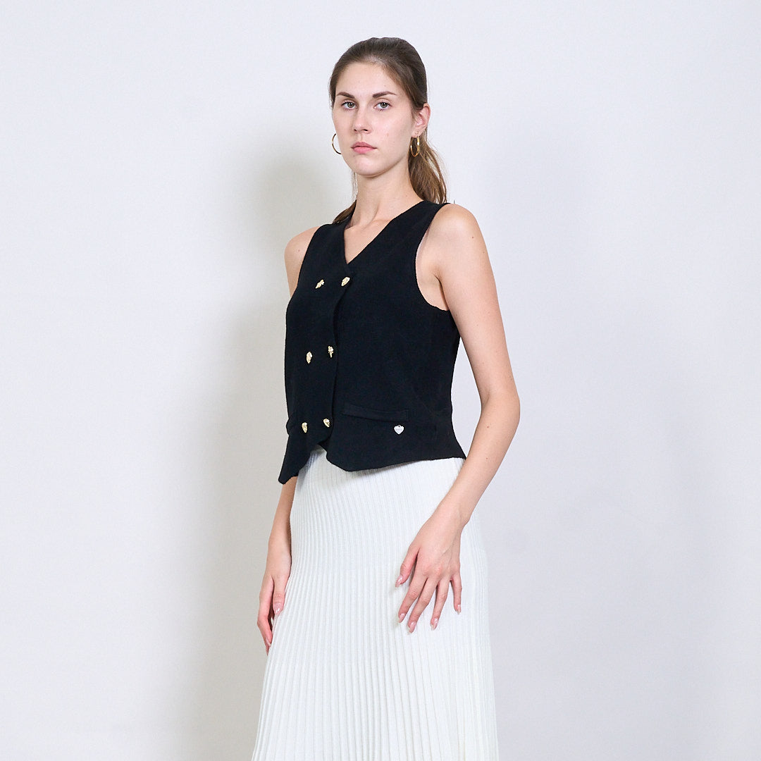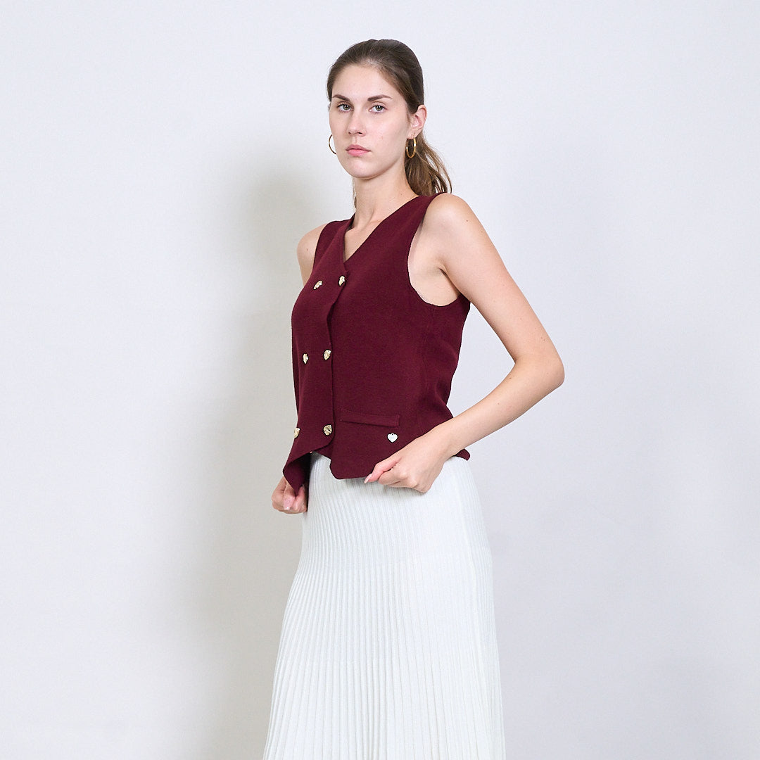 Διπλασιασμένο πλεκτό γιλέκο με χρυσά κουμπιά και μεταλλική καρδιακή ετικέτα χονδρικής
