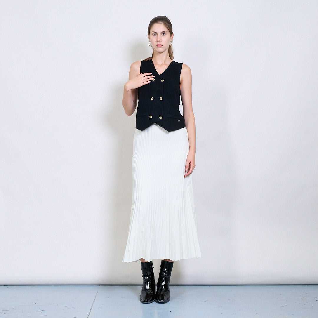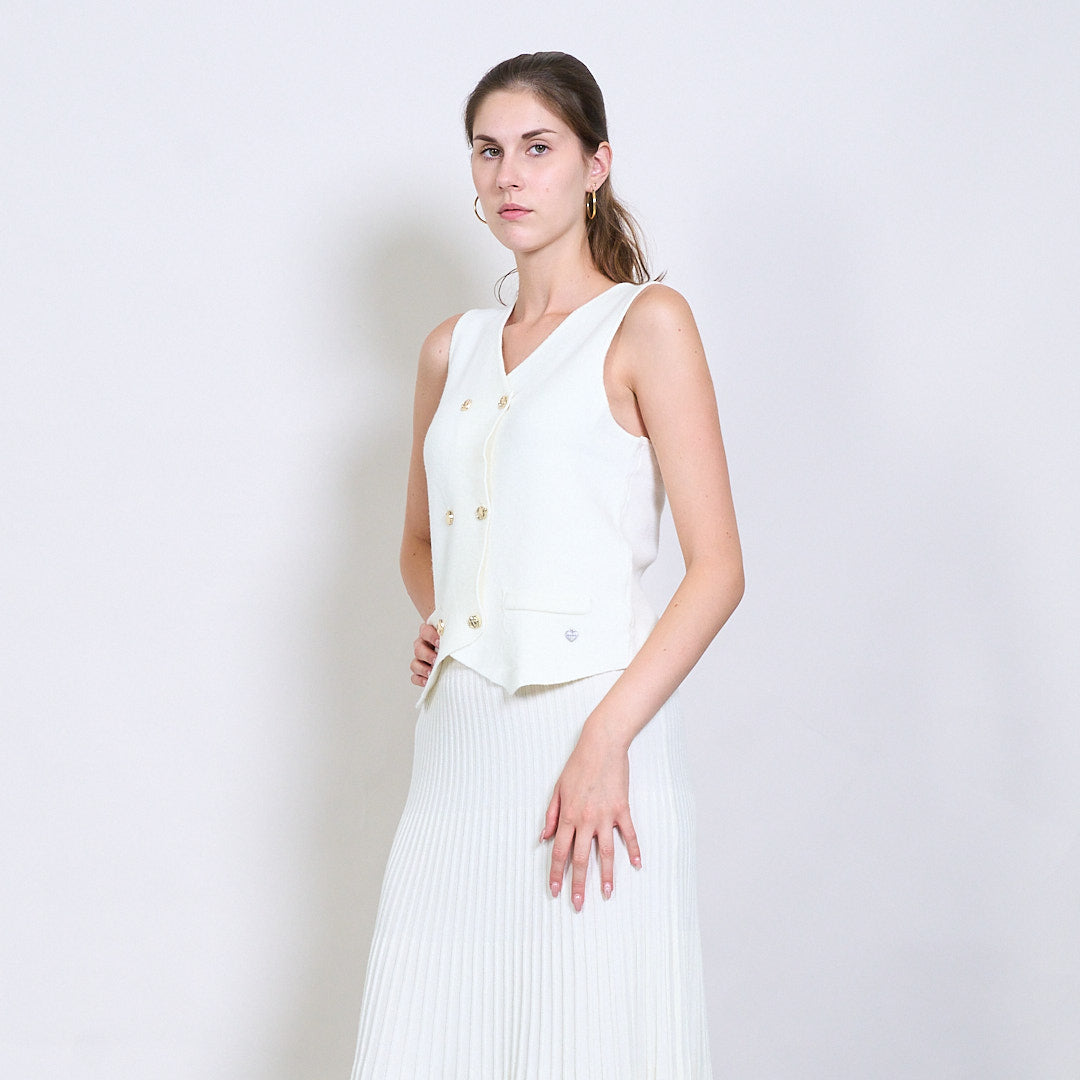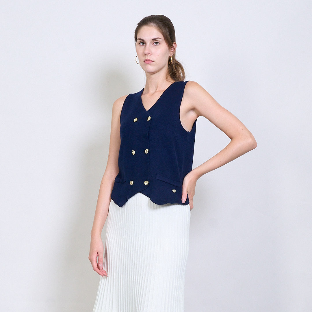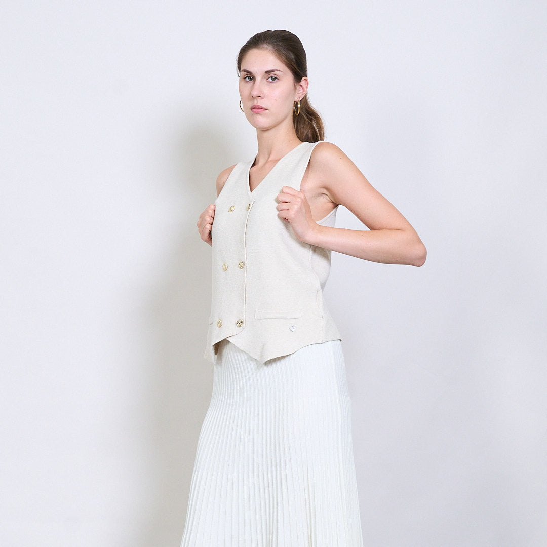 Διπλασιασμένο πλεκτό γιλέκο με χρυσά κουμπιά και μεταλλική καρδιακή ετικέτα χονδρικής