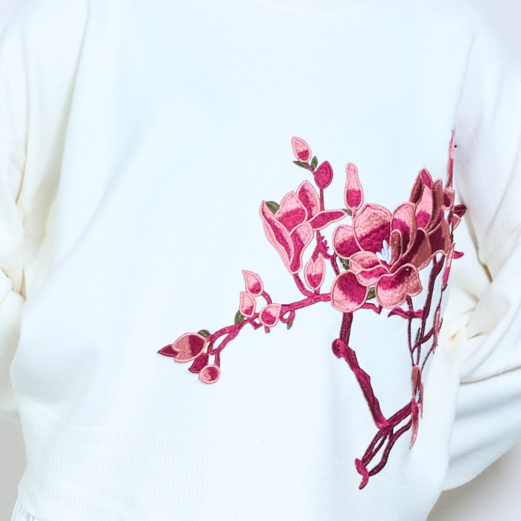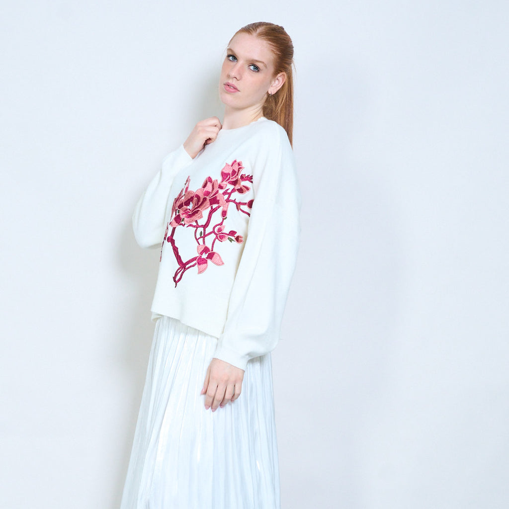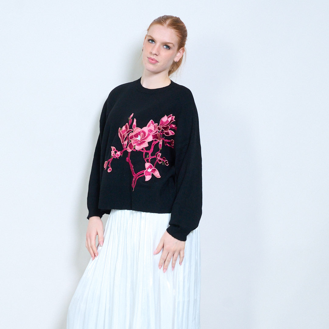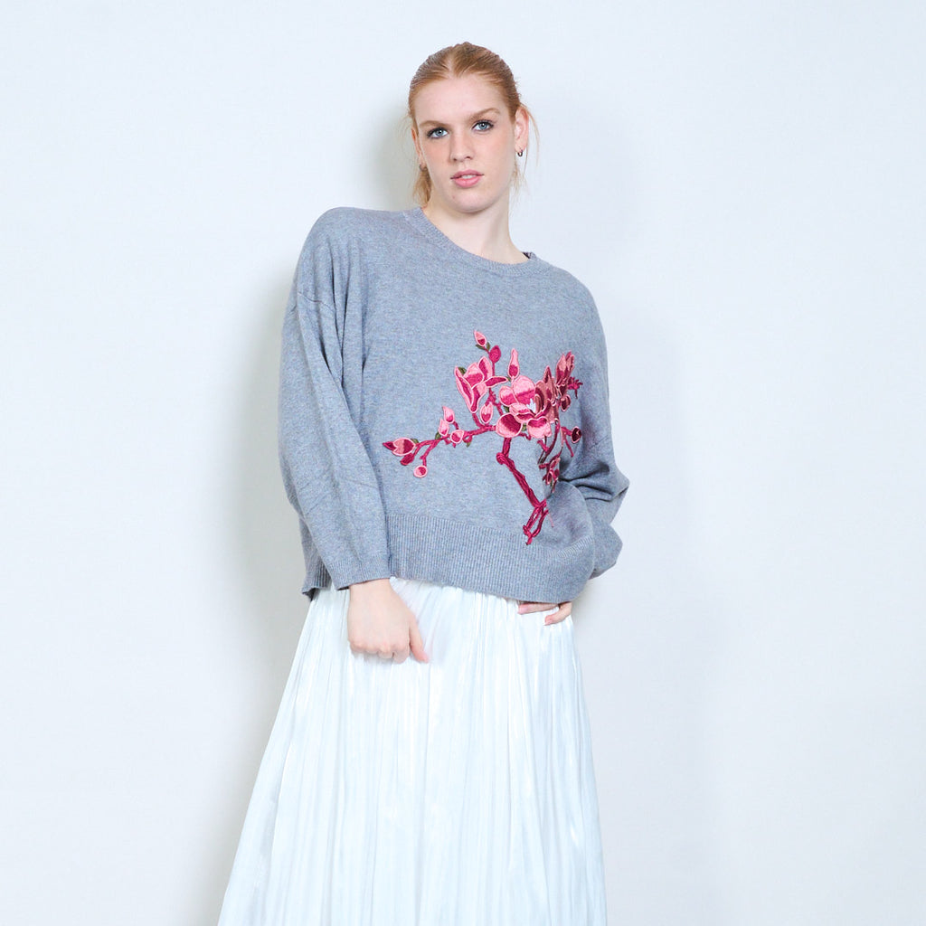 Πουλόβερ με στρογγυλή λαιμόκοψη με κλαδί ορχιδέας με κέντημα φλοράλ χονδρικής