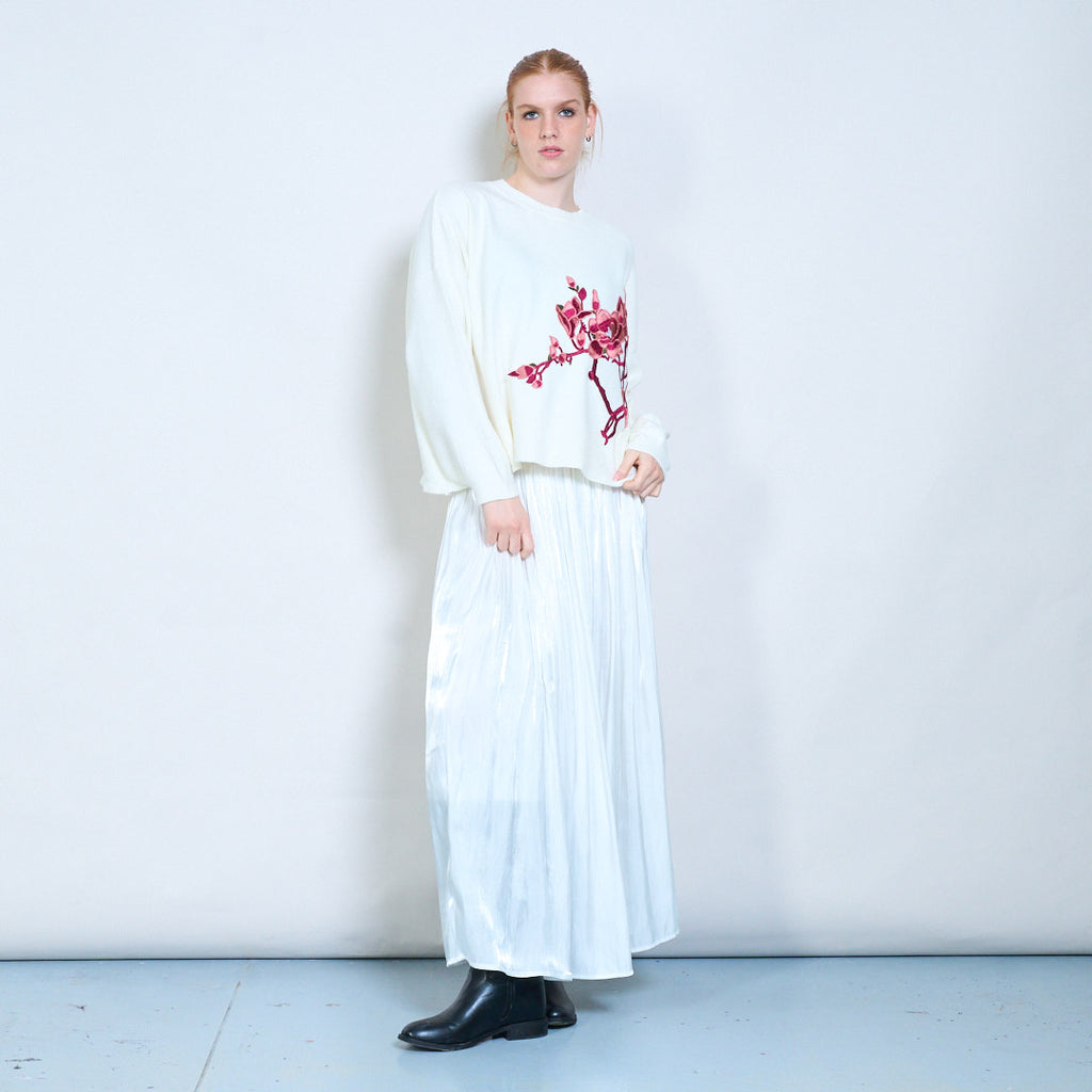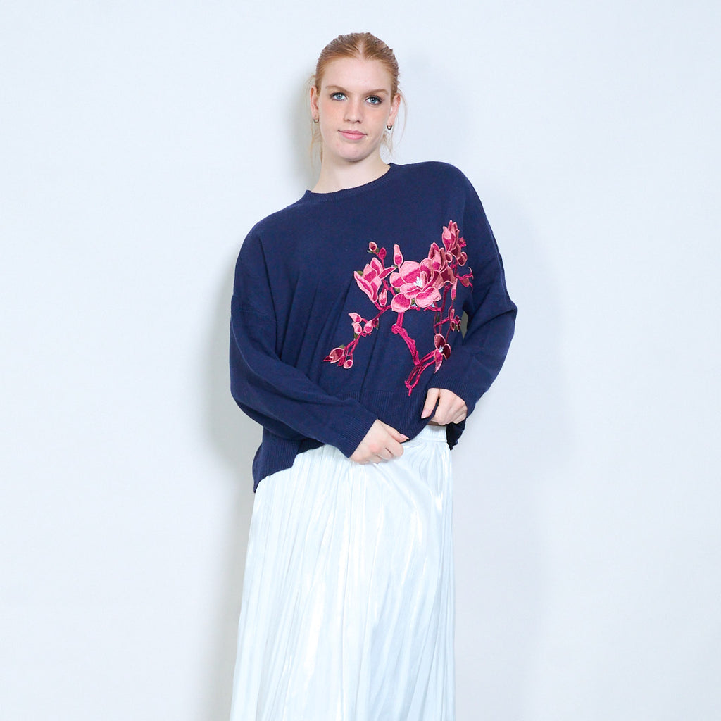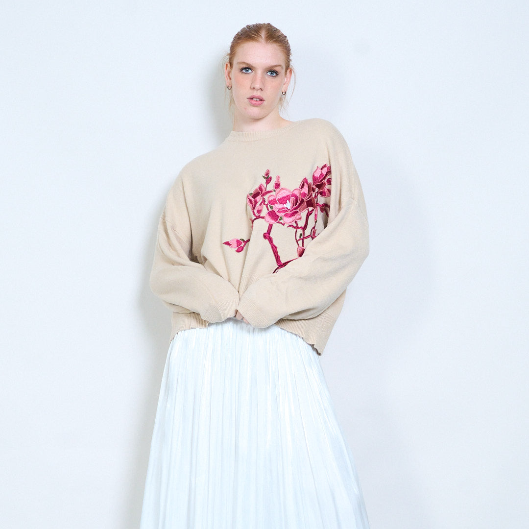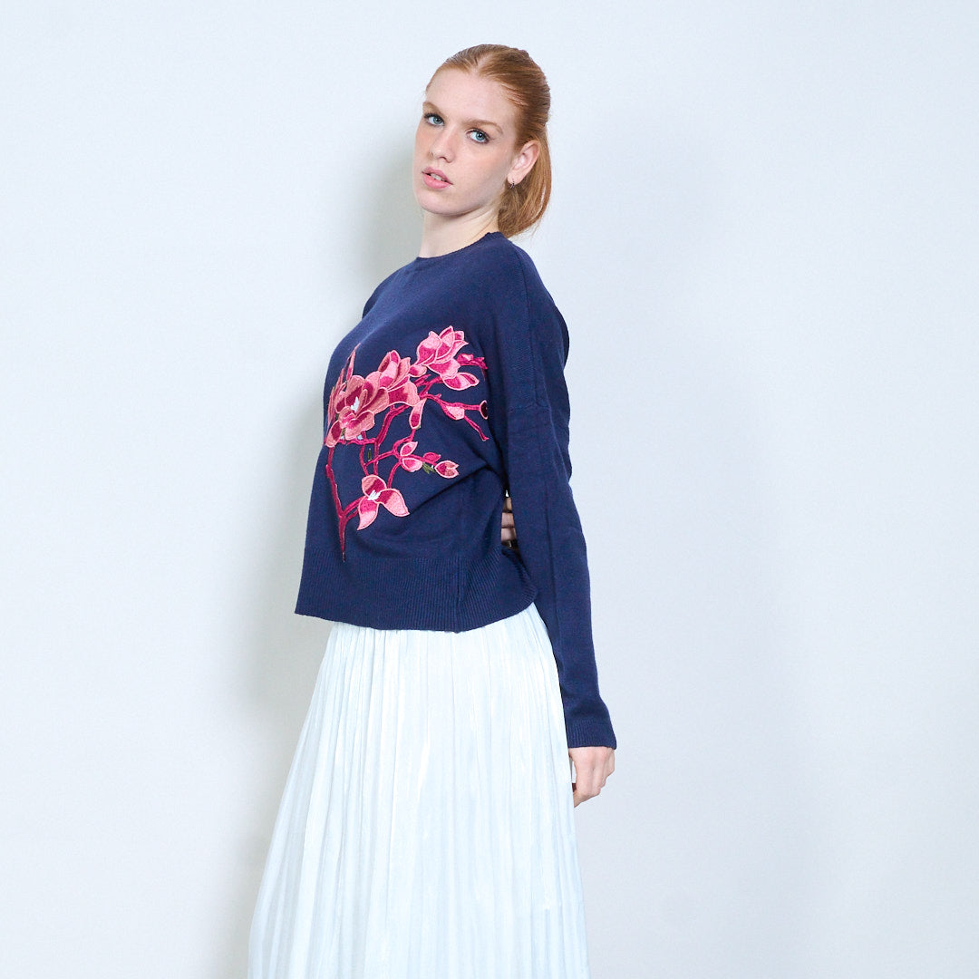 Πουλόβερ με στρογγυλή λαιμόκοψη με κλαδί ορχιδέας με κέντημα φλοράλ χονδρικής
