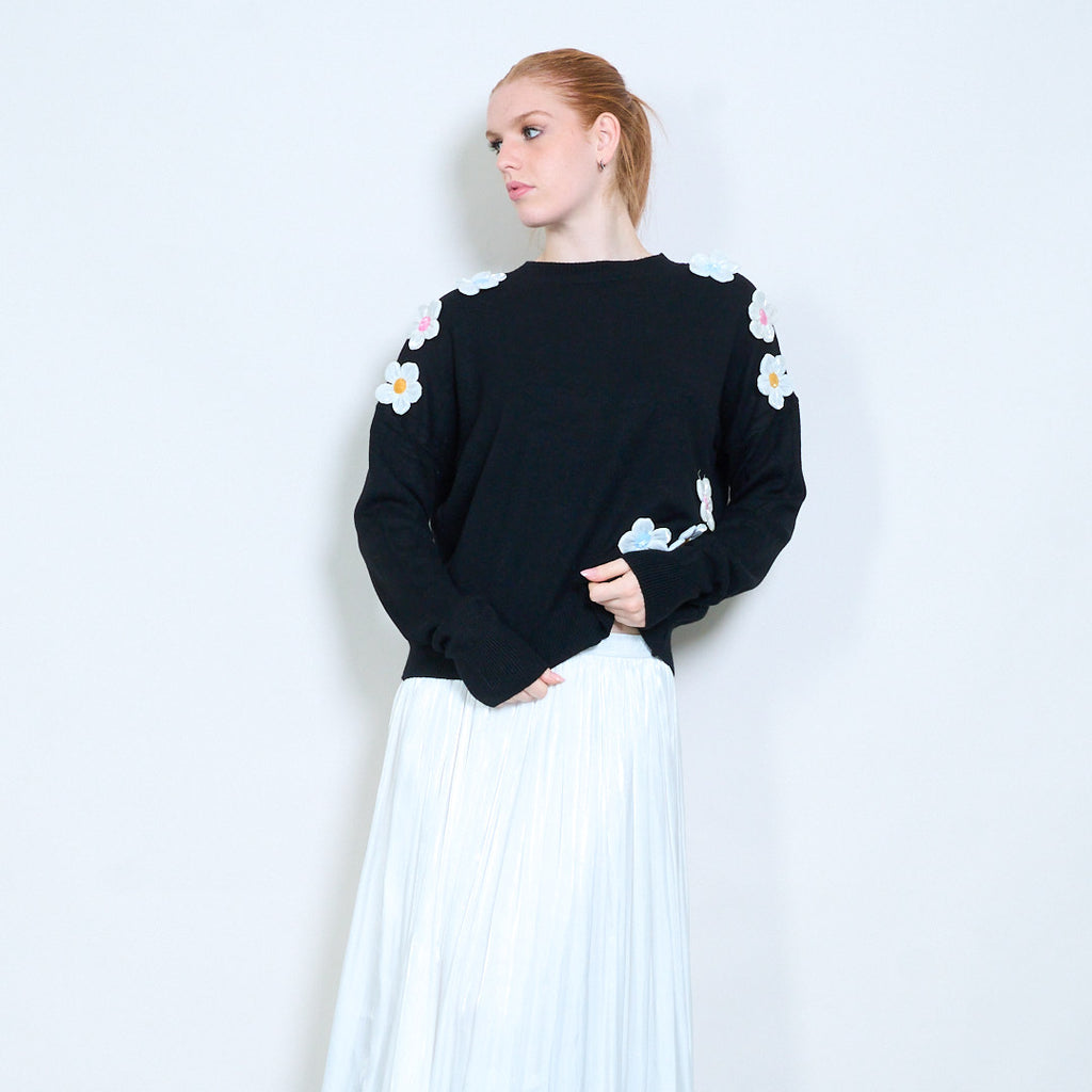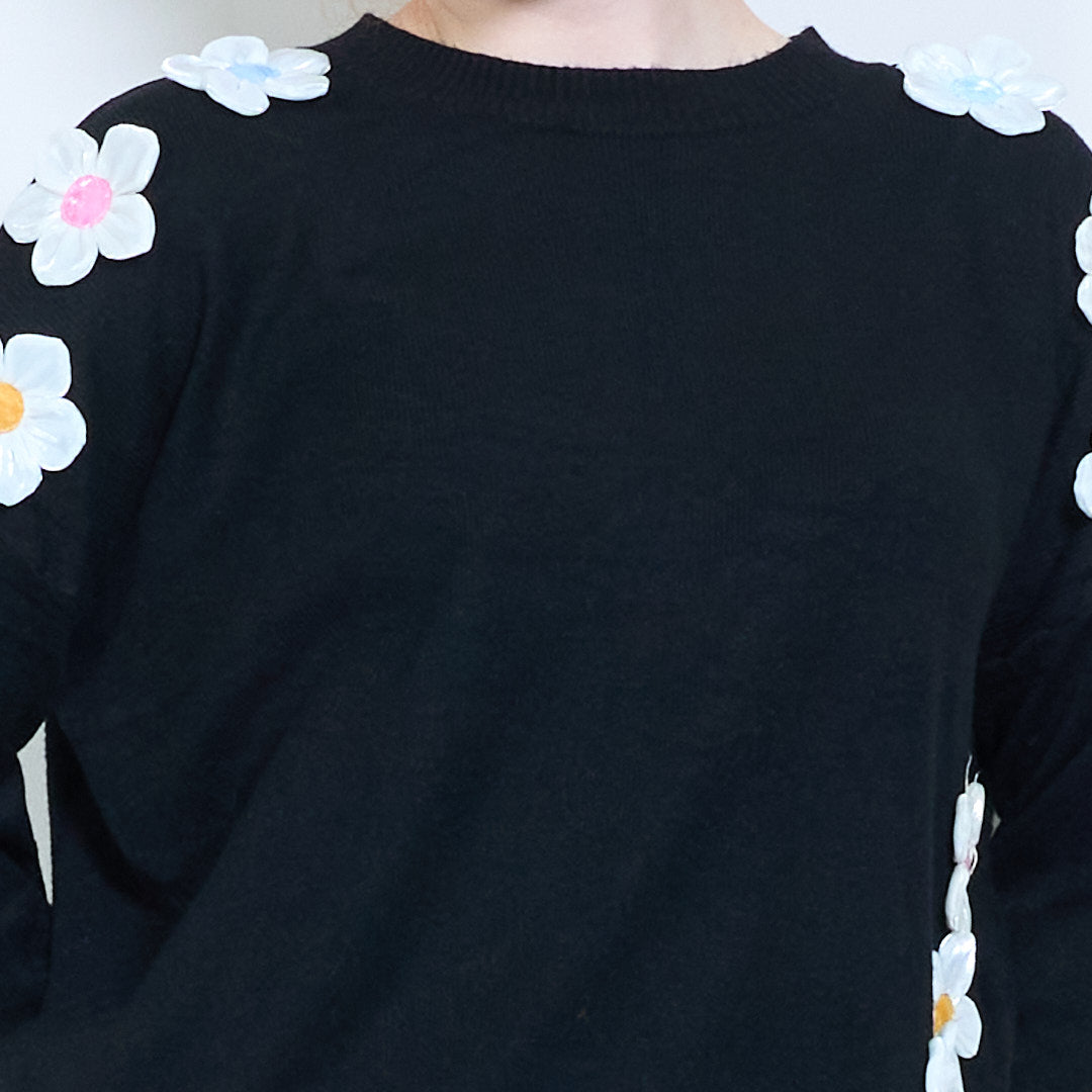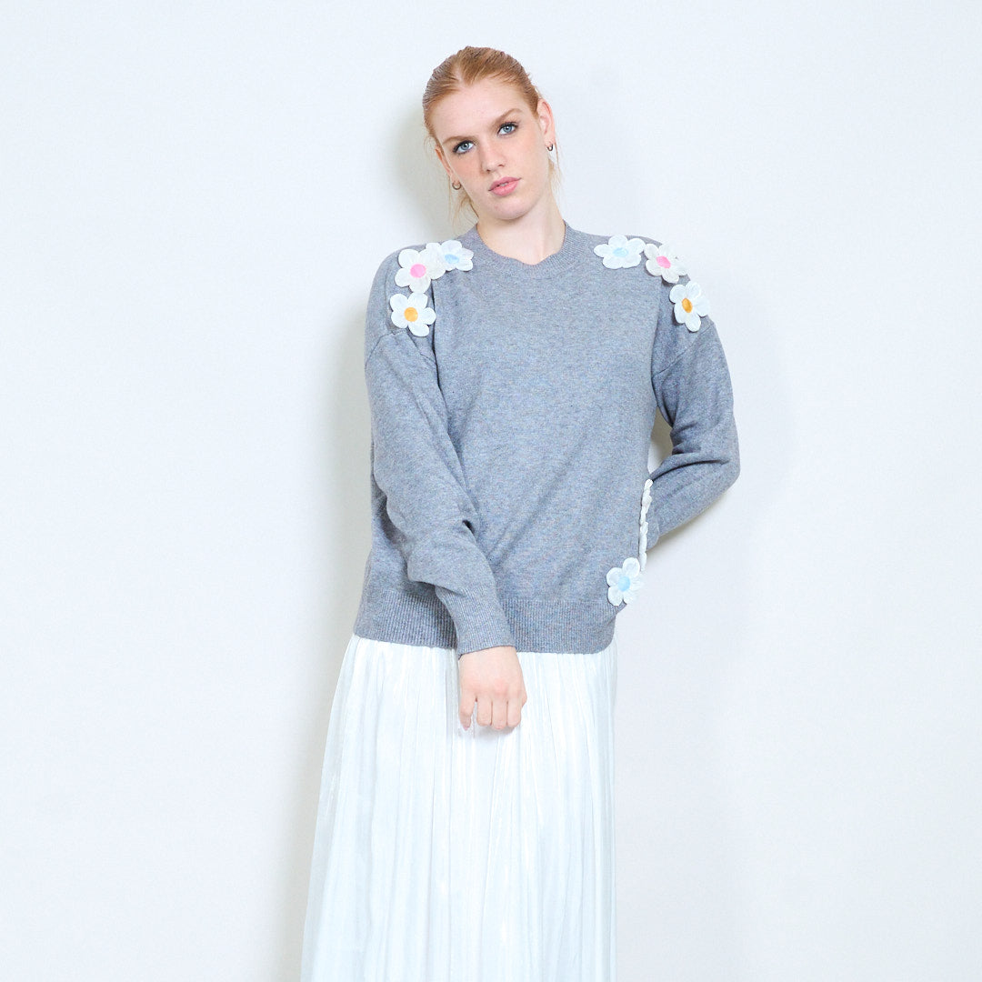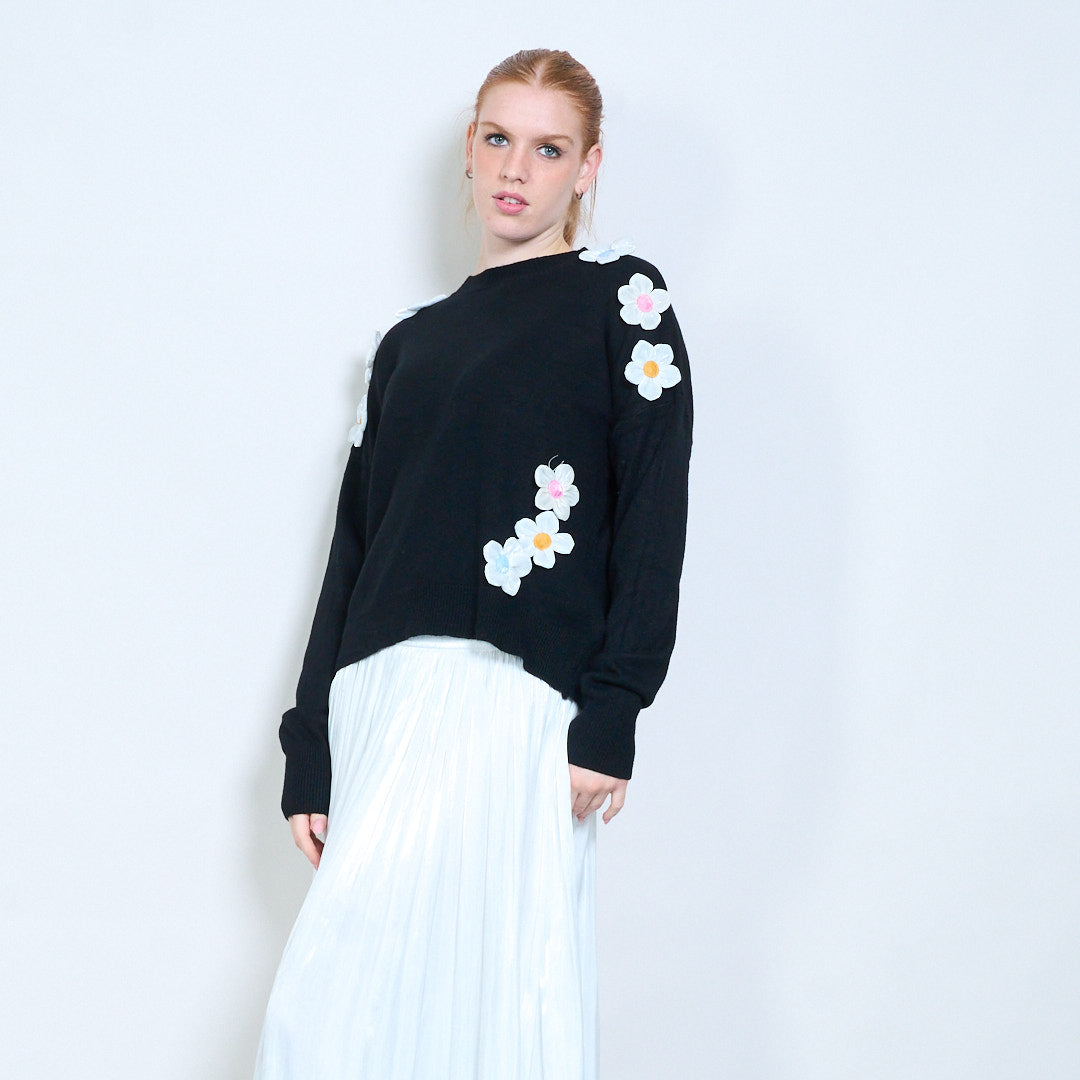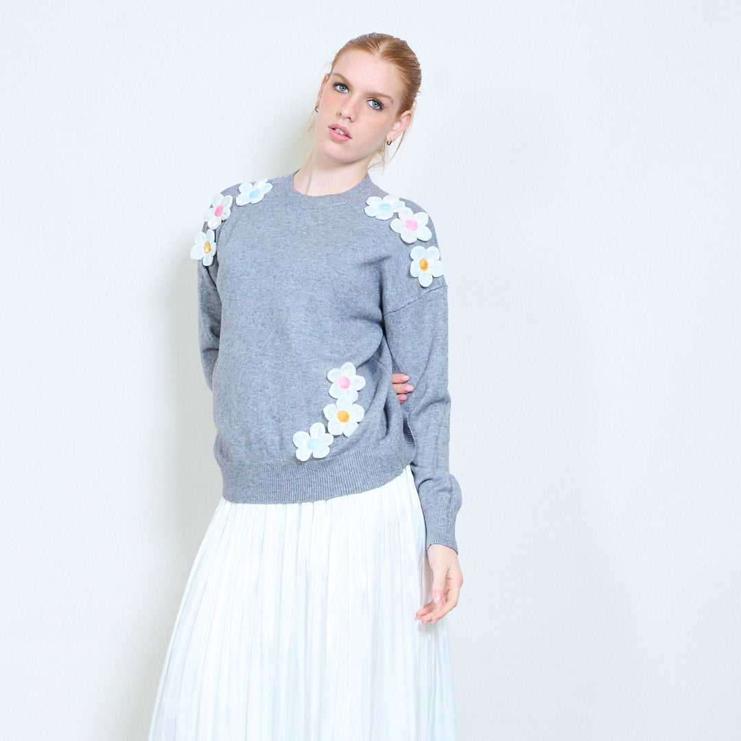 Floral απλικέ πολύχρωμο πουλόβερ μαργαρίτα με στρογγυλή λαιμόκοψη χονδρική