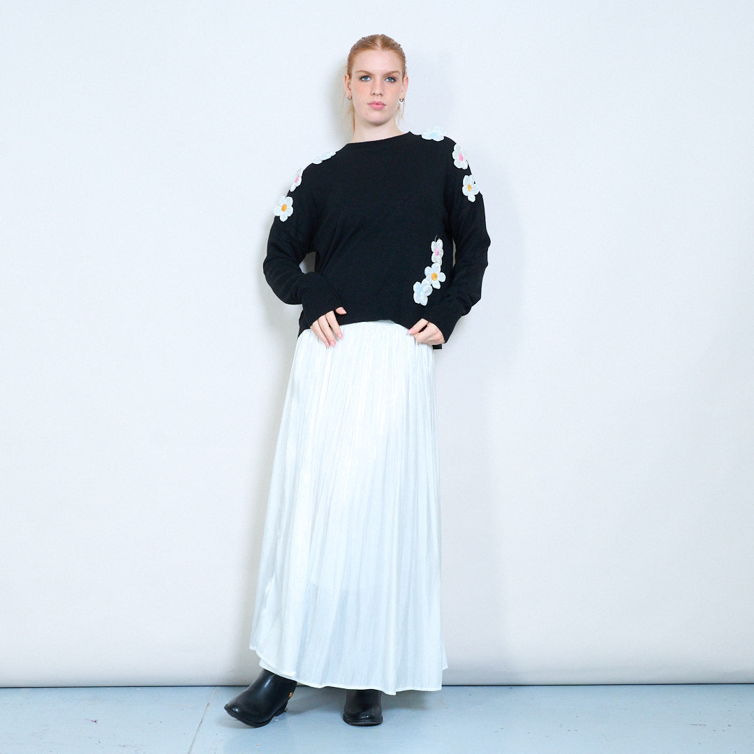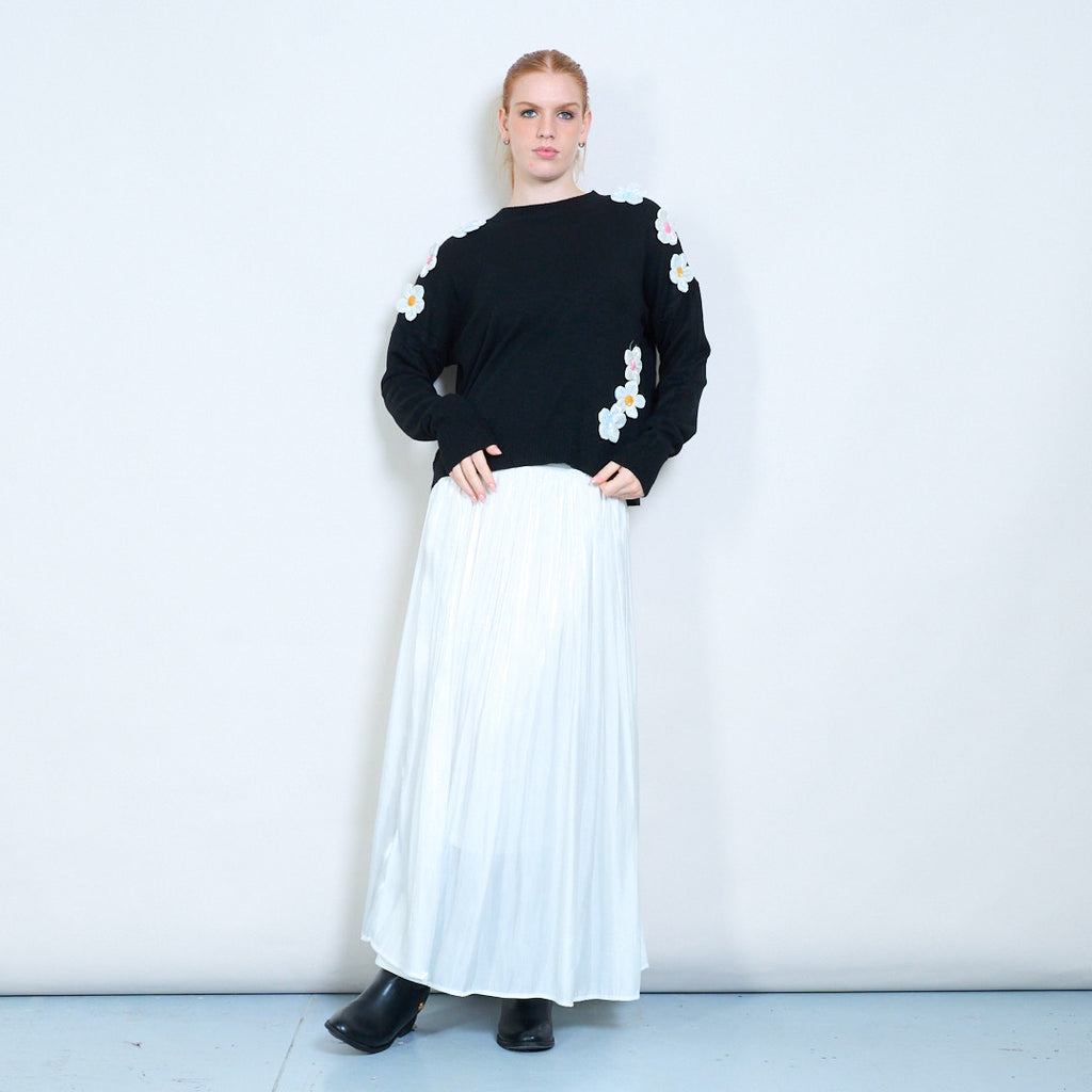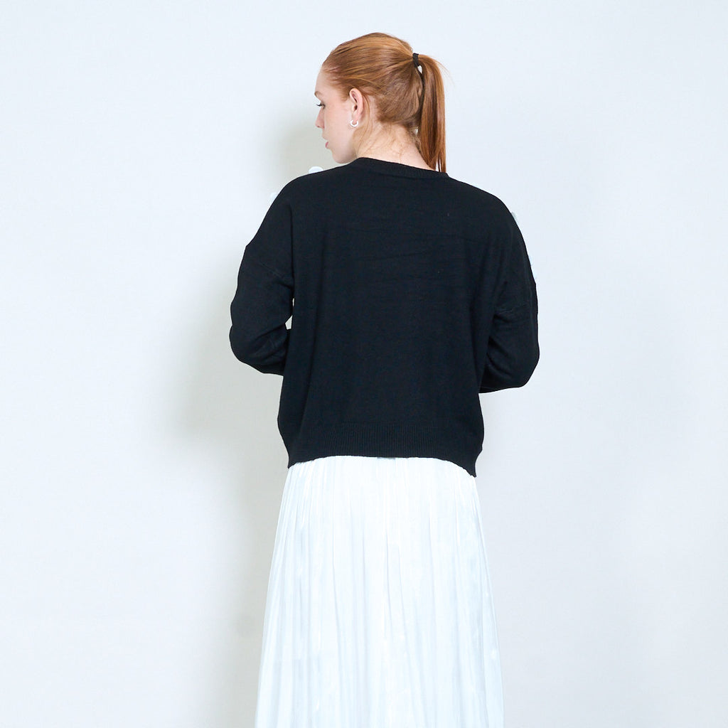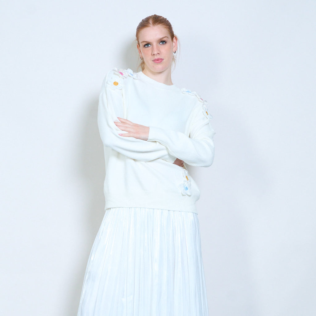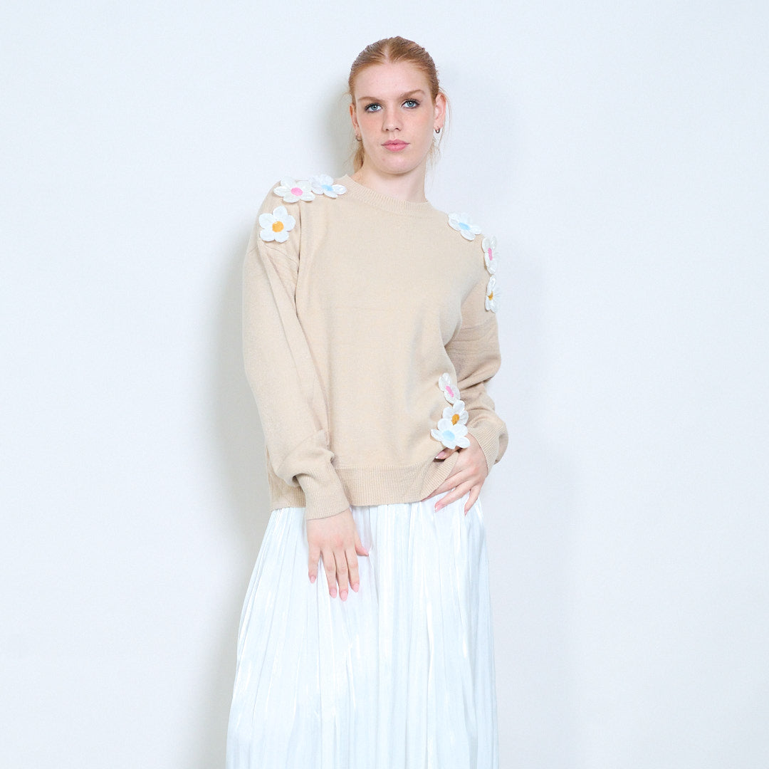Floral απλικέ πολύχρωμο πουλόβερ μαργαρίτα με στρογγυλή λαιμόκοψη χονδρική