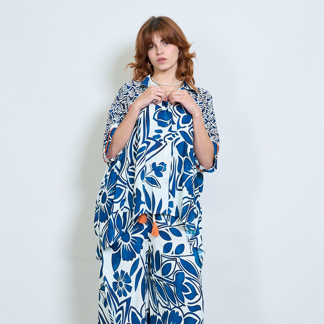Κουμπιά-κάτω υπερμεγέθη πουκάμισο με Floral και Chevron Border Print Χονδρική