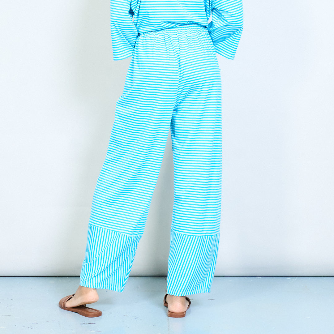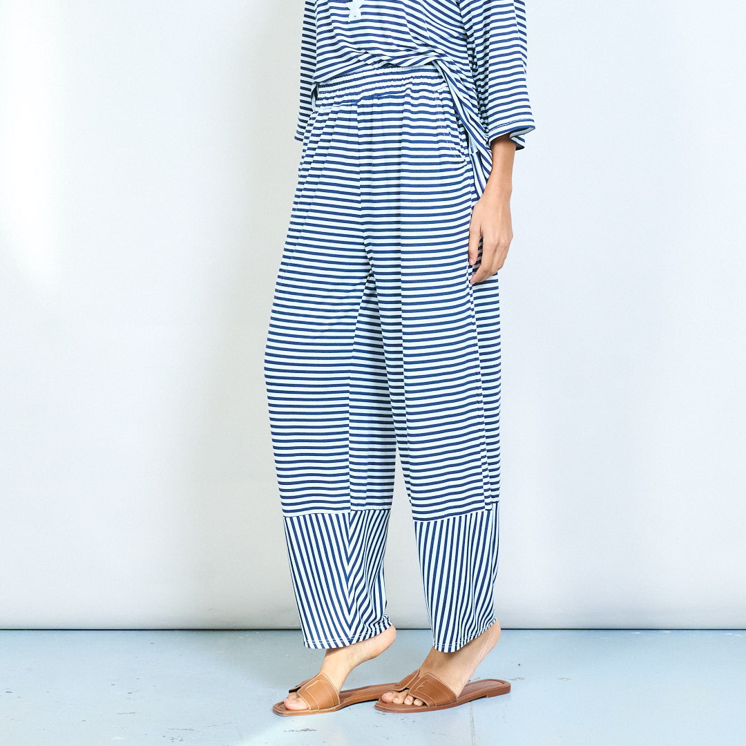 Πλεκτό παντελόνι με ριγέ ελαστική μέση με φαρδύ πόδι με πάνελ αντίθεσης χονδρικής