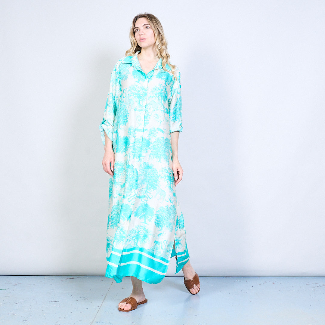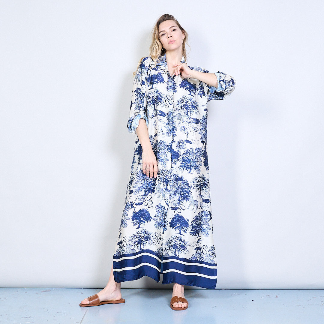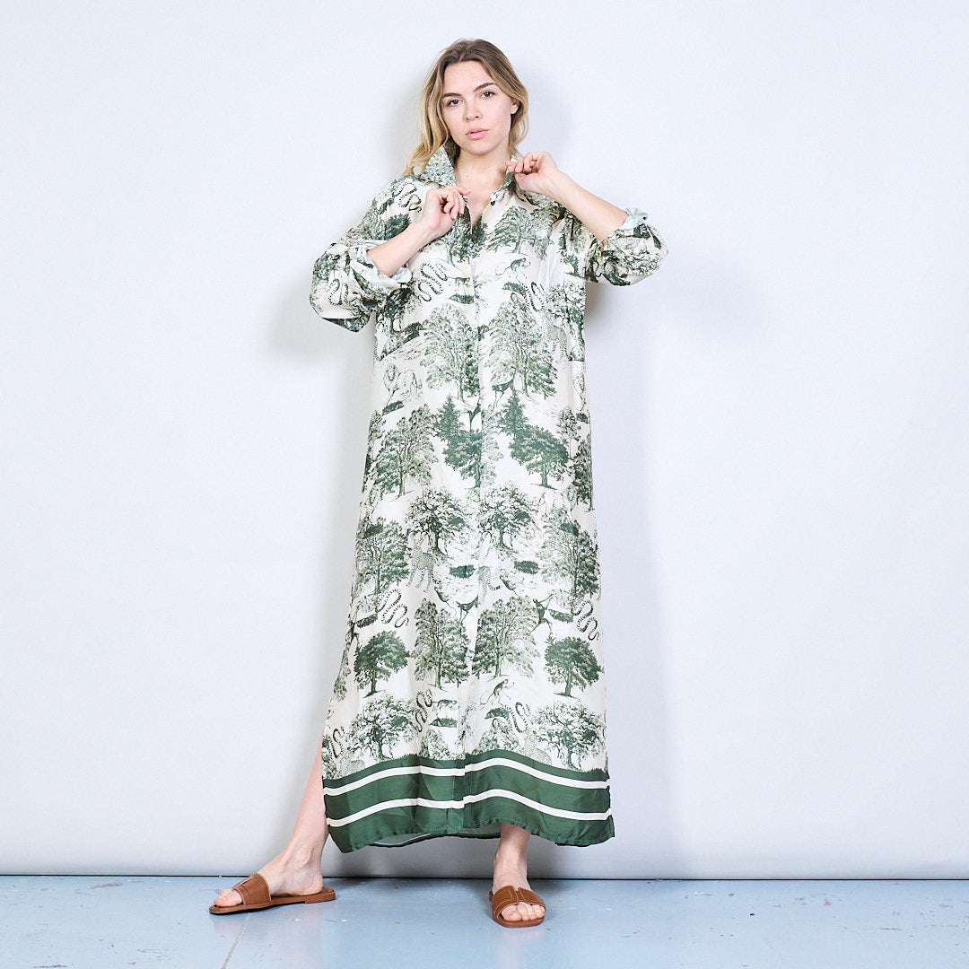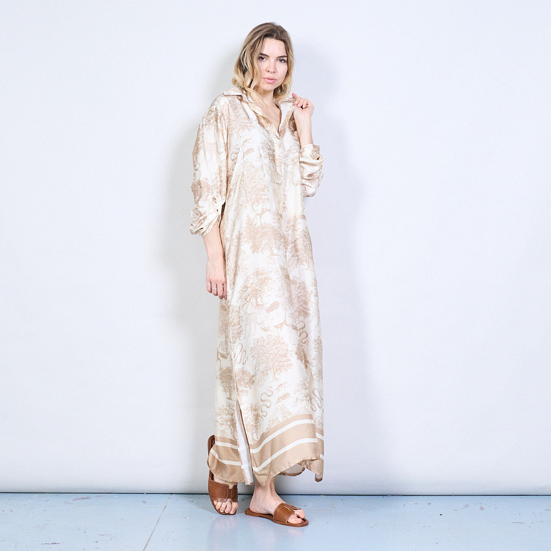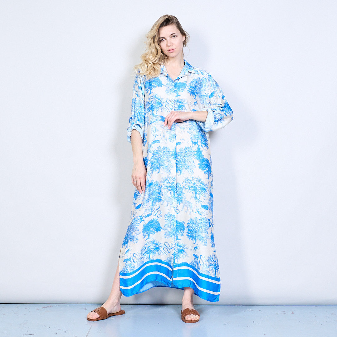 - Κομψό κουμπί-κάτω μακρύ πουκάμισο με εκτύπωση άγριας πανίδας