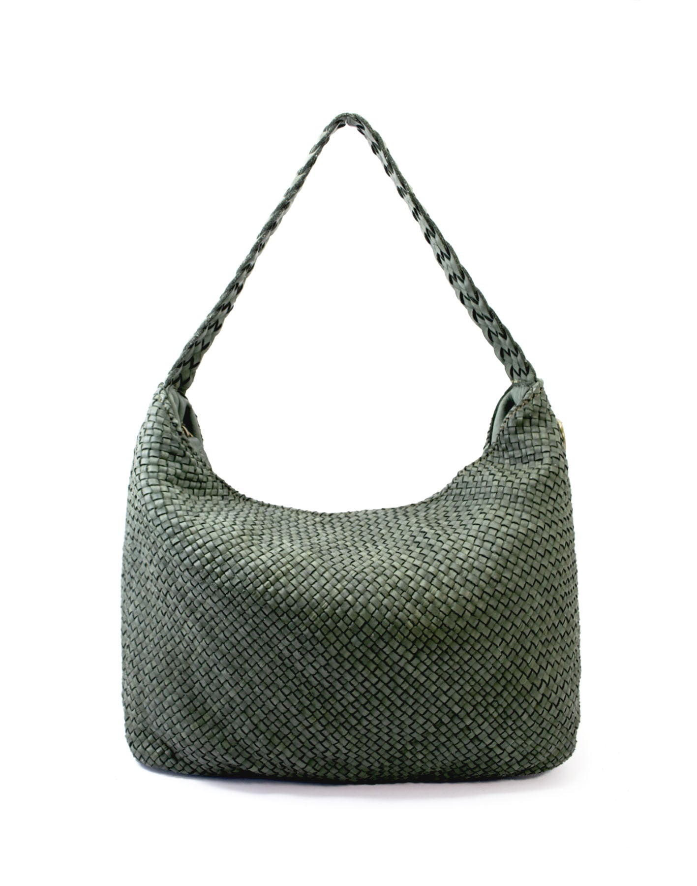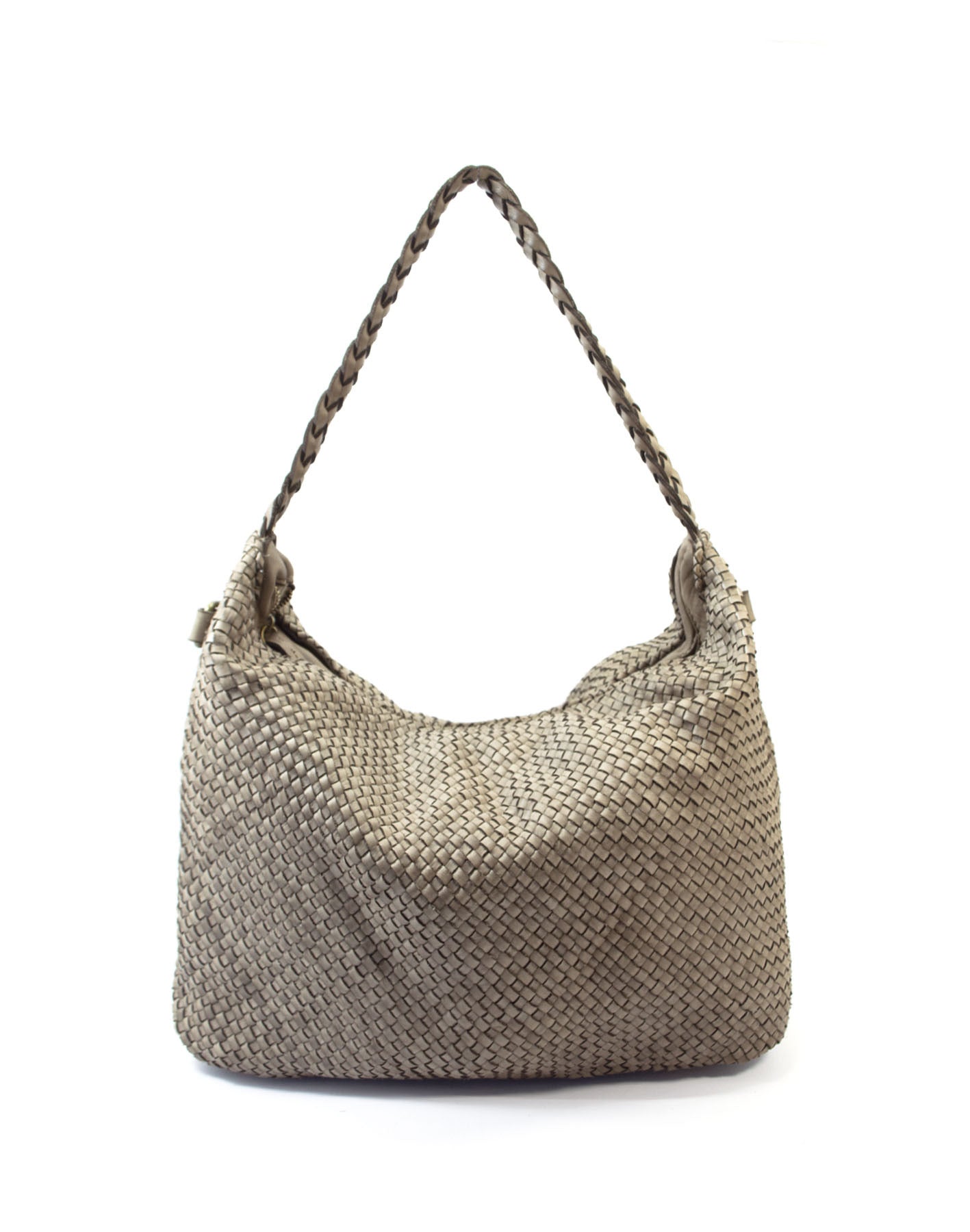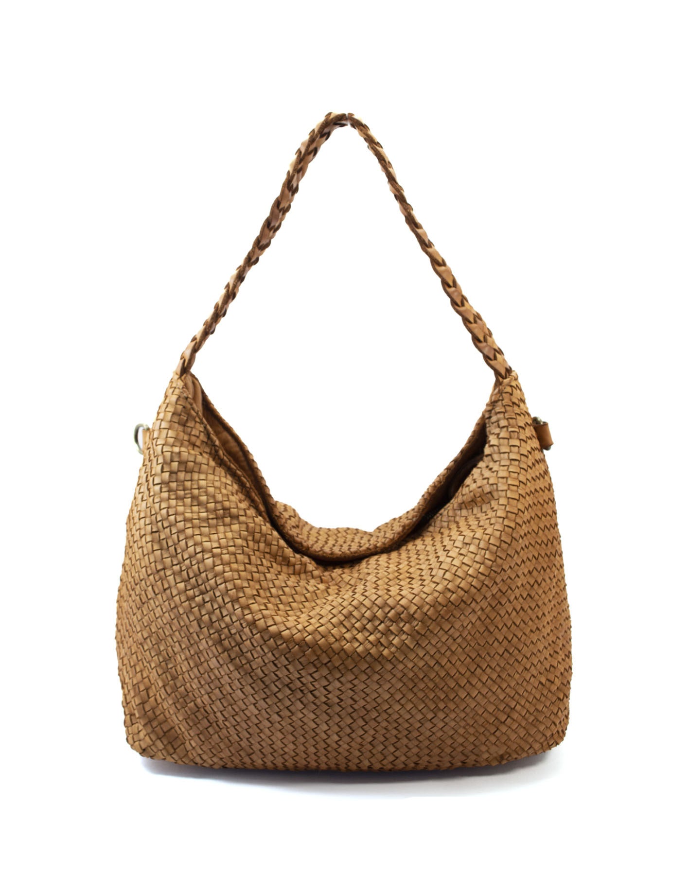 Πλεκτή δερμάτινη τσάντα ώμου