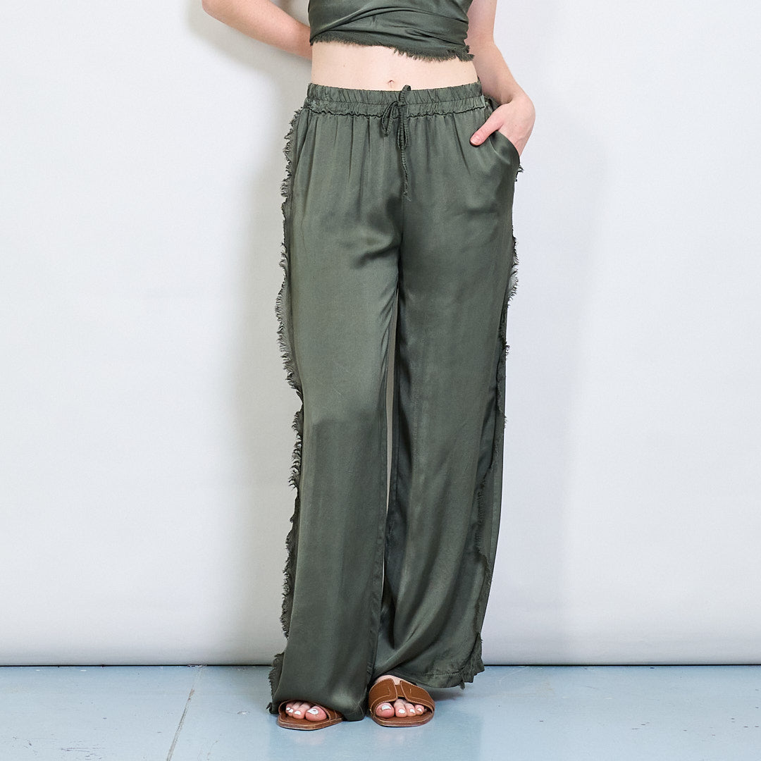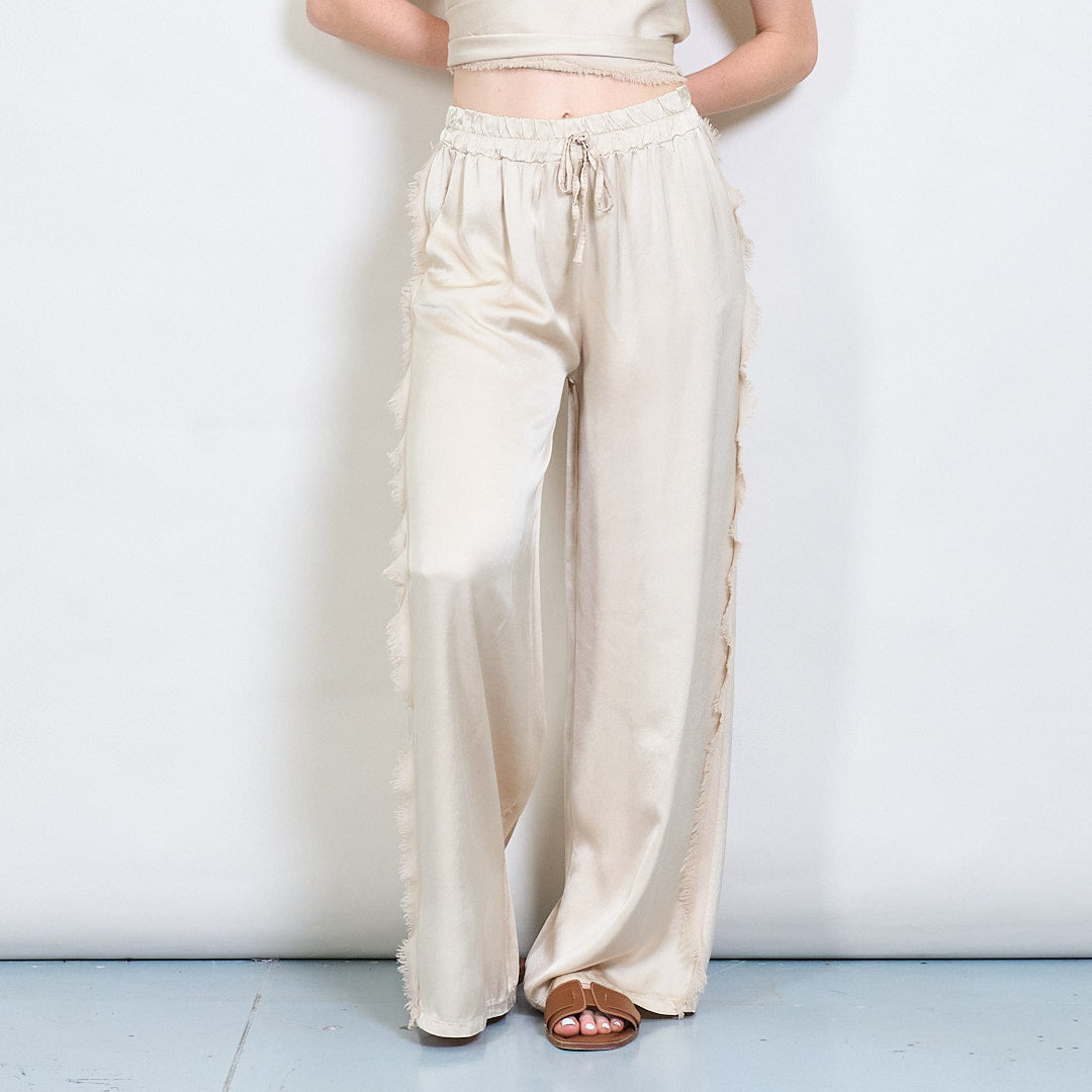 Χαλαρά παντελόνια ευρείας πόδι σατέν με χονδρική