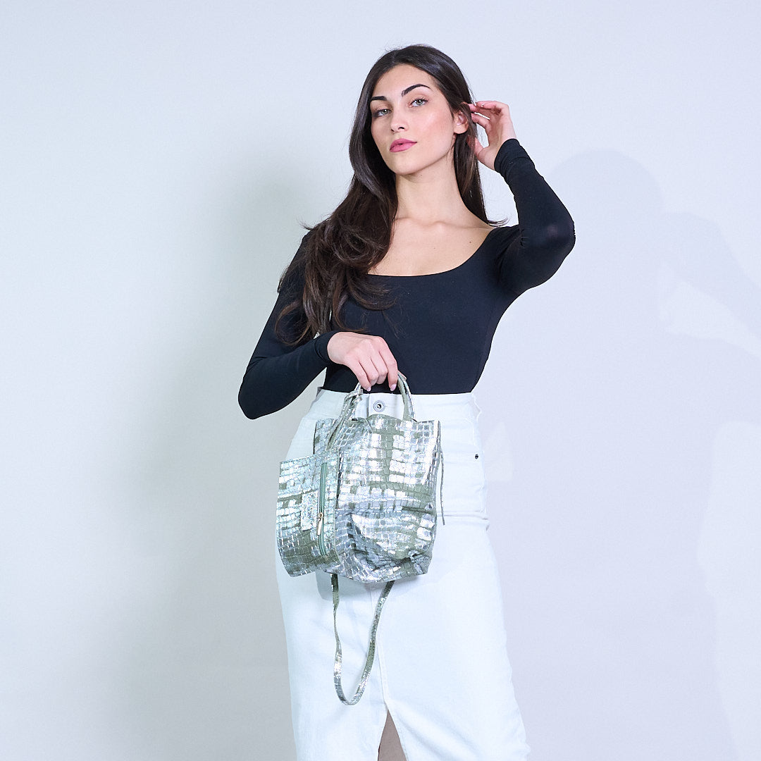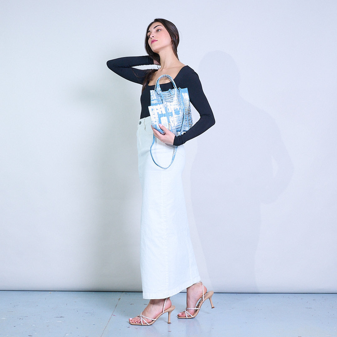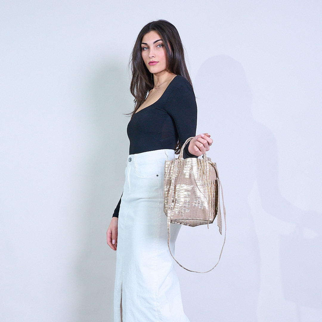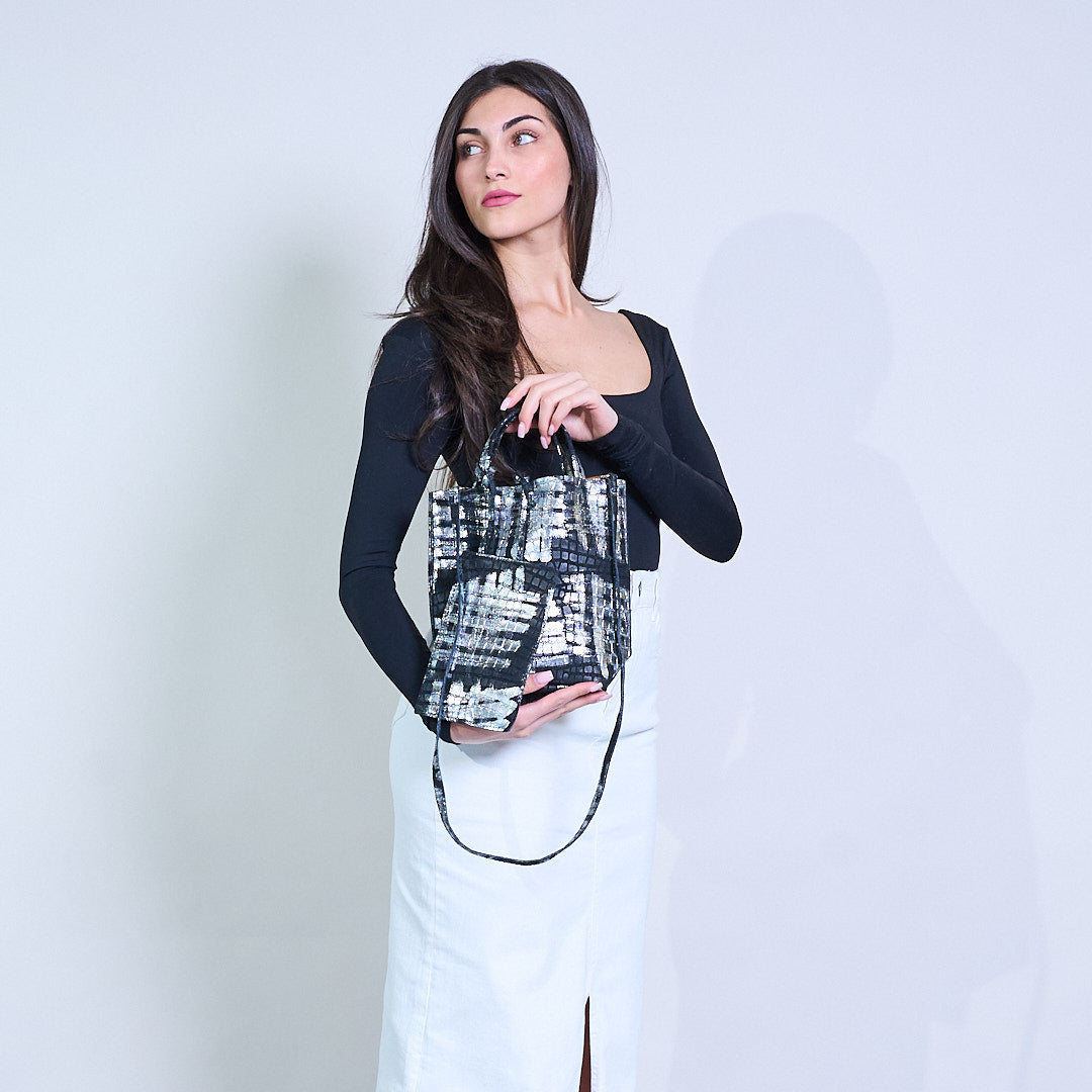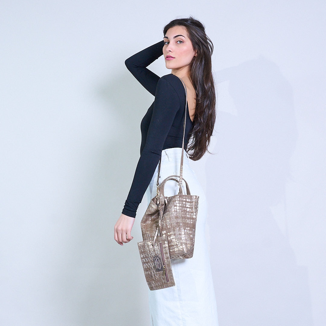 Μεταλλική αφηρημένη εκτύπωση Croc-Textured Tructured Tote Bag χονδρική