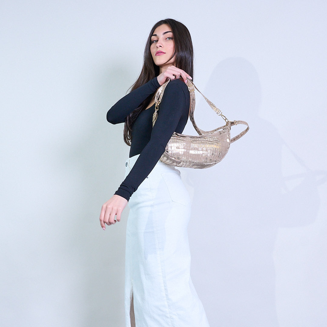 Μεταλλικό Croc-Embossed Crescent Sling Sling Mini Bag χονδρική