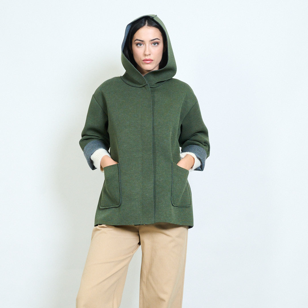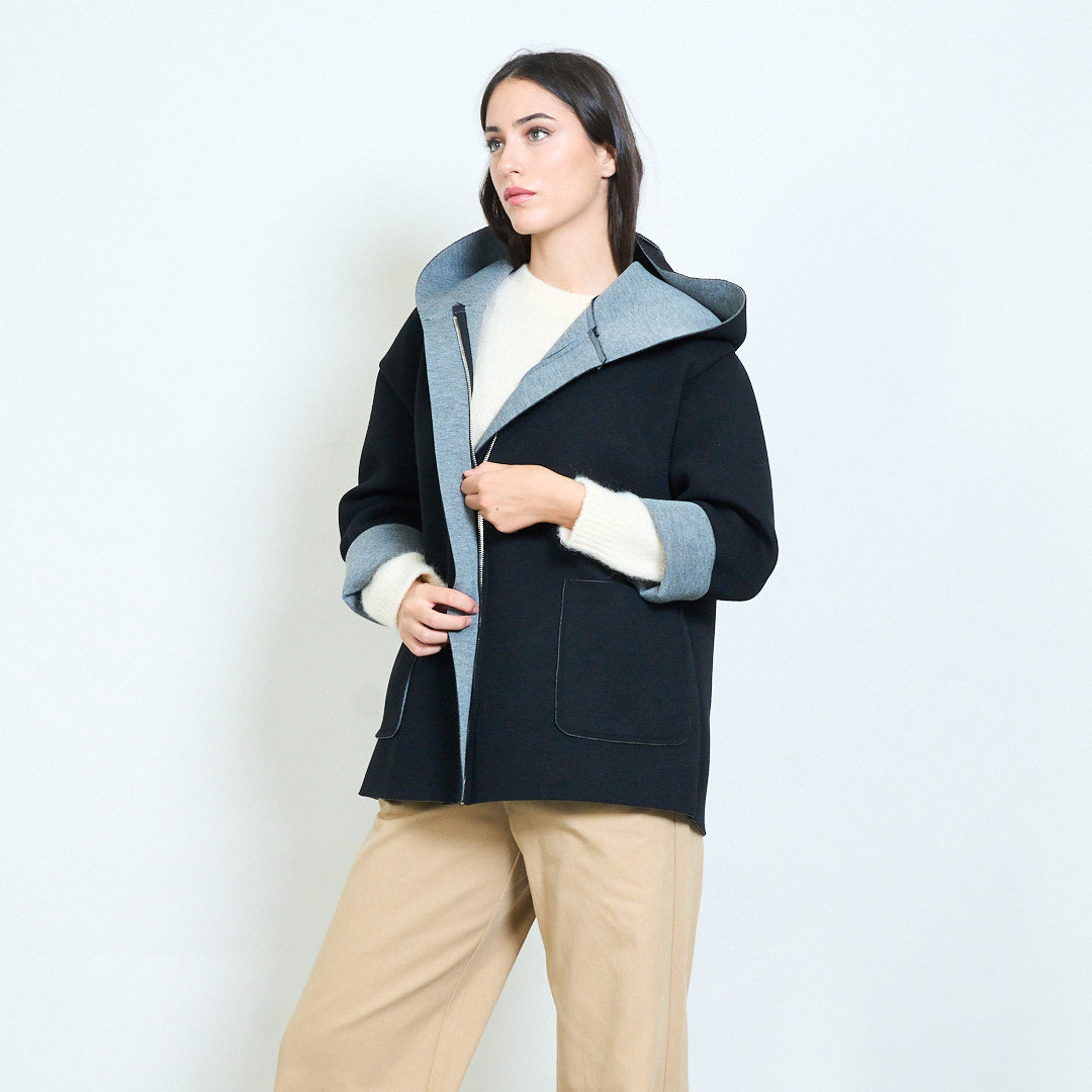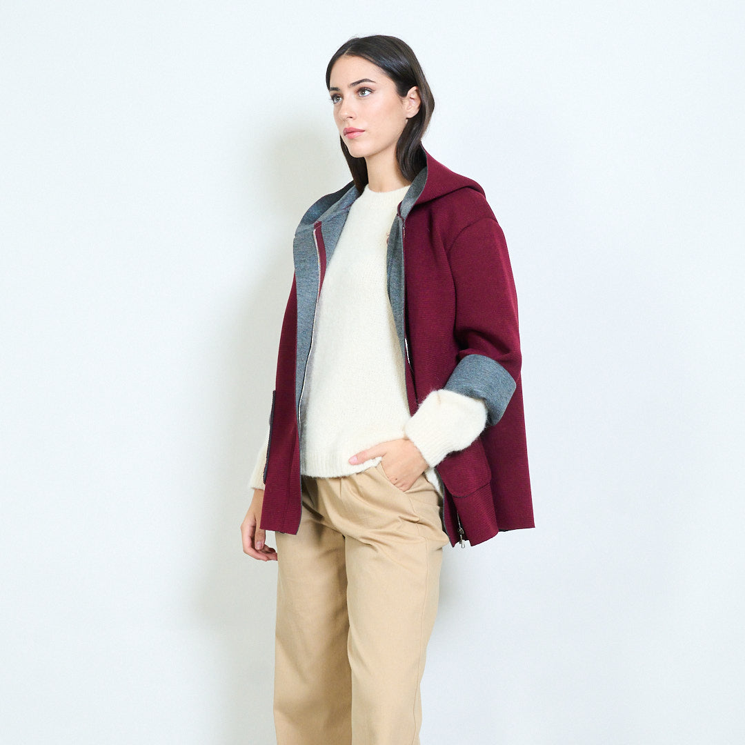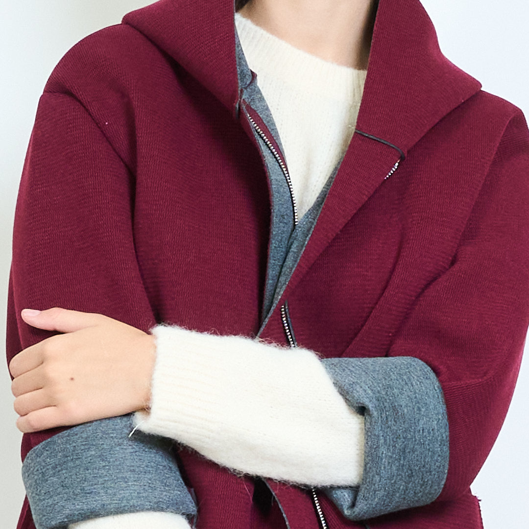 Χονδρικό casual μπουφάν διπλού τόνου με κουκούλα με φερμουάρ