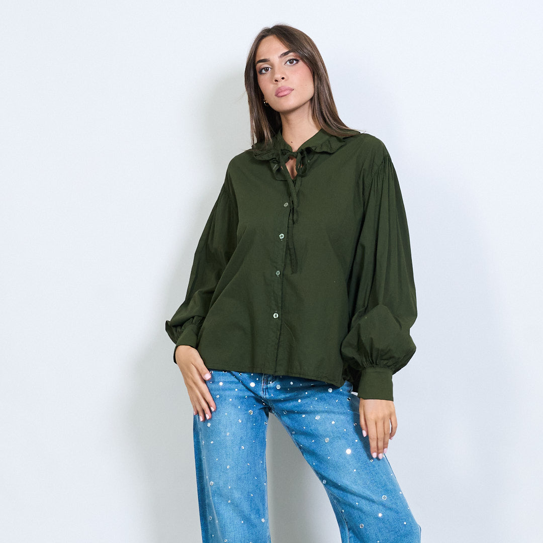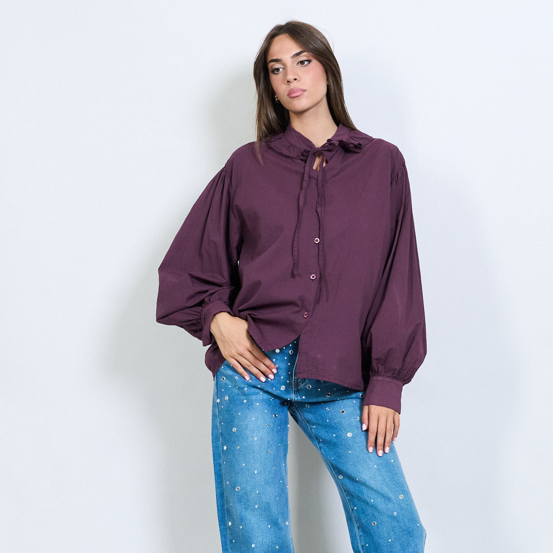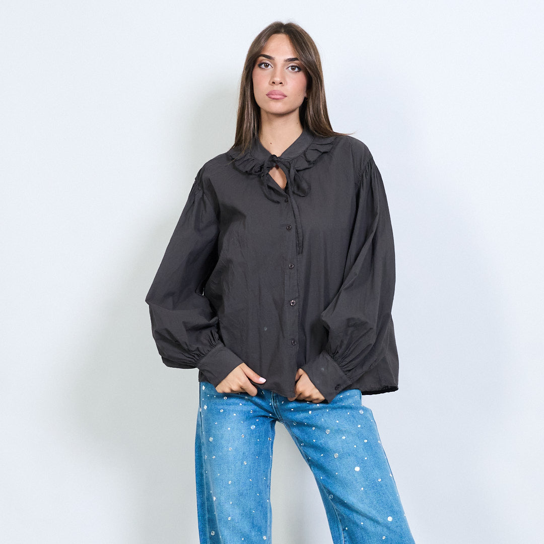 - Μακρά μανίκια με συγκεντρωμένες μανσέτες για όγκο