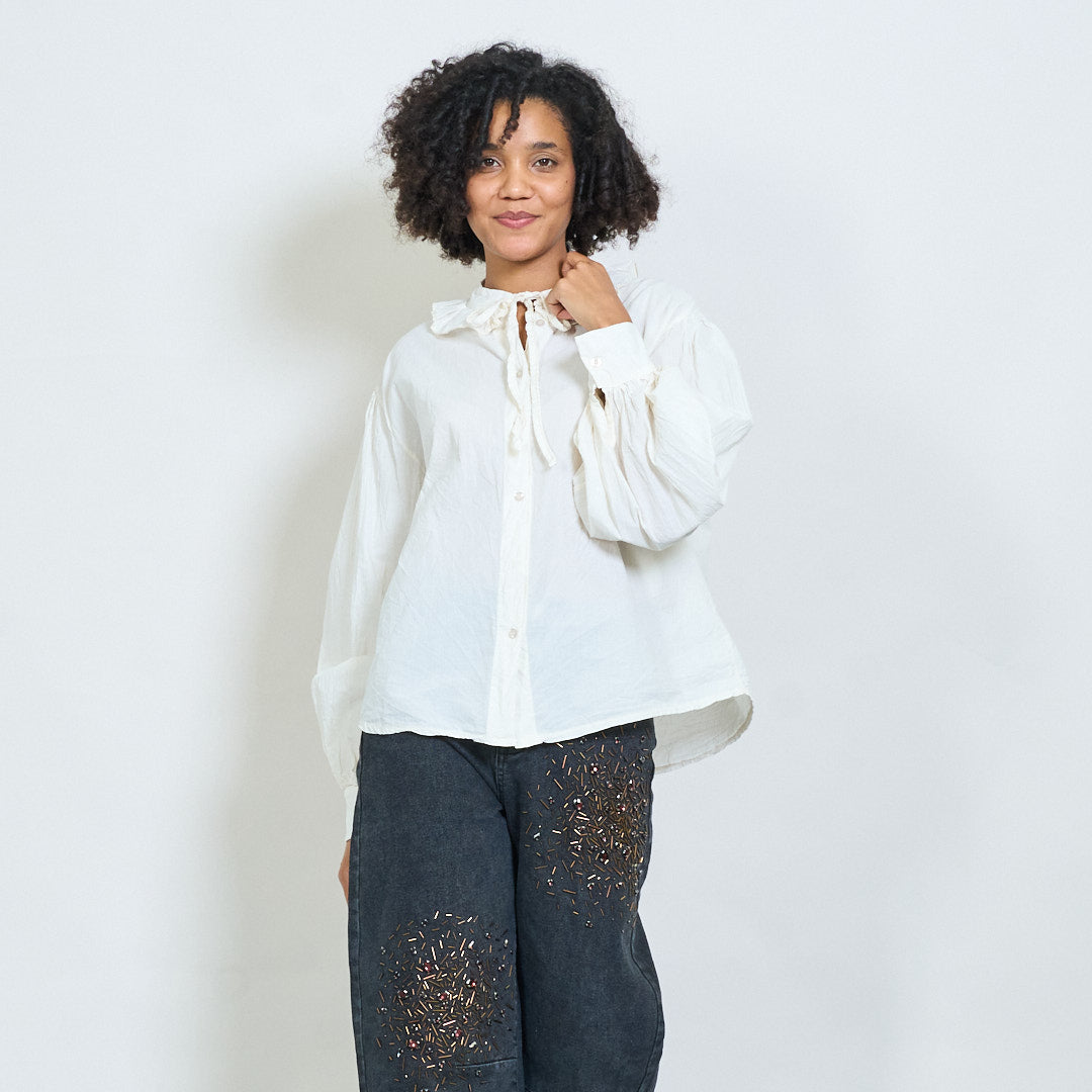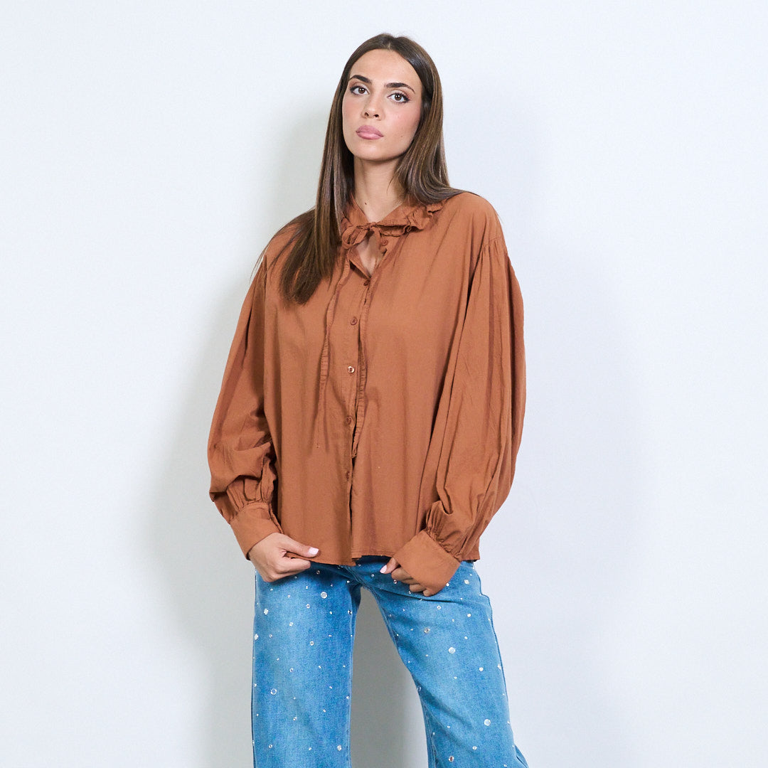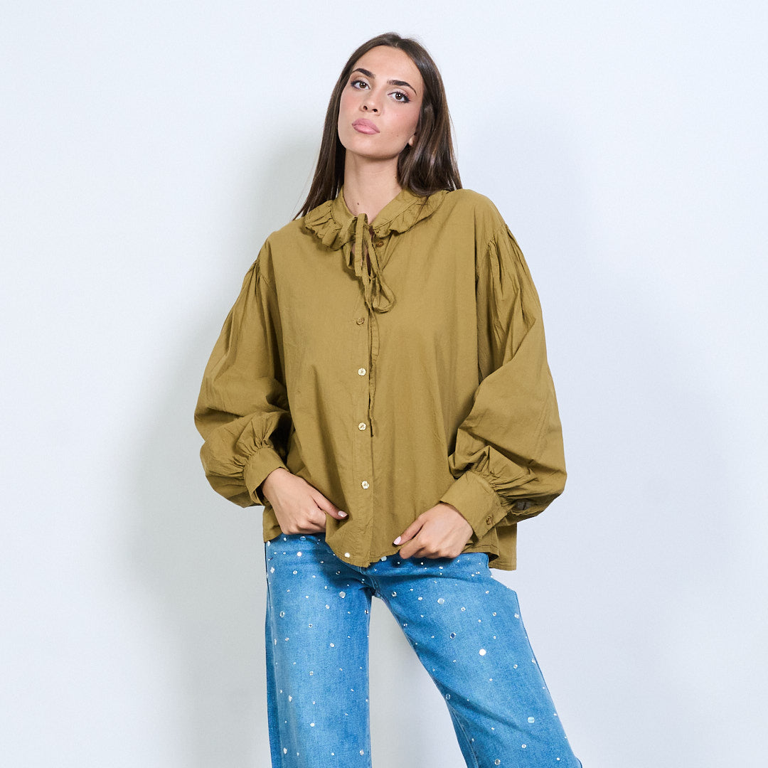 - Μακρά μανίκια με συγκεντρωμένες μανσέτες για όγκο