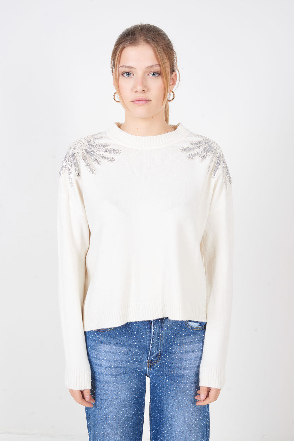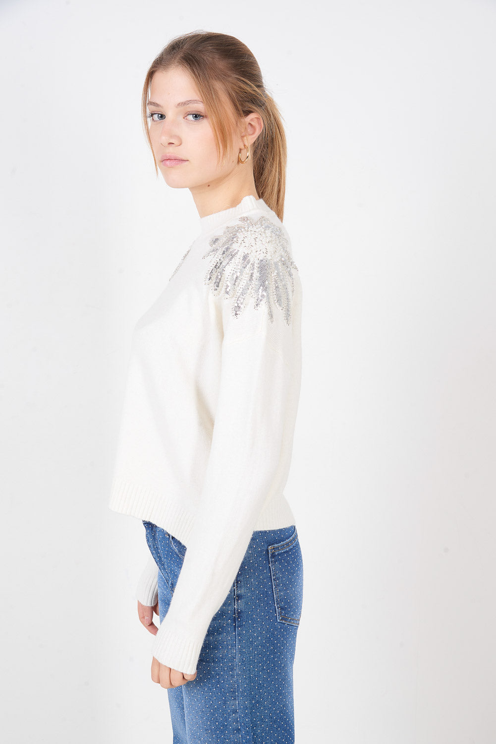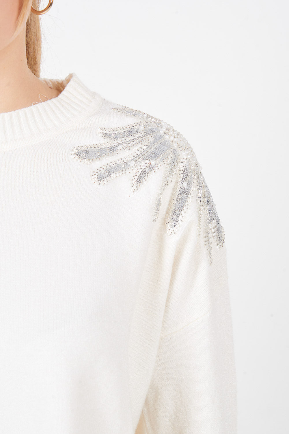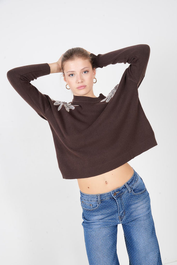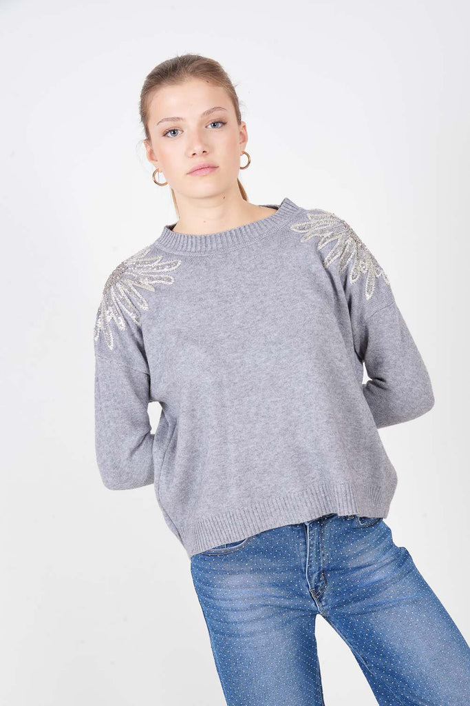 Πουλόβερ με κλασικό πλεκτό ώμο με παγιέτες χονδρική