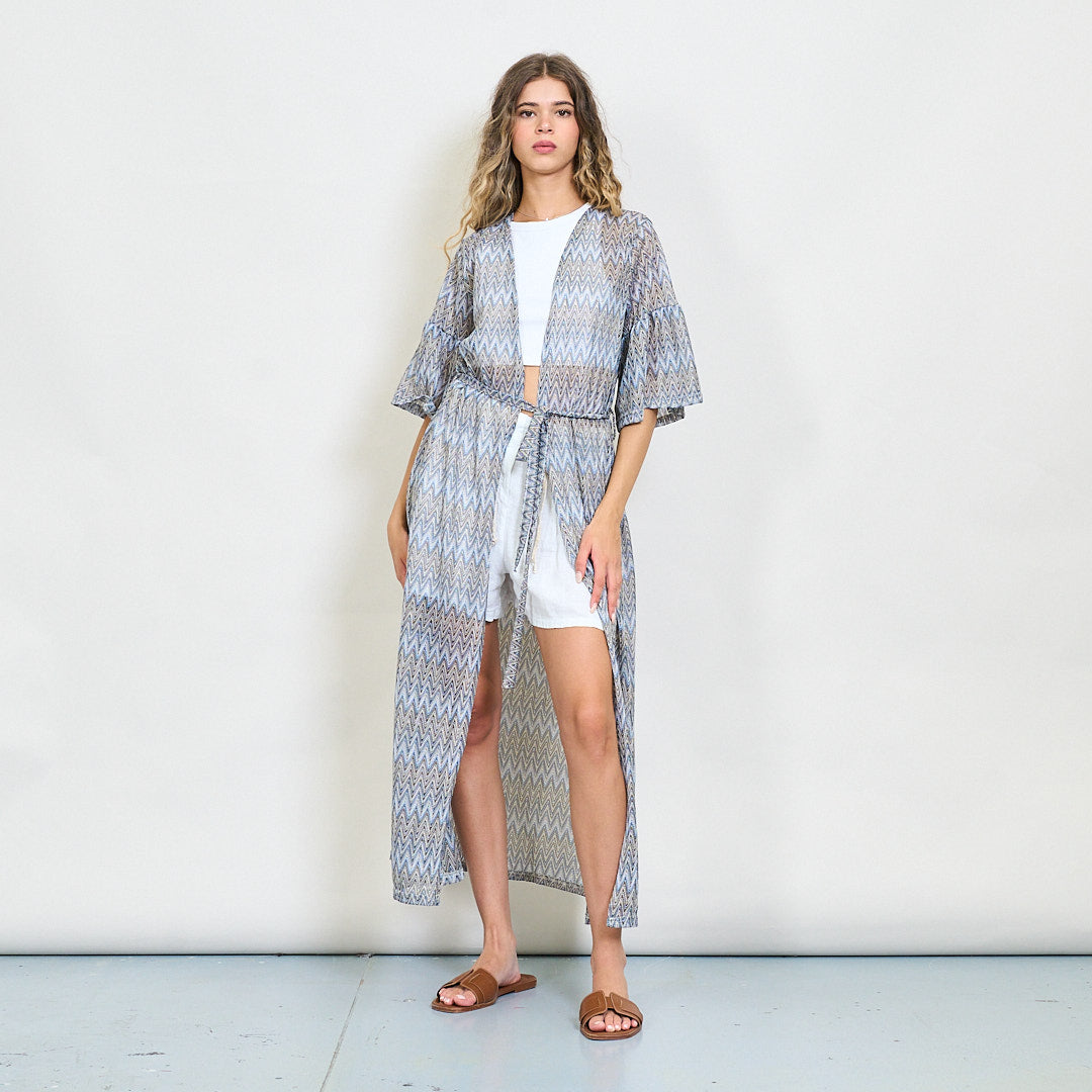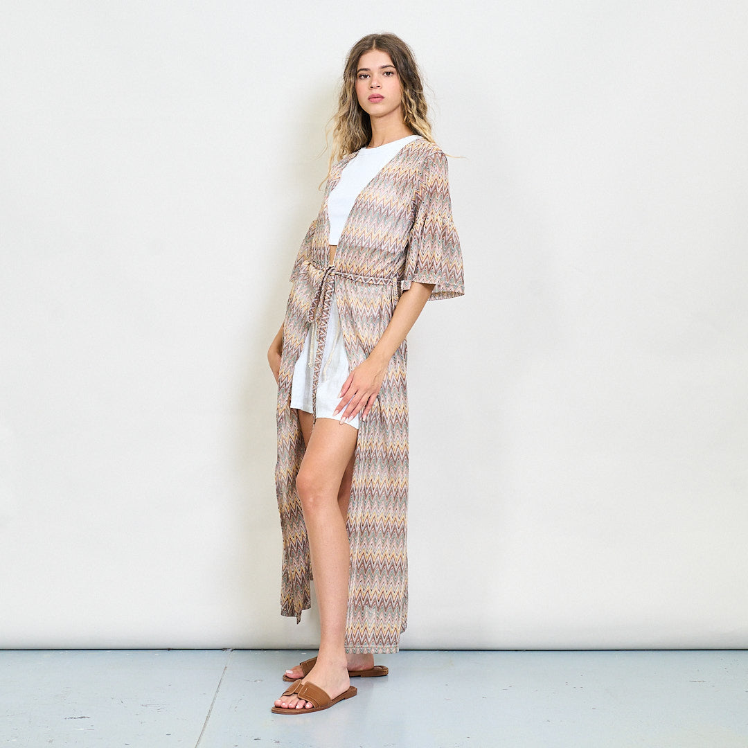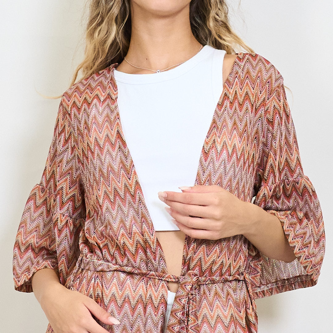 Ζιγκάγκ τυπωμένη ζακέτα περιτύλιξης με μανίκια χονδρικής πώλησης