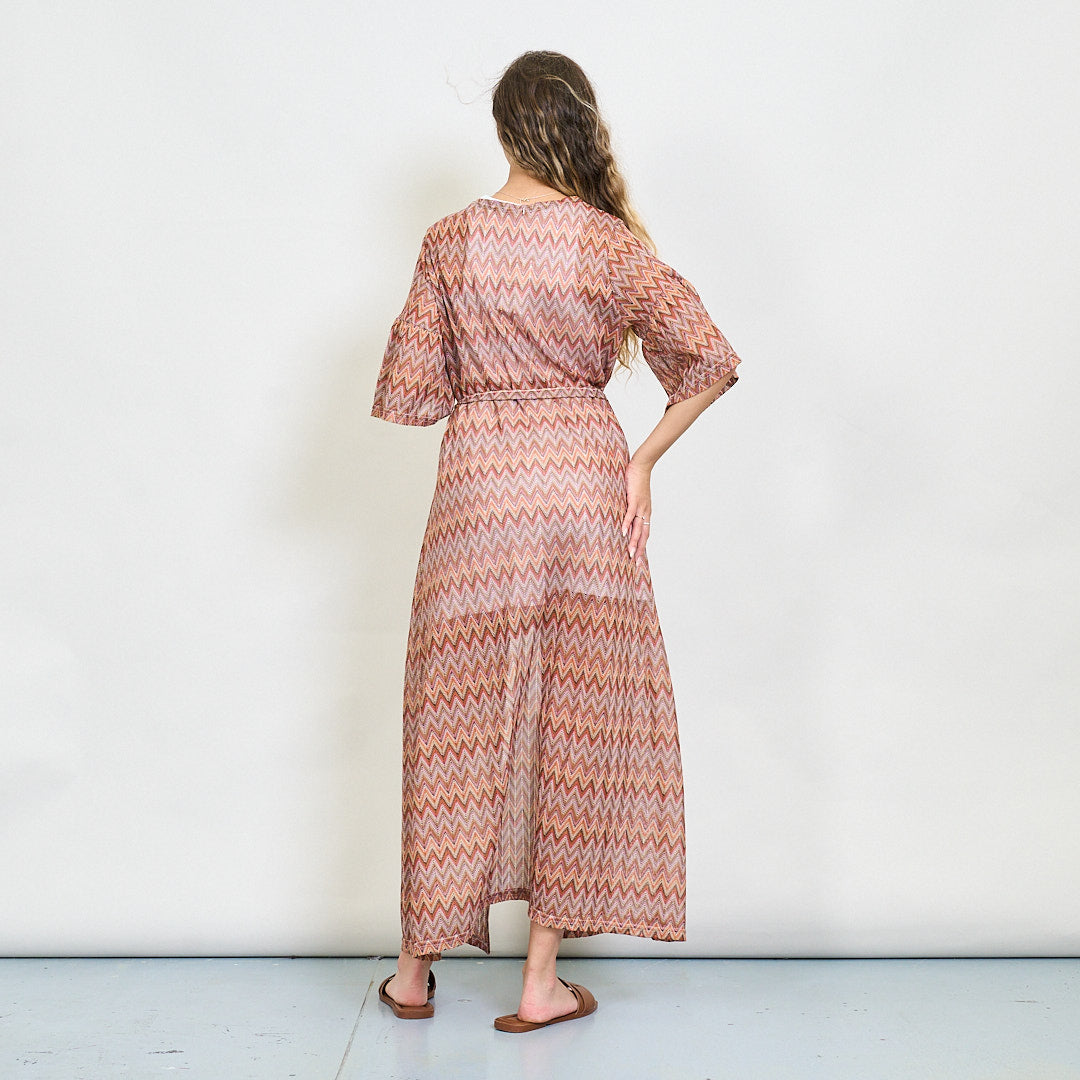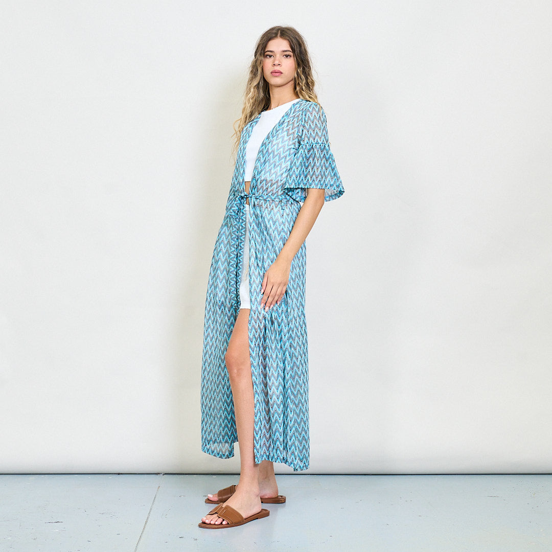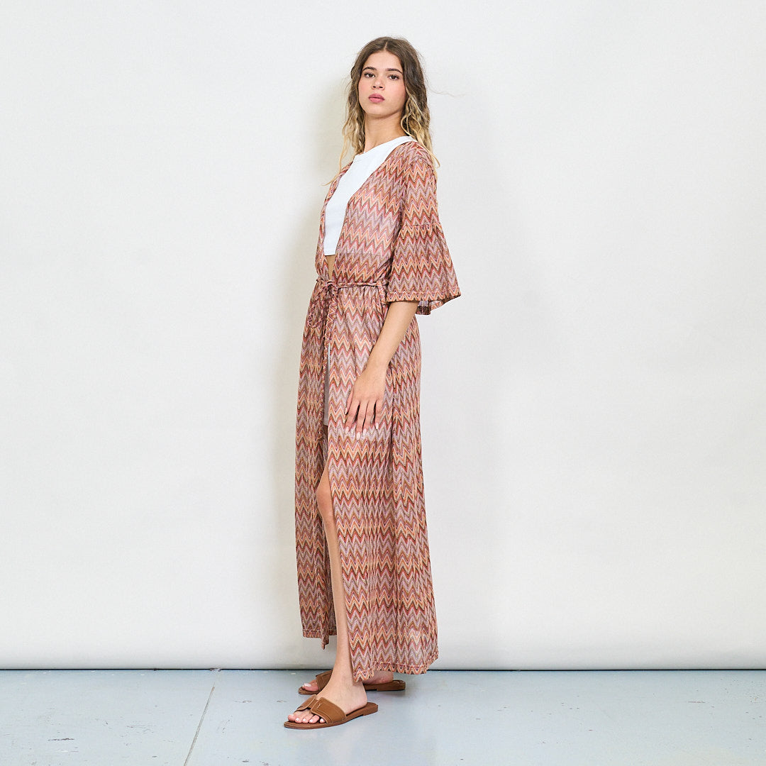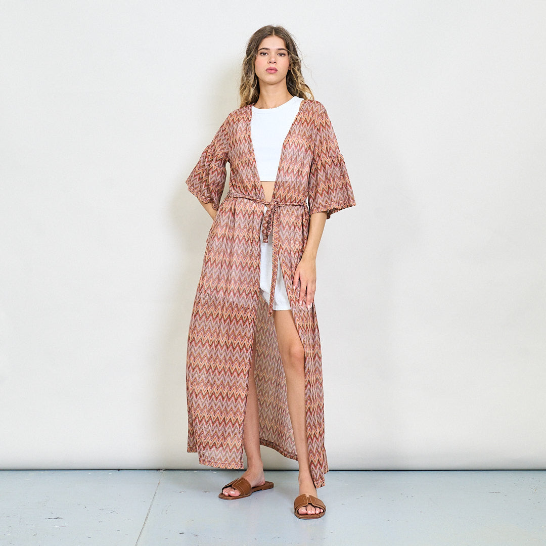 Ζιγκάγκ τυπωμένη ζακέτα περιτύλιξης με μανίκια χονδρικής πώλησης